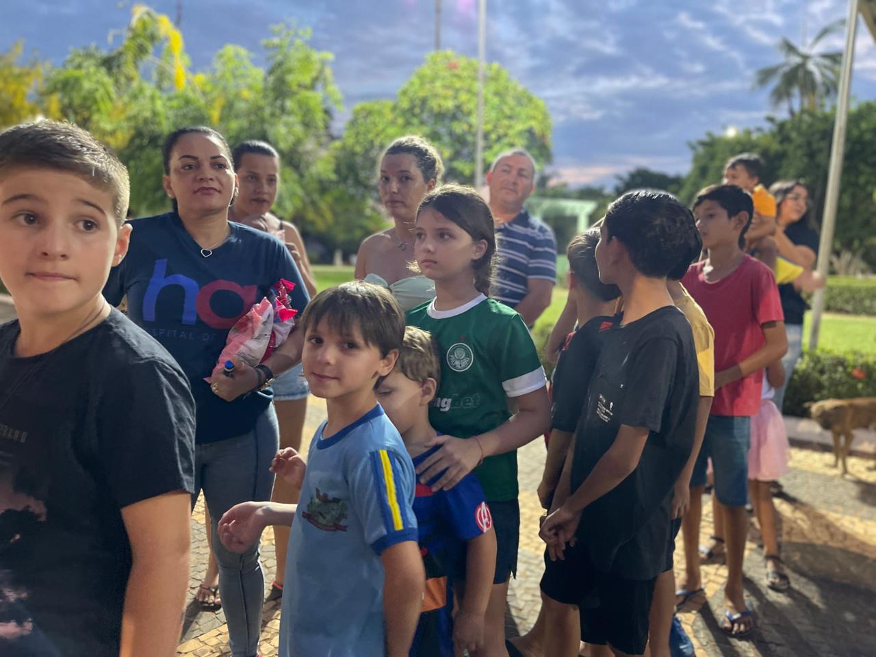 Crianças e Adultos participaram da ação promovida pela Secretaria de Indústria, Comércio e Turismo, celebrando o Mês das Crianças