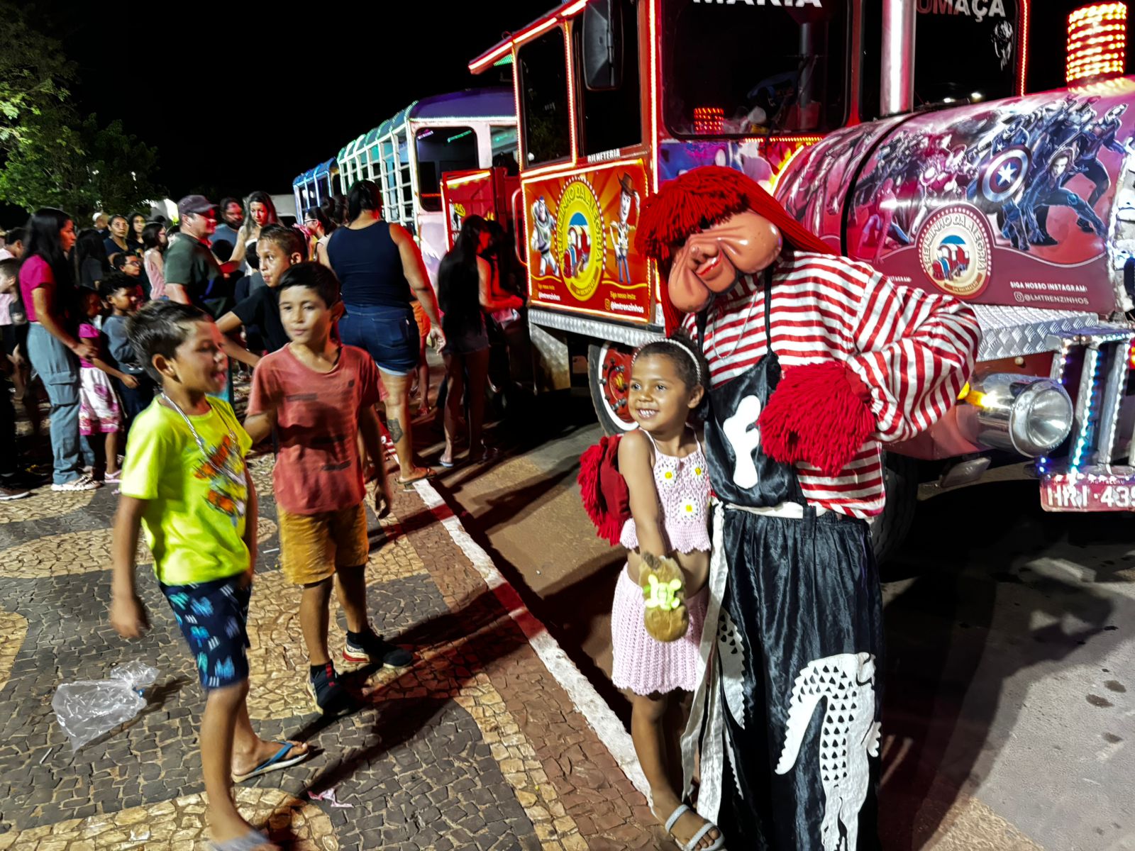 A Prefeitura Municipal de Nova Ubiratã encerrou, nesta segunda-feira (13), com chave de ouro a programação do Trenzinho da Alegria, que percorreu o município levando momentos de diversão e encantamento às crianças. A iniciativa, realizada pela Secretaria de Indústria, Comércio e Turismo, marcou uma semana repleta de sorrisos e integração entre crianças e familiares.