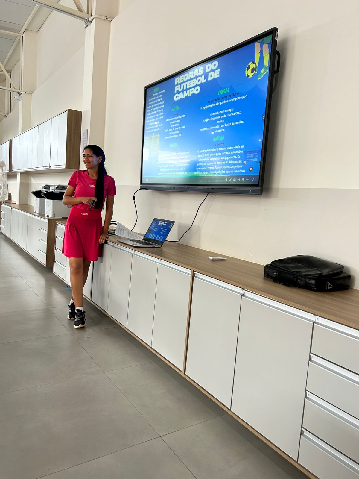 Durante a atividade, os participantes conheceram a origem do futebol, sua evolução ao longo dos anos e a importância dos fundamentos técnicos, como passe, domínio, chute, drible e posicionamento em campo. A ação teve como foco o aprofundamento teórico, sem a realização de atividades práticas, valorizando o estudo e a compreensão do esporte.