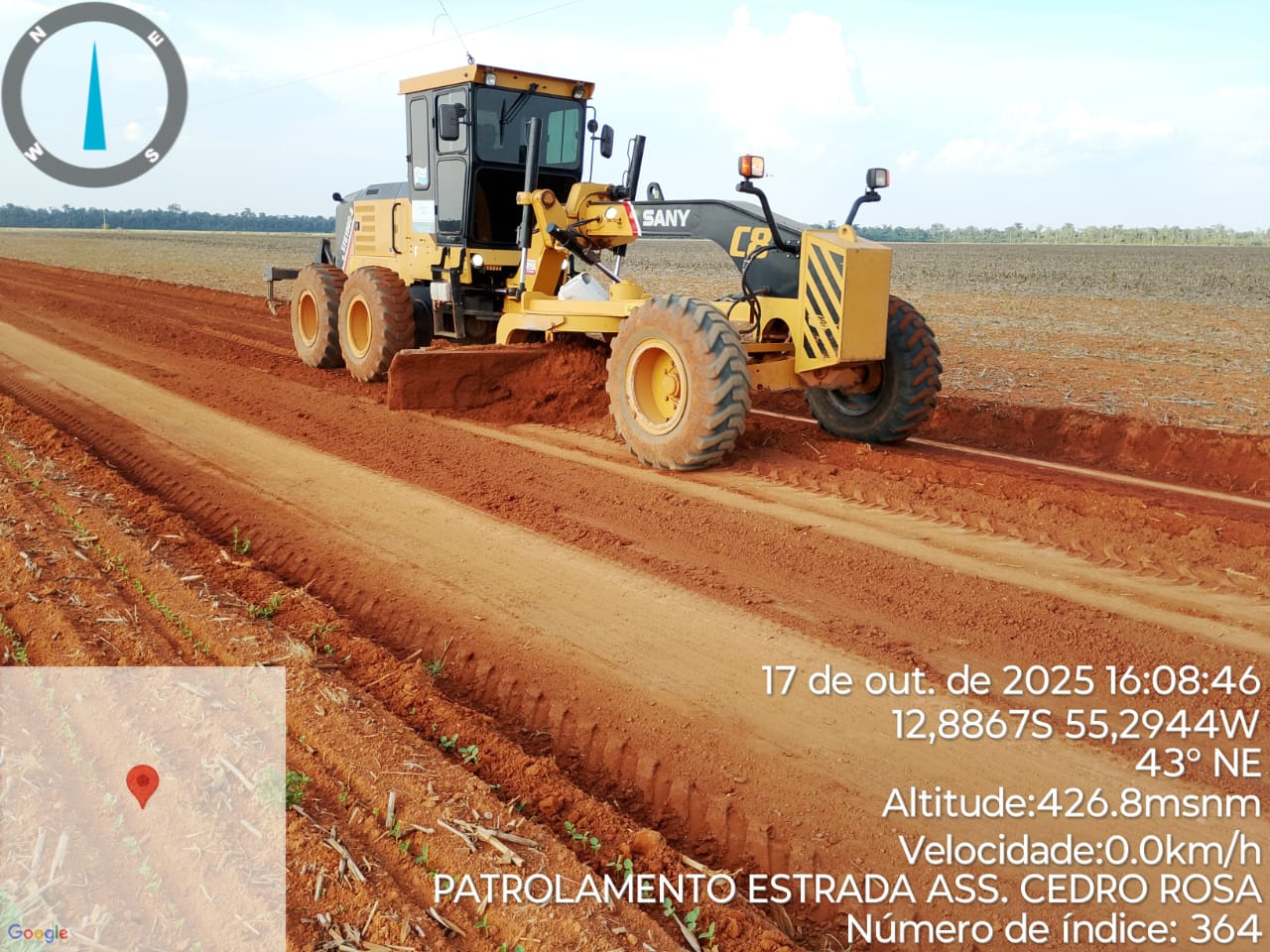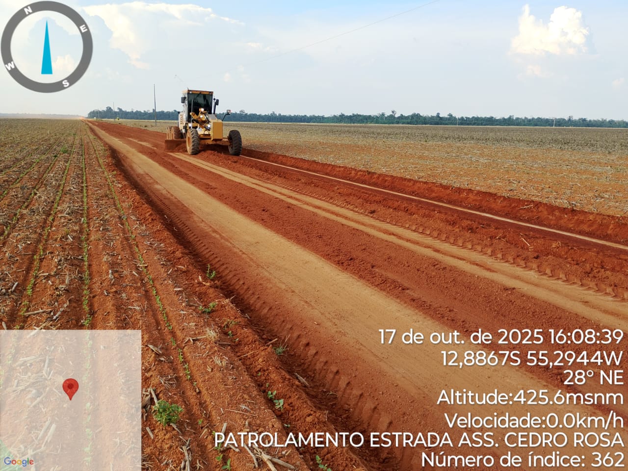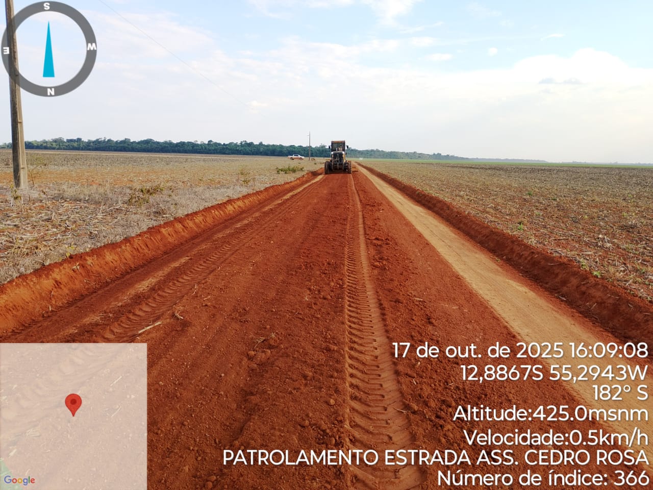A Prefeitura Municipal, por meio da Secretaria de Obras, realizou nesta semana trabalhos de patrolamento e melhoria no escoamento de águas pluviais na estrada vicinal, no trecho que vai do assentamento Cedro Rosa até a divisa com o município de Sorriso.