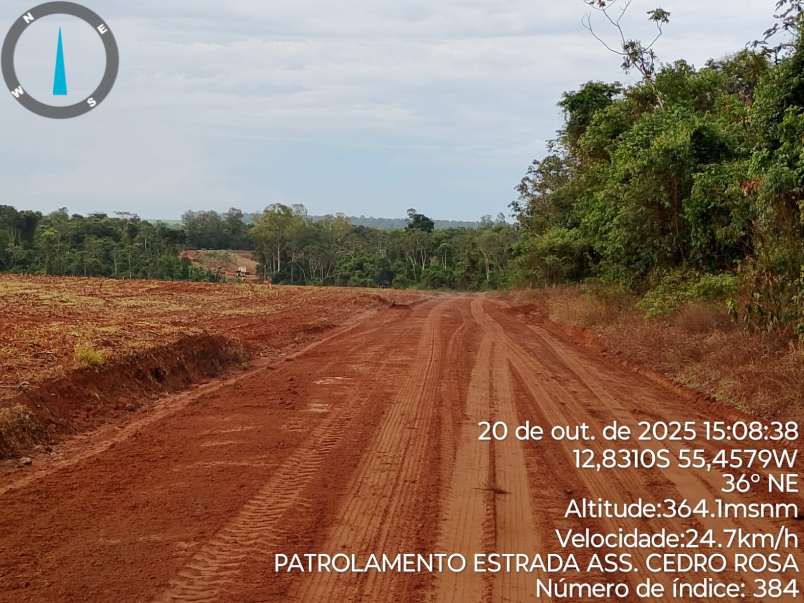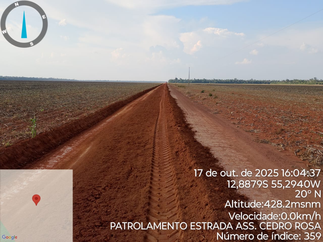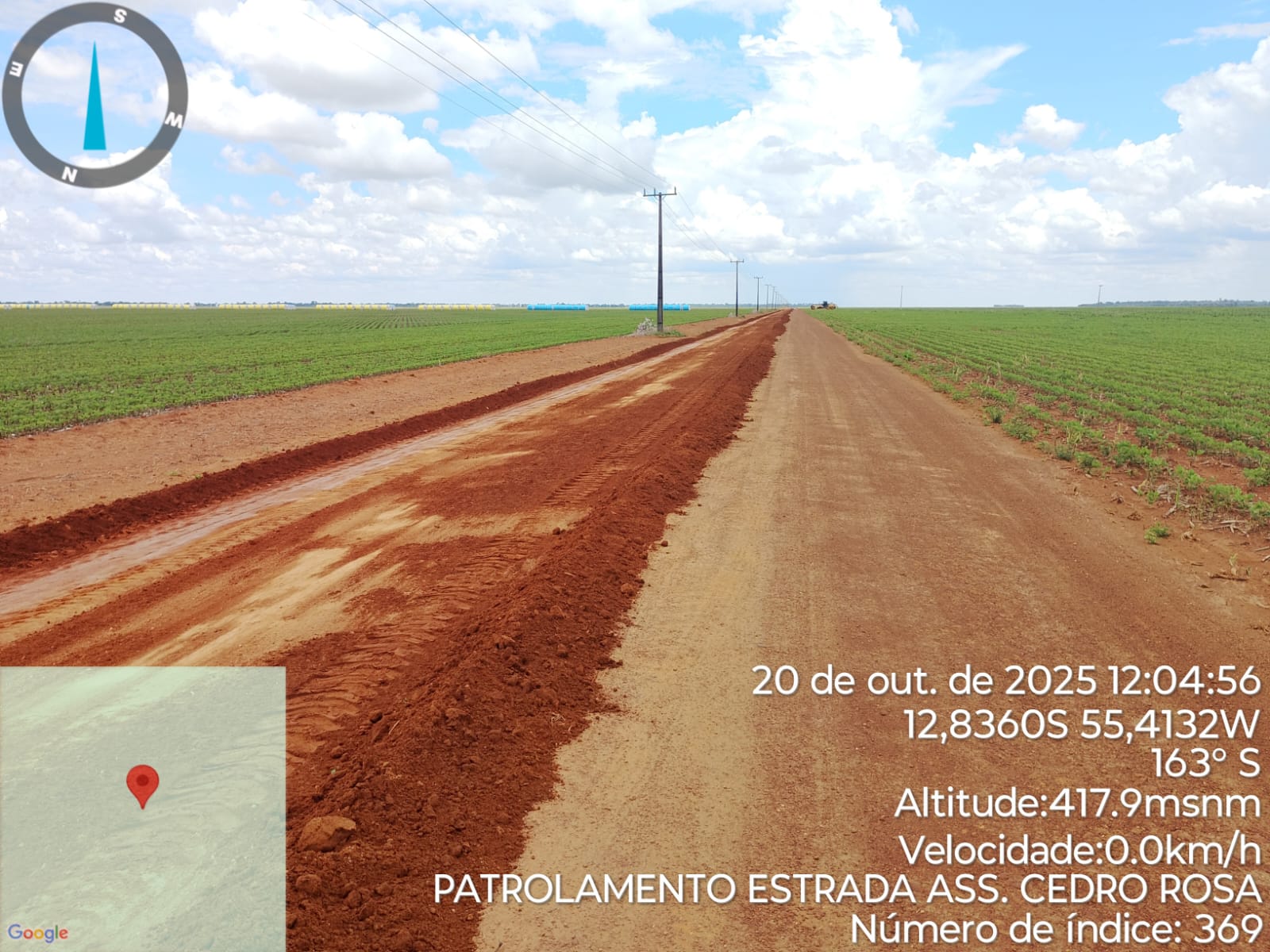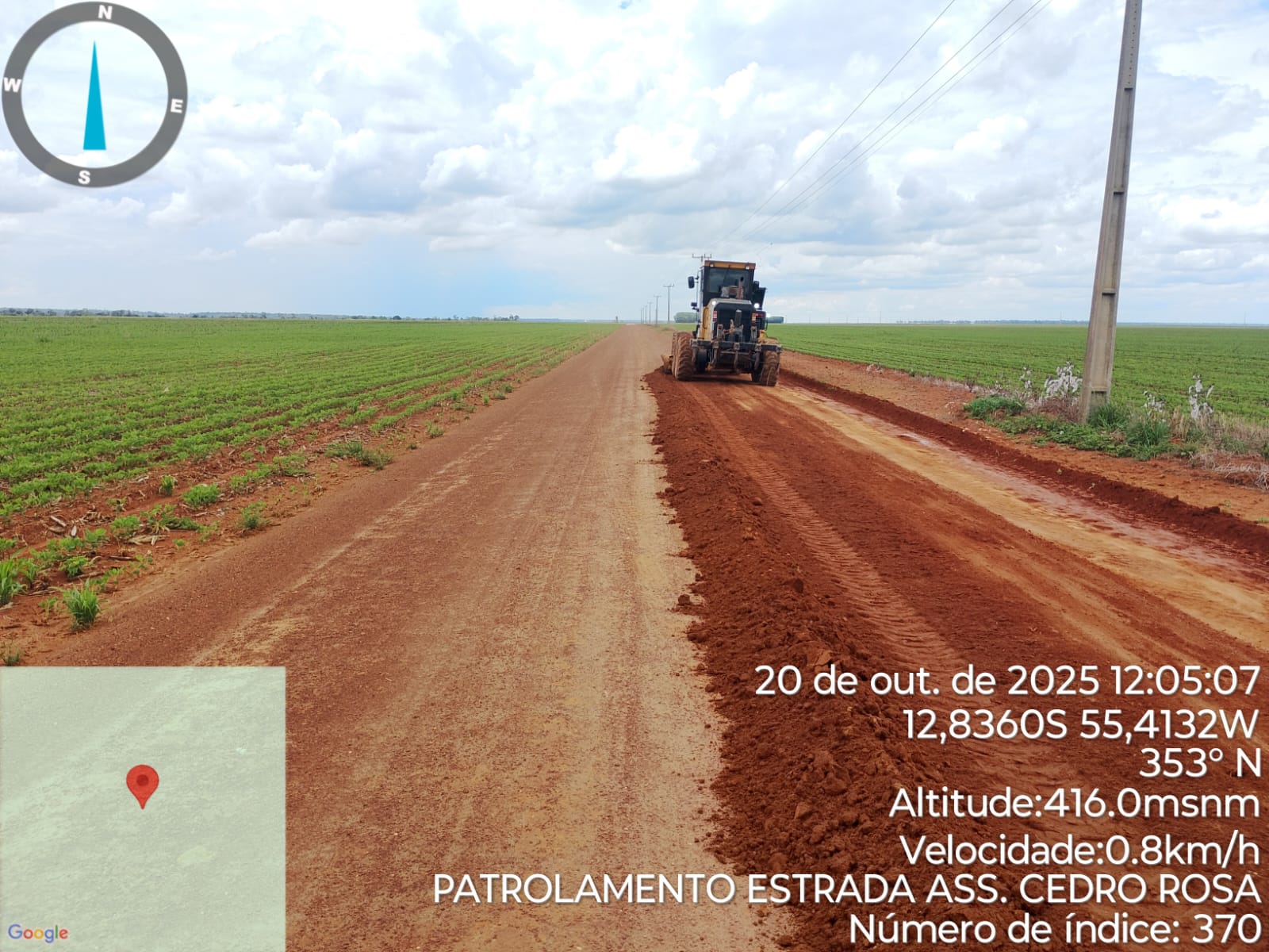 A Prefeitura Municipal, por meio da Secretaria de Obras, realizou nesta semana trabalhos de patrolamento e melhoria no escoamento de águas pluviais na estrada vicinal, no trecho que vai do assentamento Cedro Rosa até a divisa com o município de Sorriso.