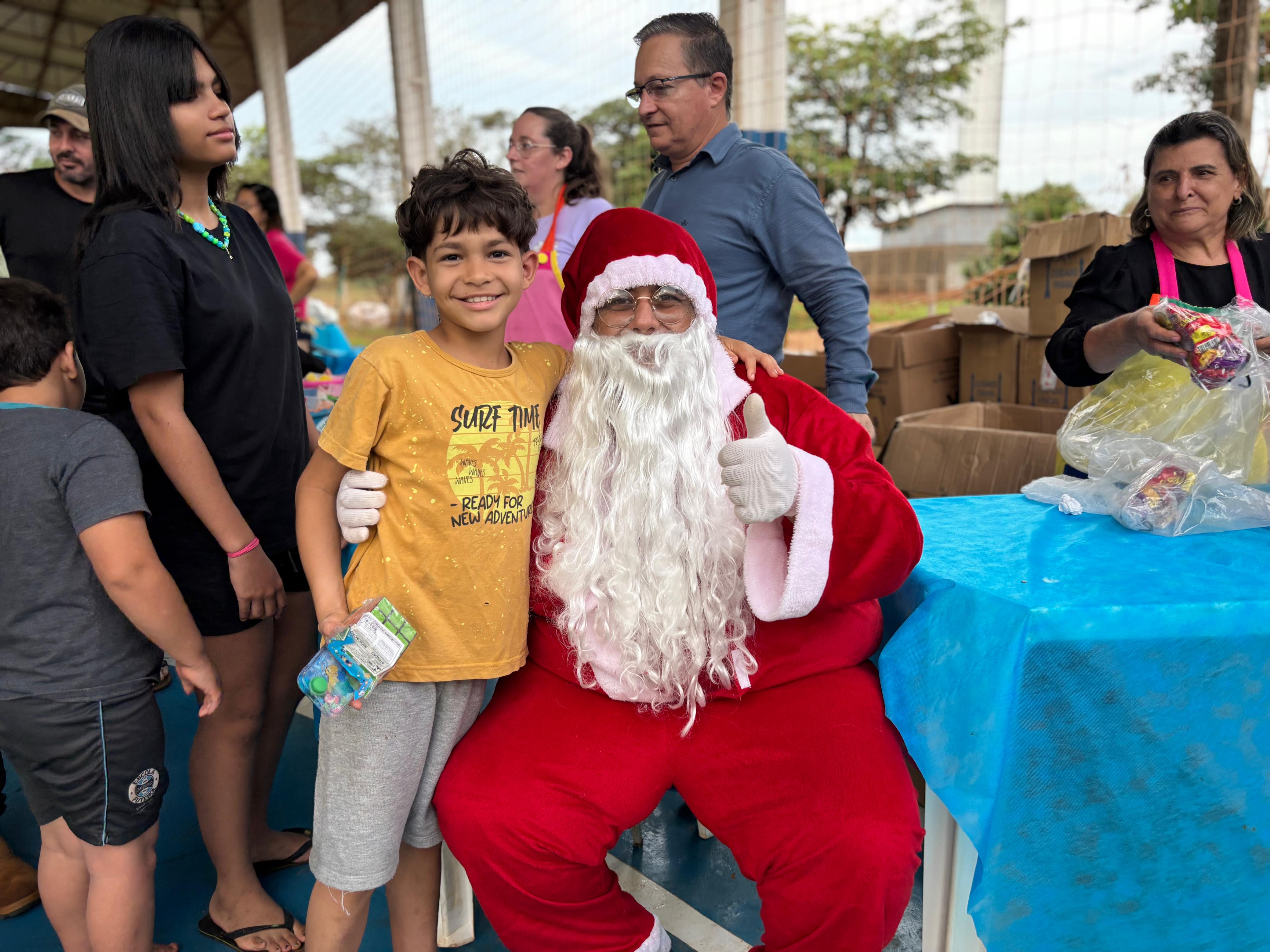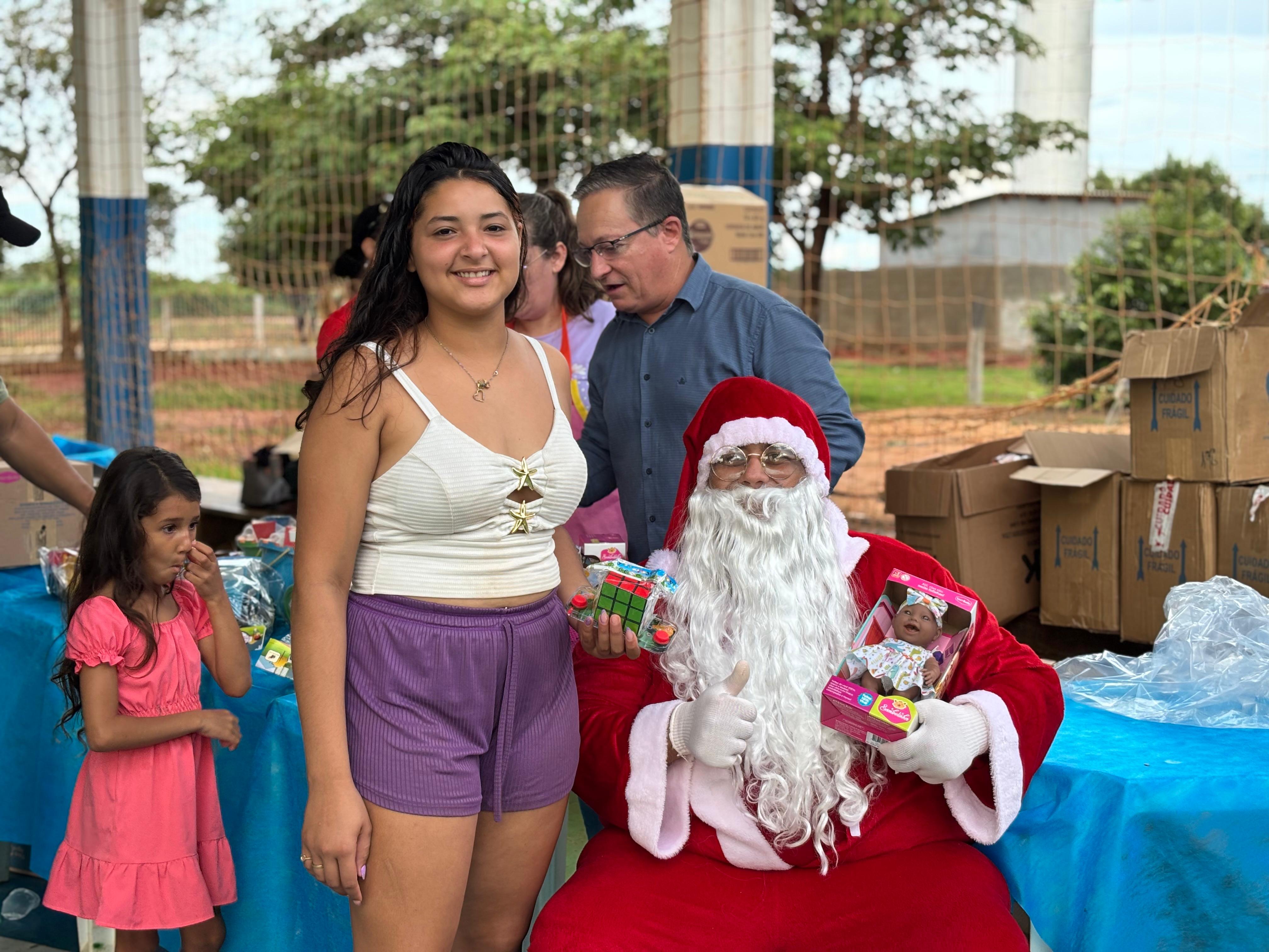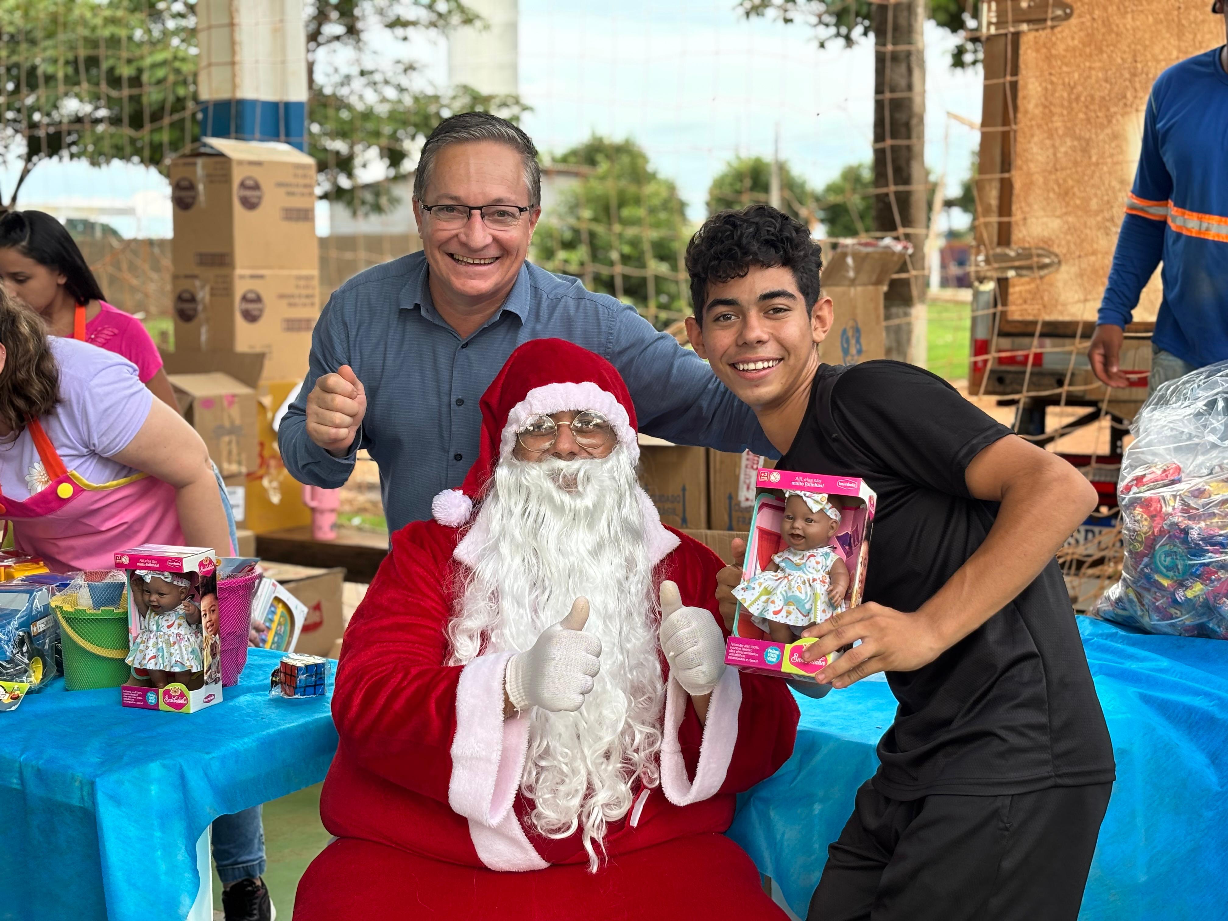 A entrega de doces e brinquedos com a ilustre presença do Papai Noel será realizada ainda nos distritos de Novo Mato Grosso na terça-feira (09), Santo Antônio do Rio Bonito na quarta-feira (10) e na sede do município no próximo sábado (13).