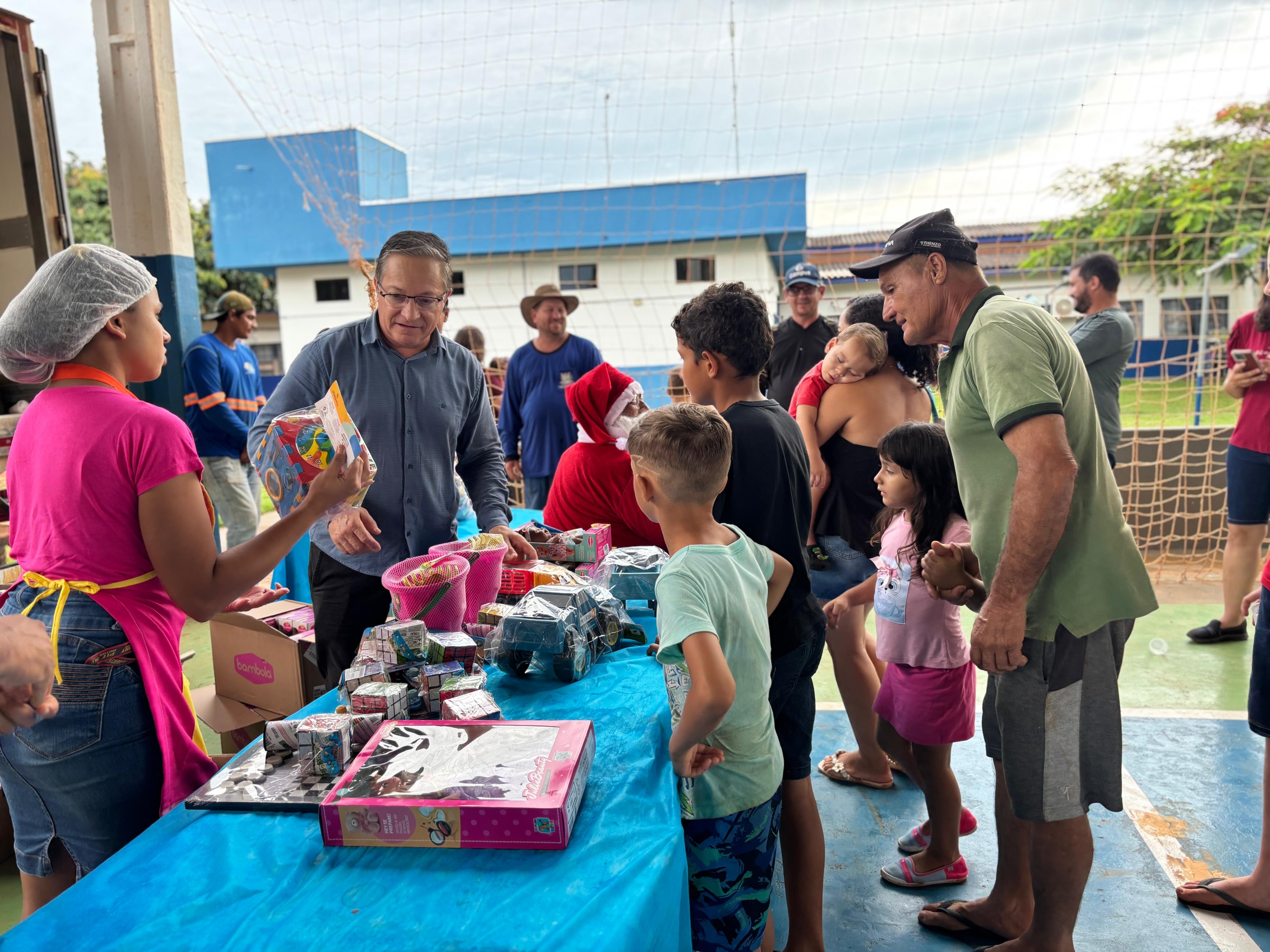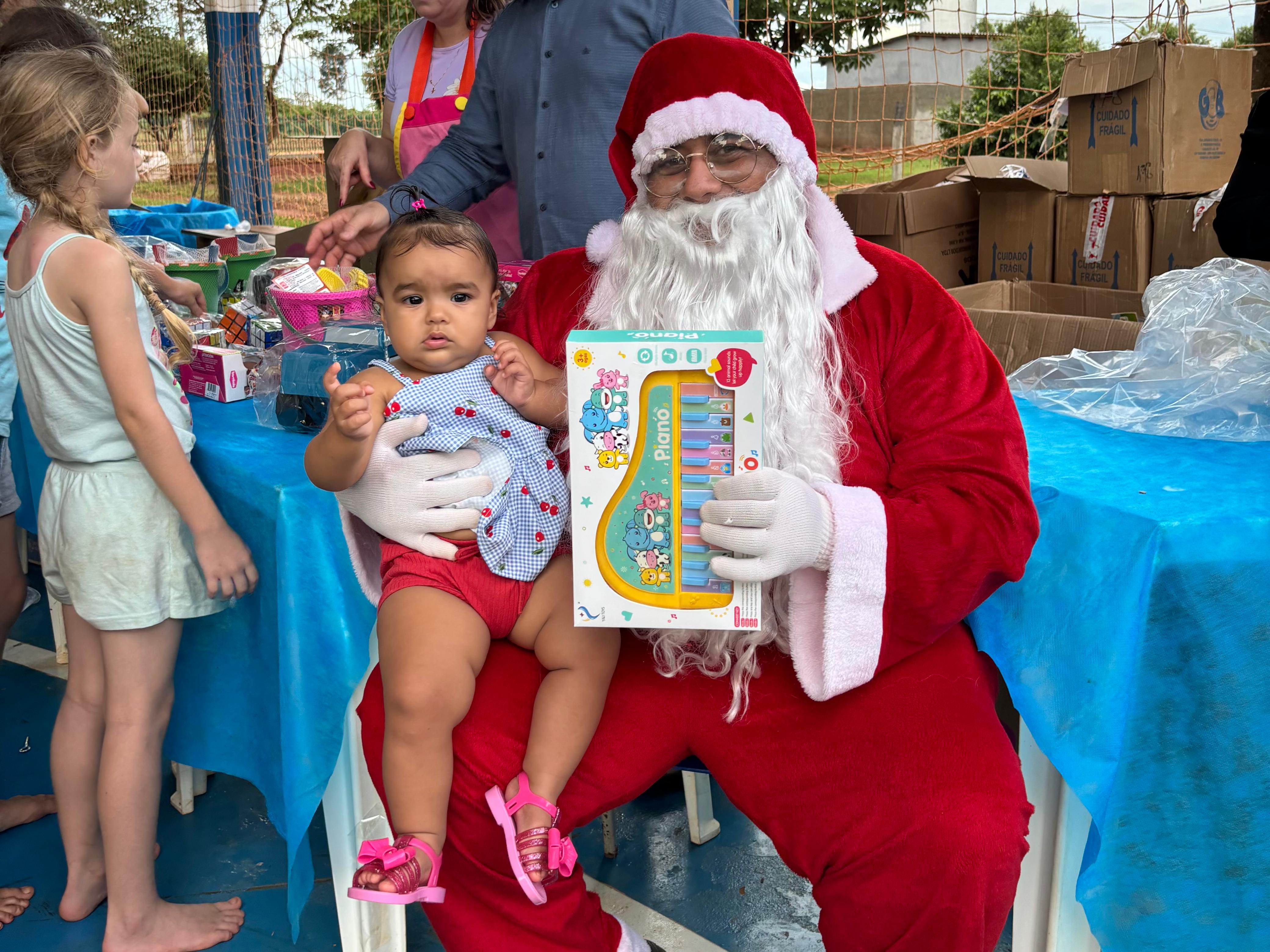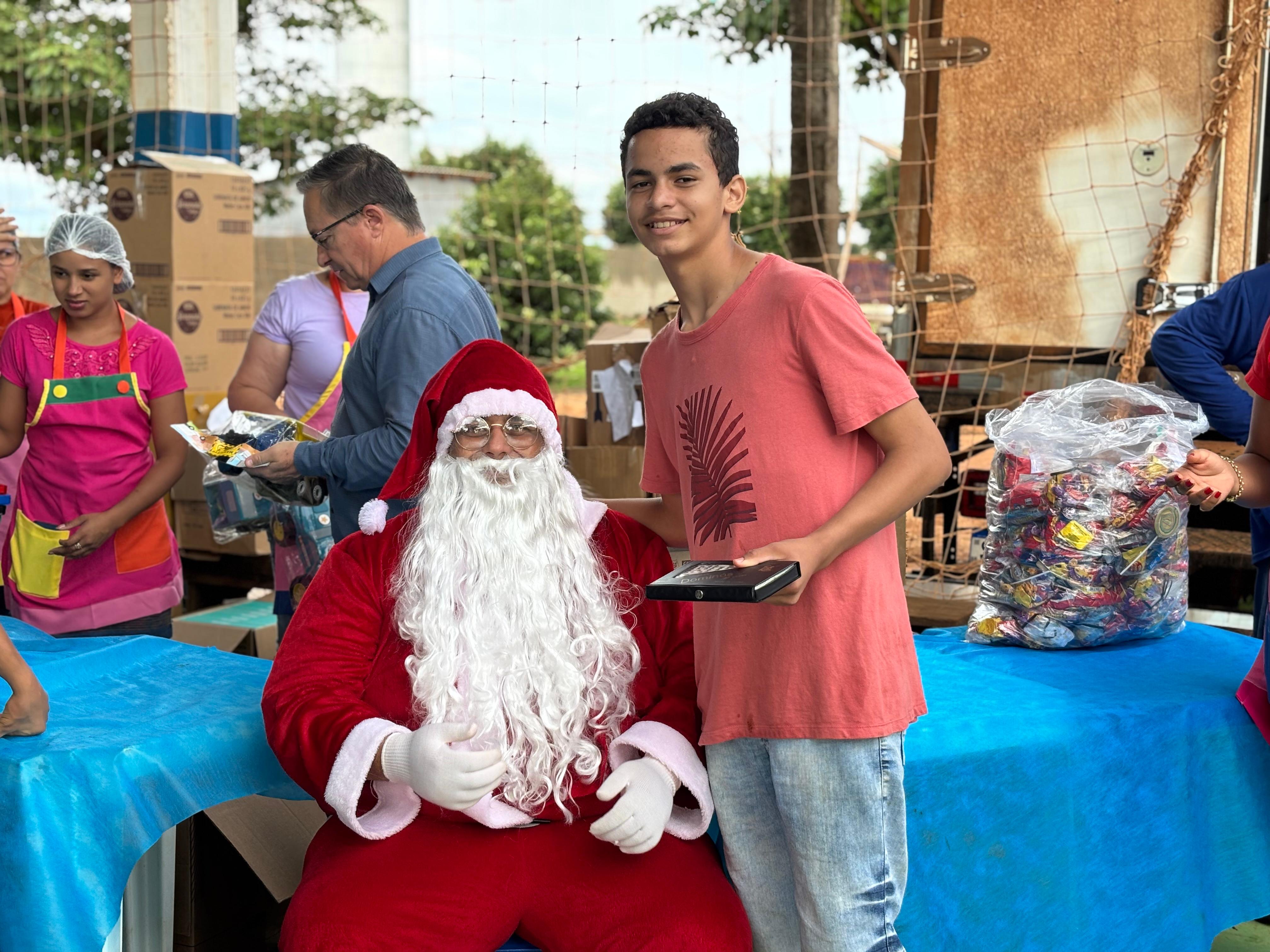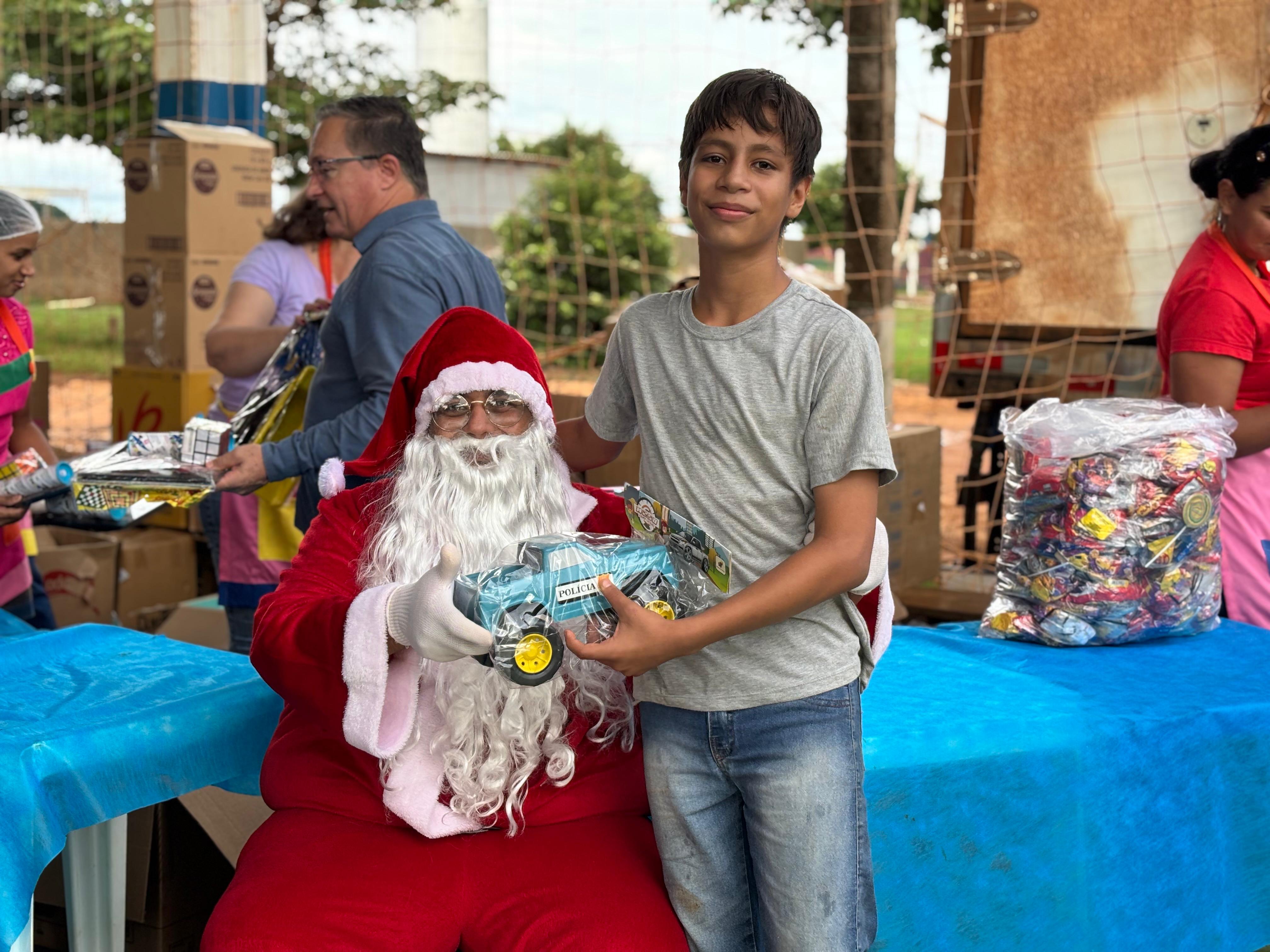 A entrega de doces e brinquedos com a ilustre presença do Papai Noel será realizada ainda nos distritos de Novo Mato Grosso na terça-feira (09), Santo Antônio do Rio Bonito na quarta-feira (10) e na sede do município no próximo sábado (13).