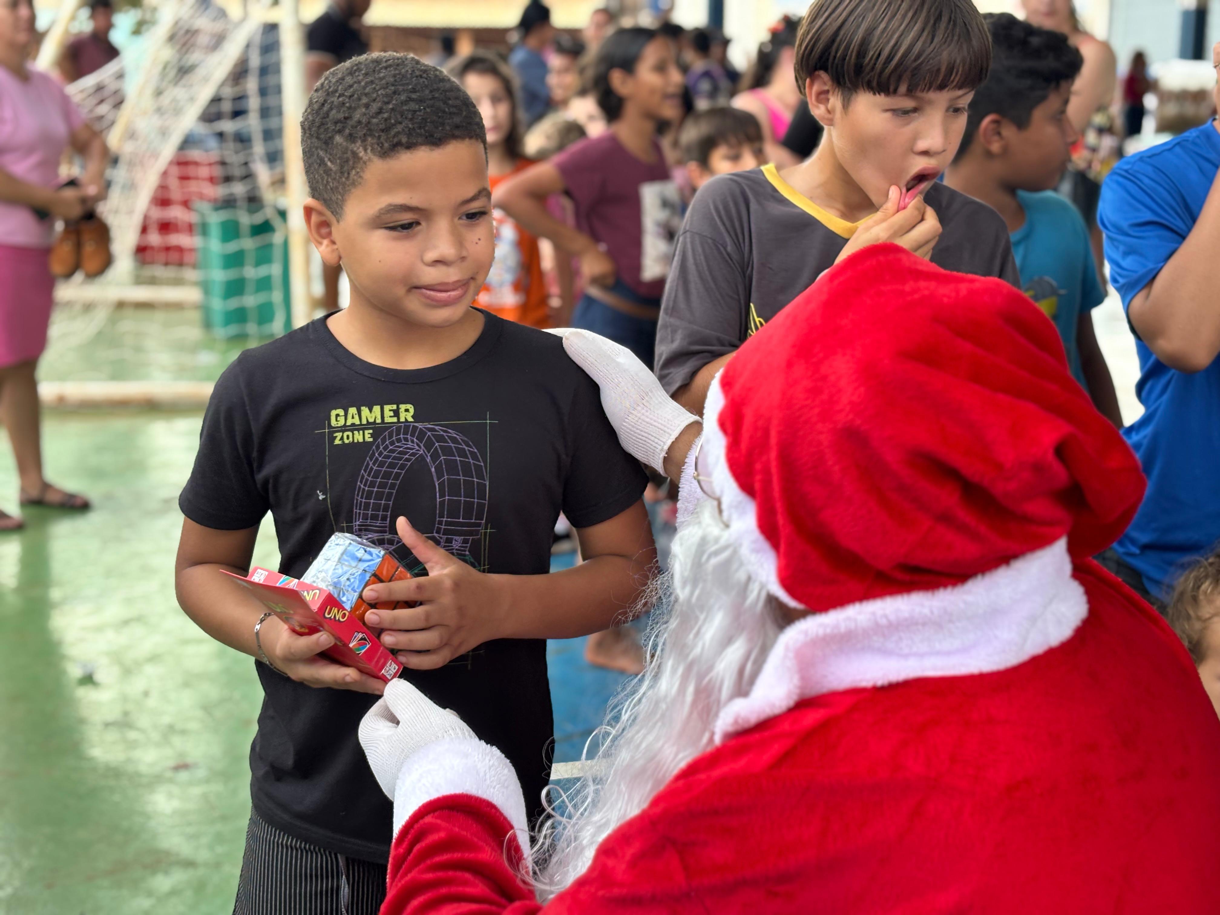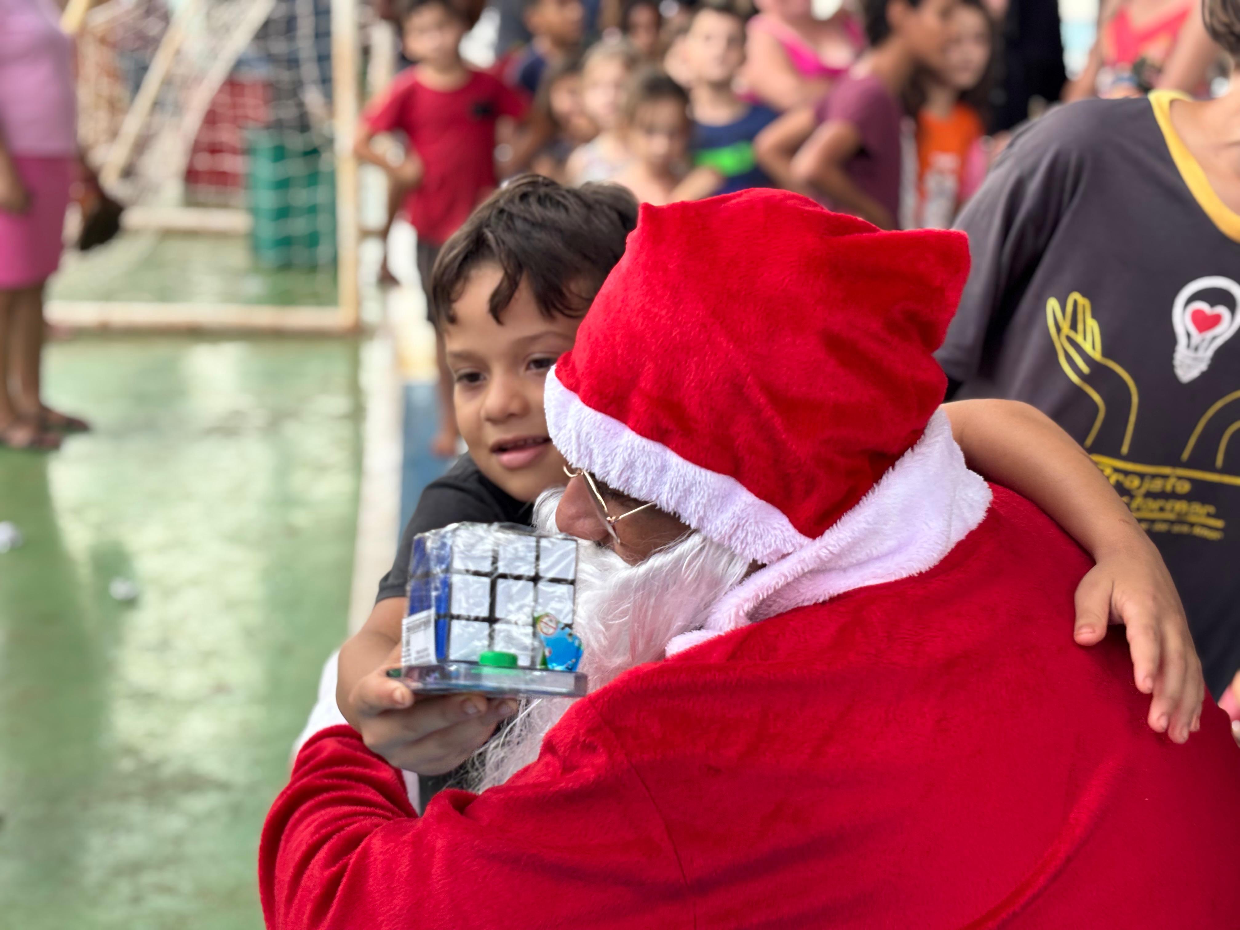 Durante a programação, foram distribuídos doces e brinquedos, com destaque para a presença ilustre do Papai Noel, que encantou a criançada e levou ainda mais magia ao momento. A iniciativa contou também com brinquedos infláveis, pipoca, cachorro-quente, algodão-doce e diversas atividades recreativas, proporcionando um ambiente de alegria, integração e muita diversão.