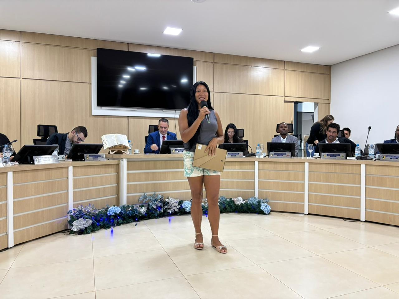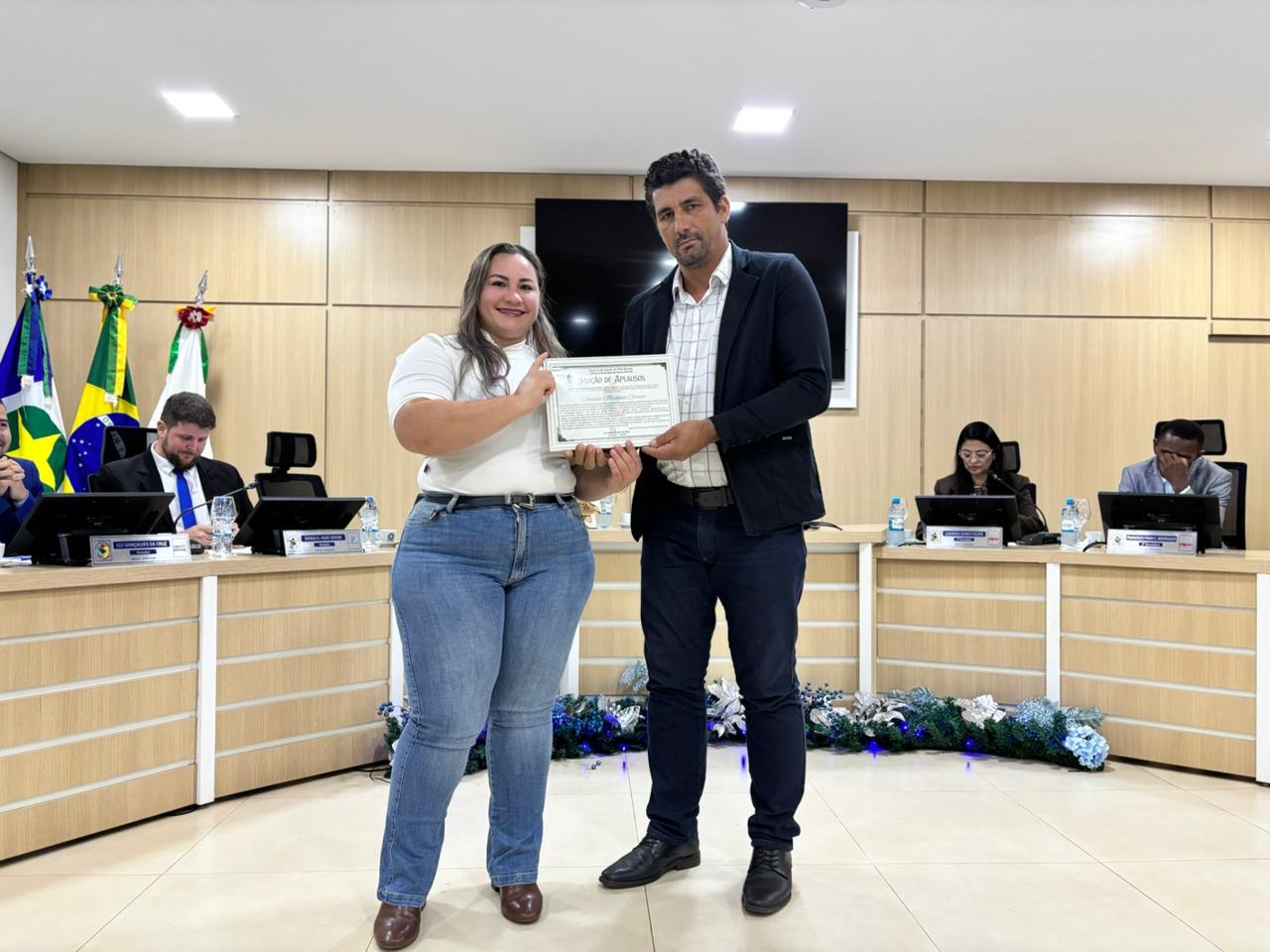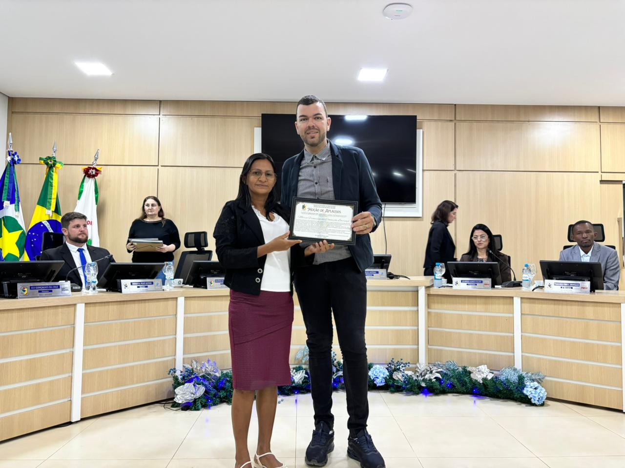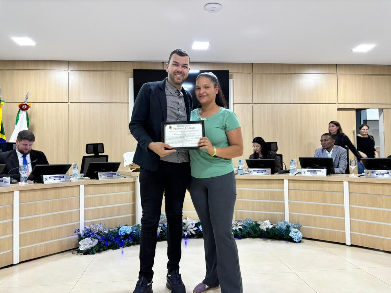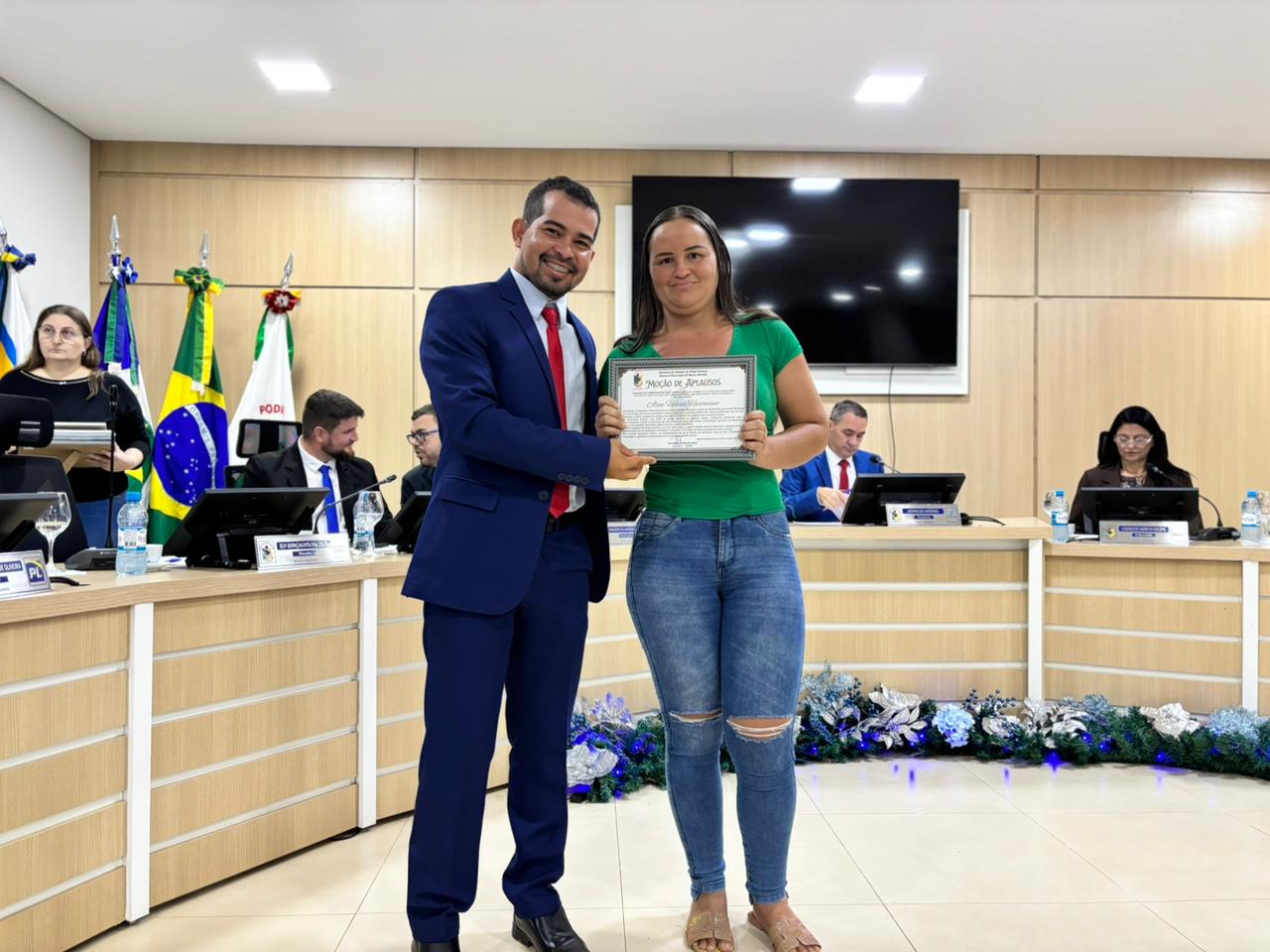 Durante a sessão, foi entregue uma Moção de Aplausos às merendeiras da sede, dos distritos e das comunidades de Nova Ubiratã, em reconhecimento aos relevantes serviços prestados ao município. Na ocasião, a nutricionista Amanda Cristina Lima de Oliveira também foi homenageada, recebendo reconhecimento pelo trabalho técnico e pelo apoio indispensável às equipes de merenda.