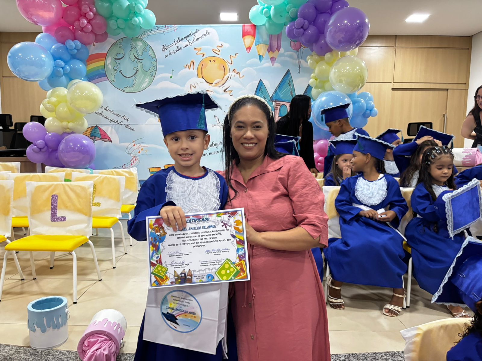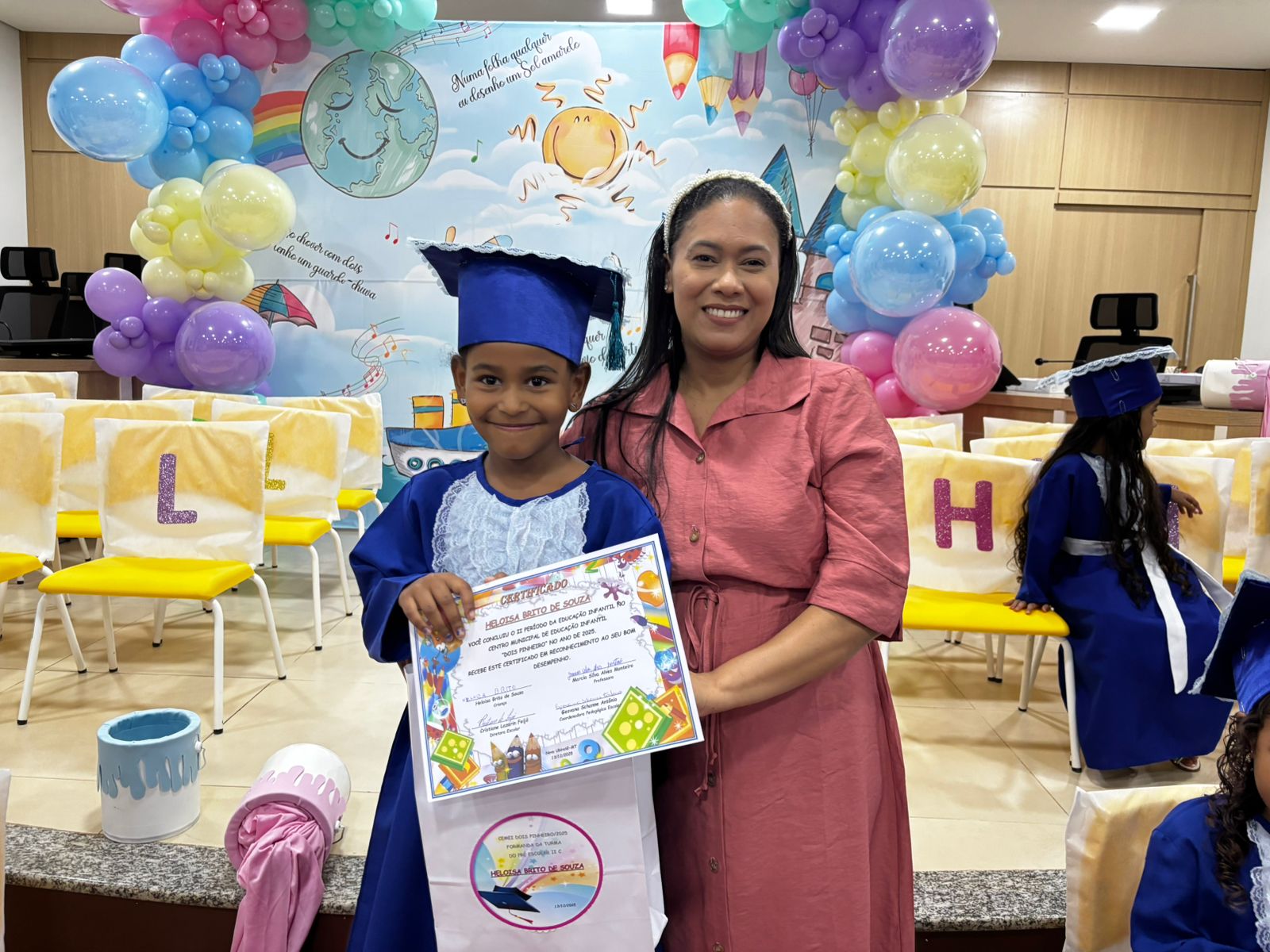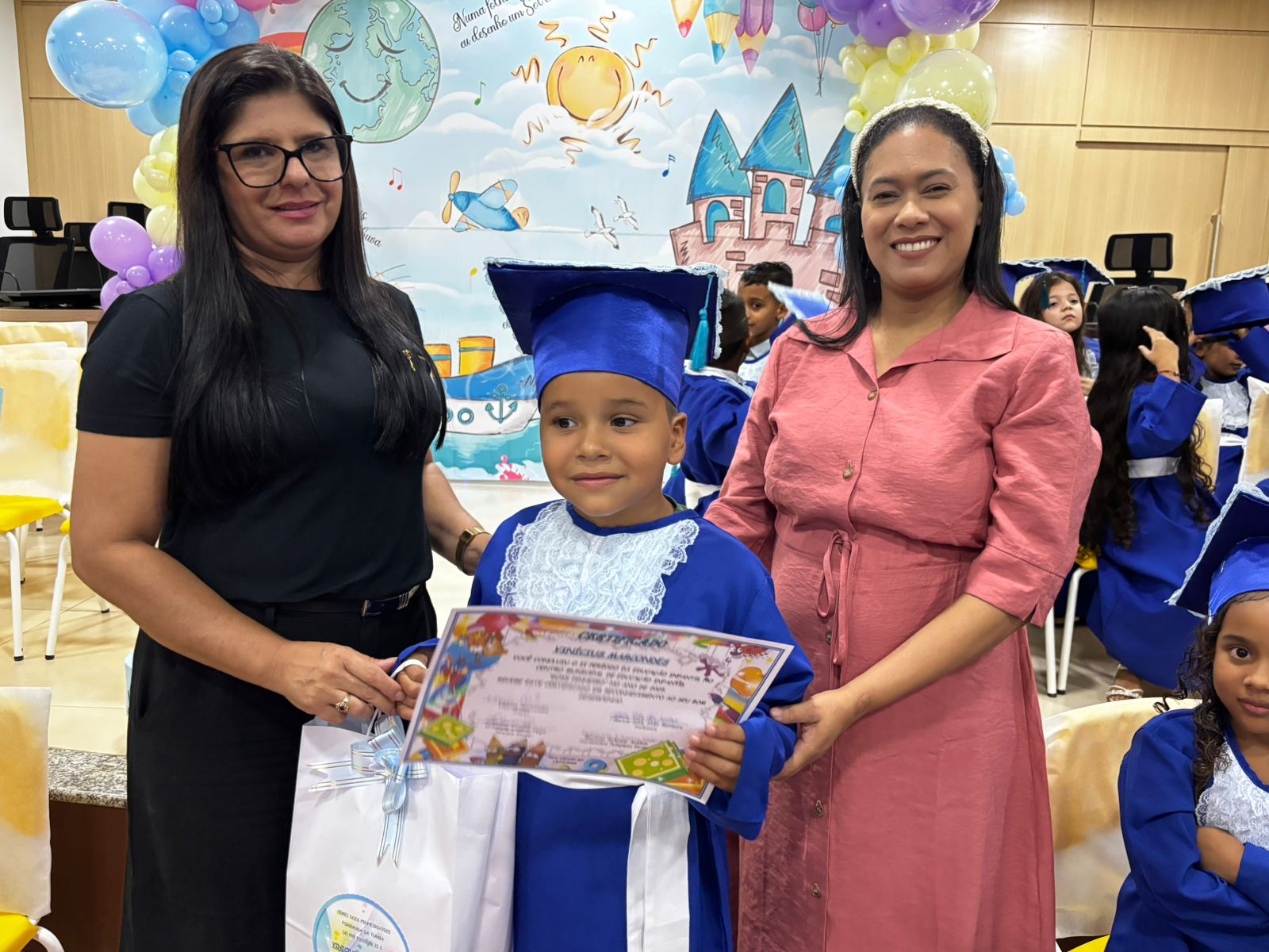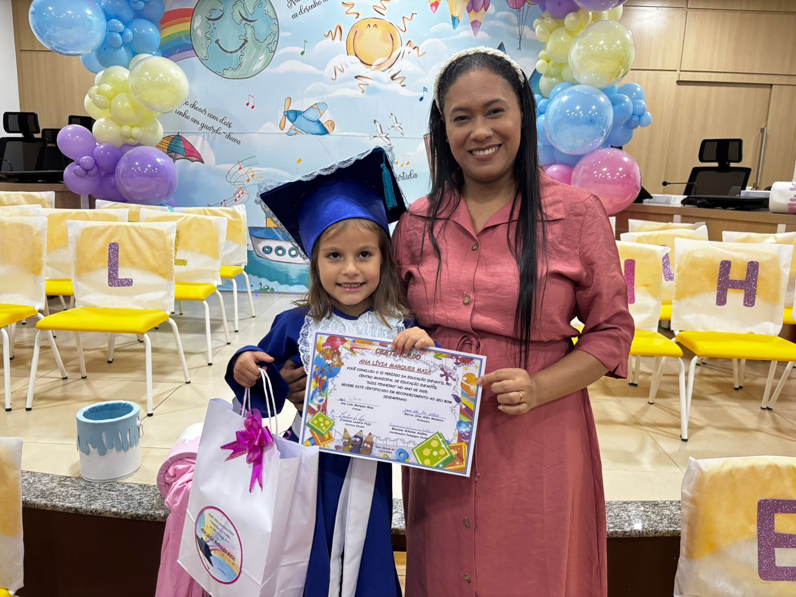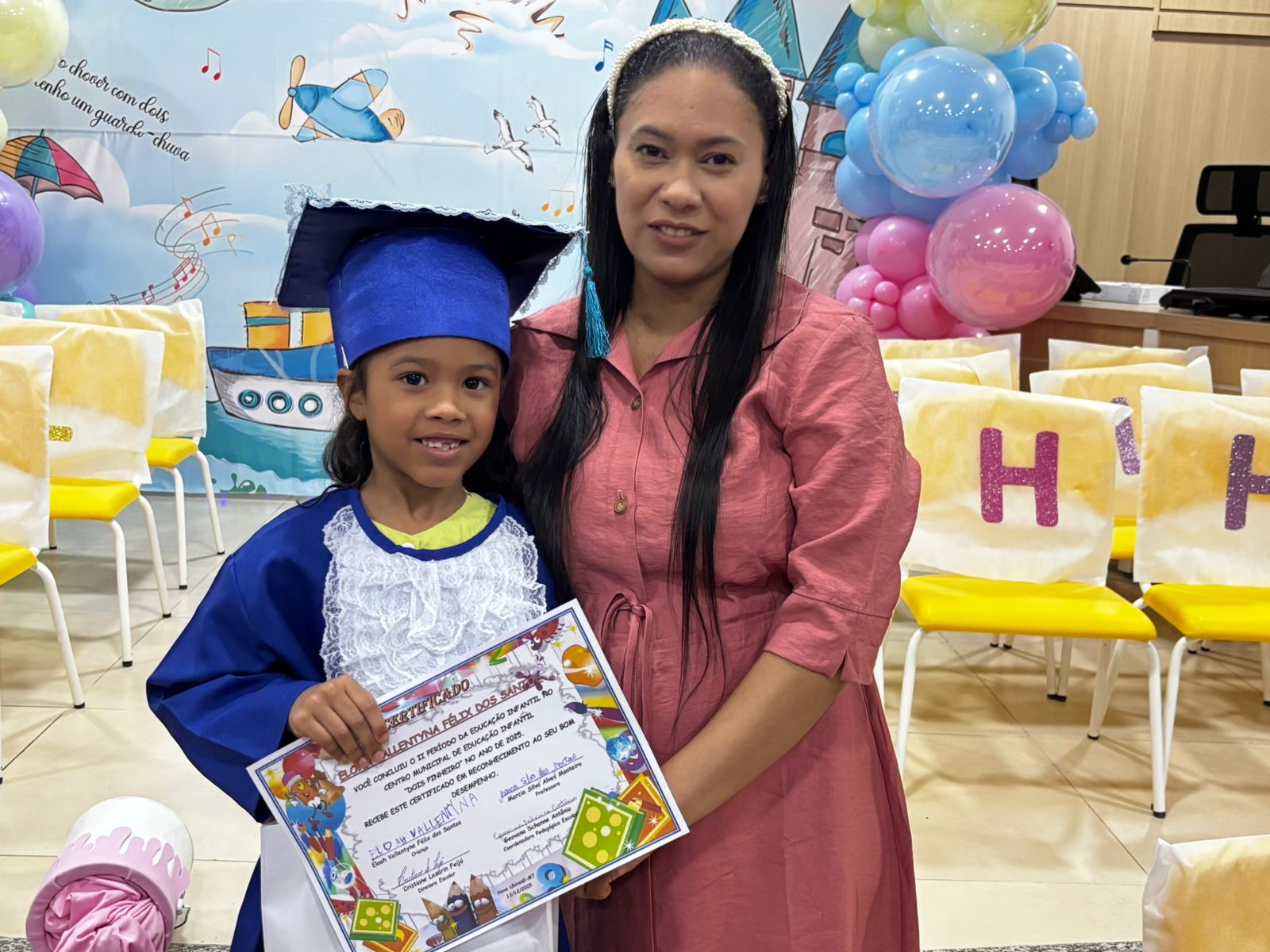 A primeira cerimônia aconteceu às 17h, e representaram a Secretaria de Educação a senhora Dilma Aparecida das Neves e a coordenadora de Educação Infantil, Brenda Fernandes. A solenidade contou com a dedicação das professoras responsáveis pelas turmas, que acompanharam o desenvolvimento dos alunos ao longo do ano letivo, além do apoio das auxiliares de sala, que contribuíram diretamente para o aprendizado e o cuidado diário das crianças. A formatura simbolizou o encerramento de um ciclo fundamental na vida escolar dos formandos.