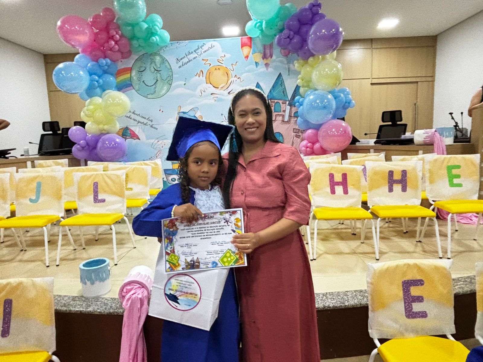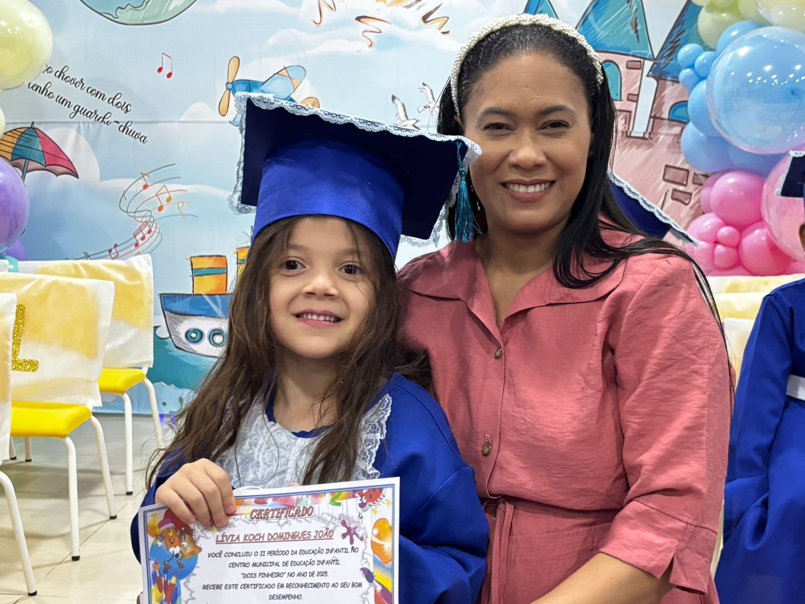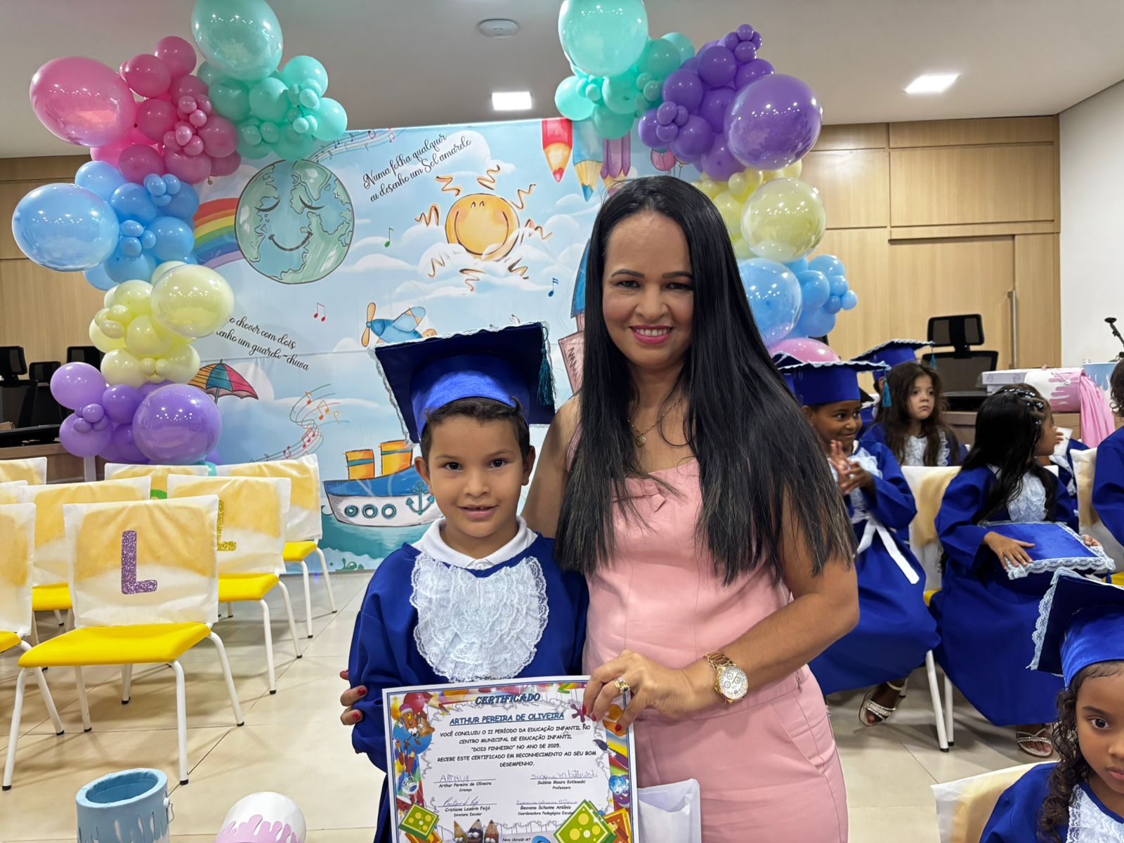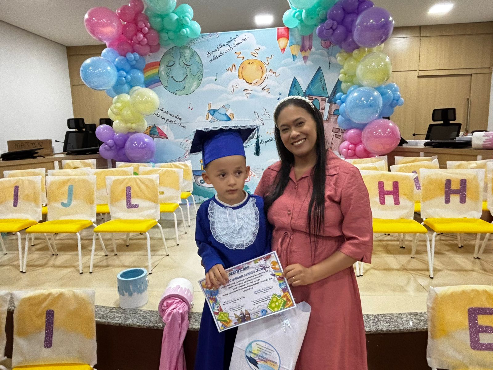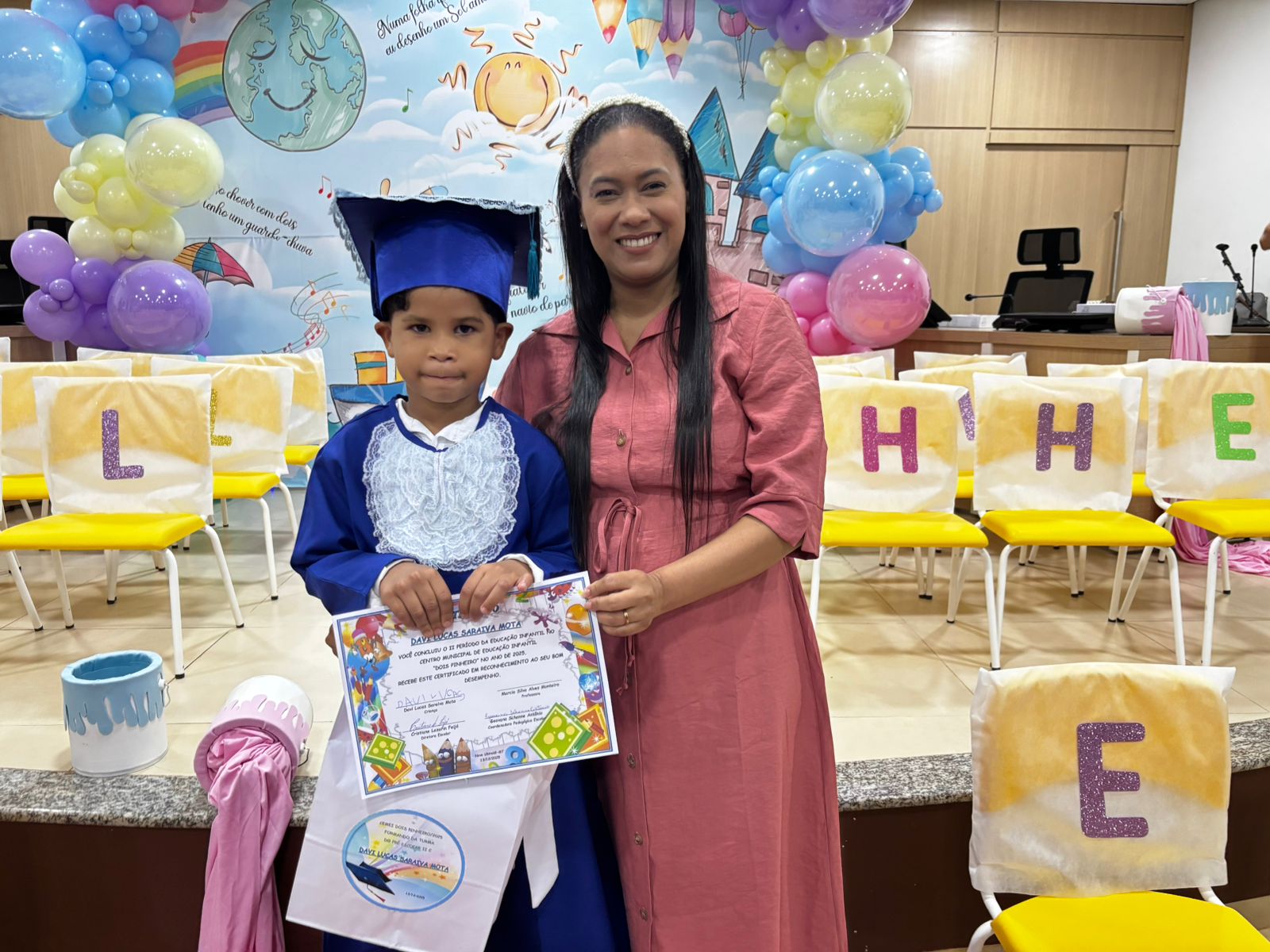 A primeira cerimônia aconteceu às 17h, e representaram a Secretaria de Educação a senhora Dilma Aparecida das Neves e a coordenadora de Educação Infantil, Brenda Fernandes. A solenidade contou com a dedicação das professoras responsáveis pelas turmas, que acompanharam o desenvolvimento dos alunos ao longo do ano letivo, além do apoio das auxiliares de sala, que contribuíram diretamente para o aprendizado e o cuidado diário das crianças. A formatura simbolizou o encerramento de um ciclo fundamental na vida escolar dos formandos.