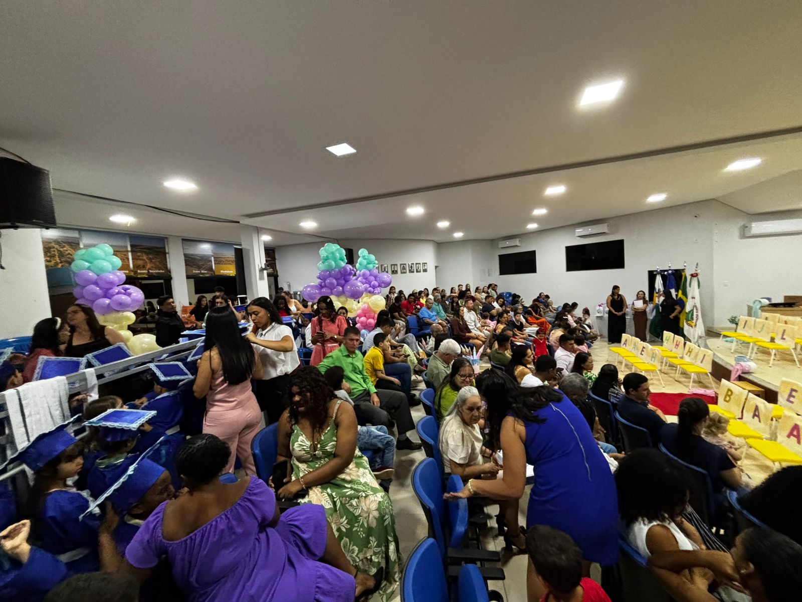 O evento foi realizado em um ambiente acolhedor, fortalecendo a integração entre escola e família. Pais, responsáveis e convidados prestigiaram a cerimônia, reforçando a importância da parceria no processo educacional e no desenvolvimento das crianças.