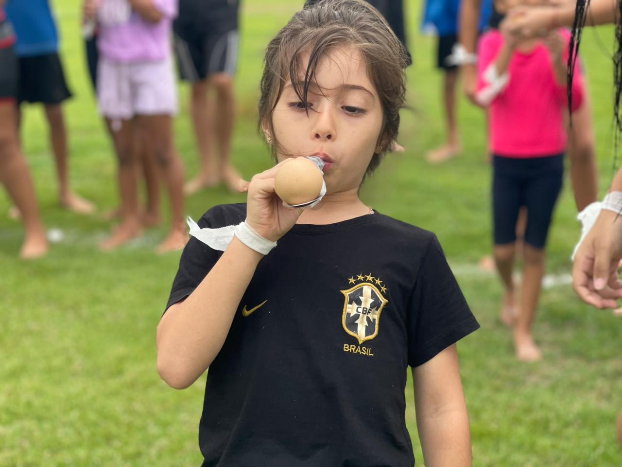 Durante a gincana, as crianças participaram de diversas atividades recreativas, como corrida de saco, pula-corda, ovo na colher, chute no gol, basquete maluco, escorregador com sabão e o animado desafio do copo, garantindo diversão e interação entre todos. Ao todo, foram formadas quatro equipes, compostas por professores e alunos, identificadas pelas cores verde, laranja, branco e azul. A equipe verde foi a grande vencedora da gincana, após concluir todo o circuito de provas no menor tempo.