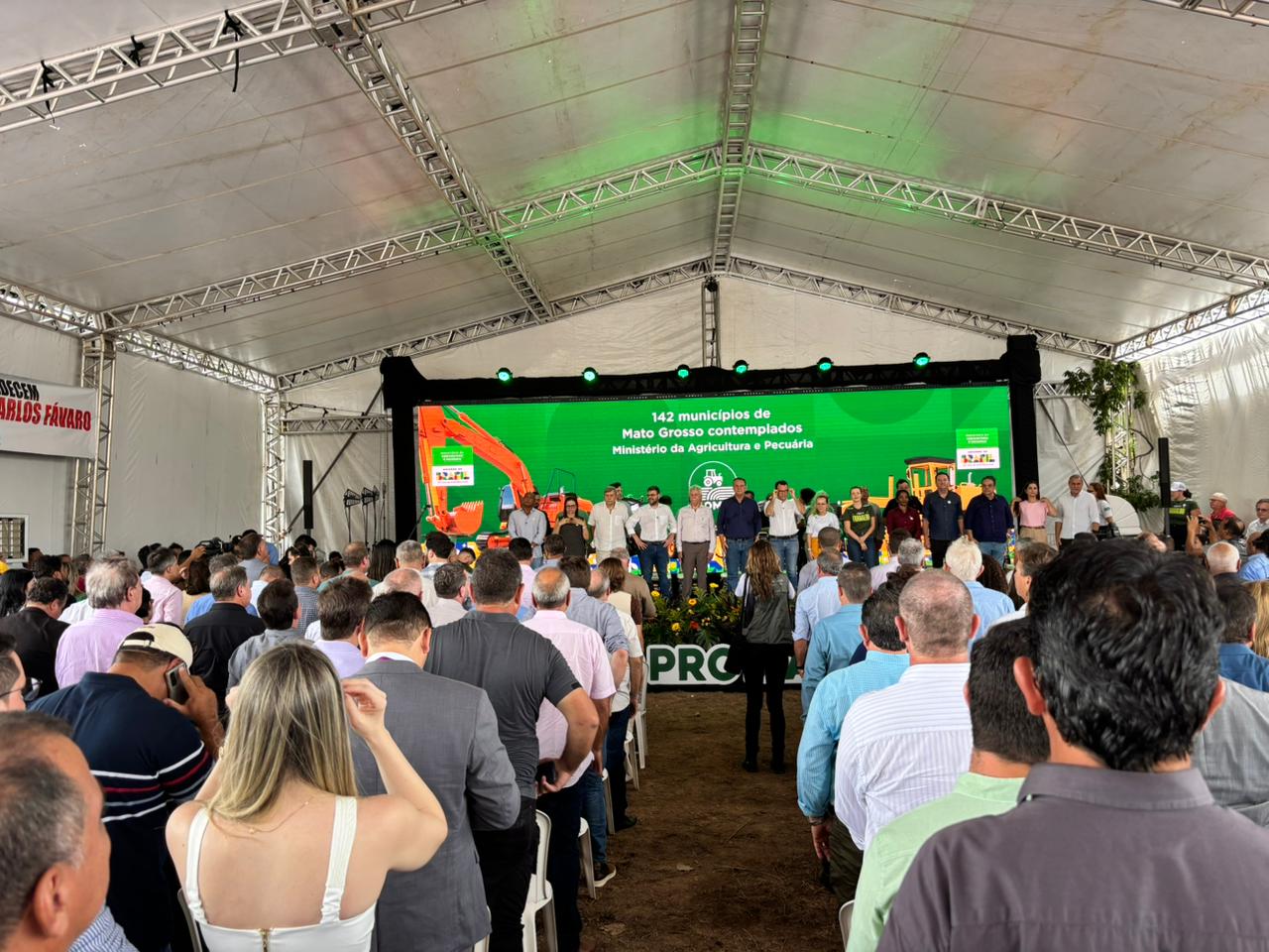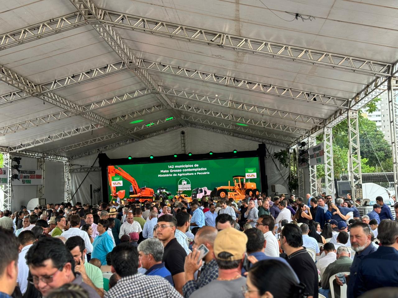 A solenidade aconteceu em Cuiabá, e reuniu diversas autoridades estaduais, federais e municipais. Ao todo, mais de 300 máquinas foram entregues às 142 prefeituras de Mato Grosso, fortalecendo o apoio ao setor produtivo e aos serviços públicos municipais.