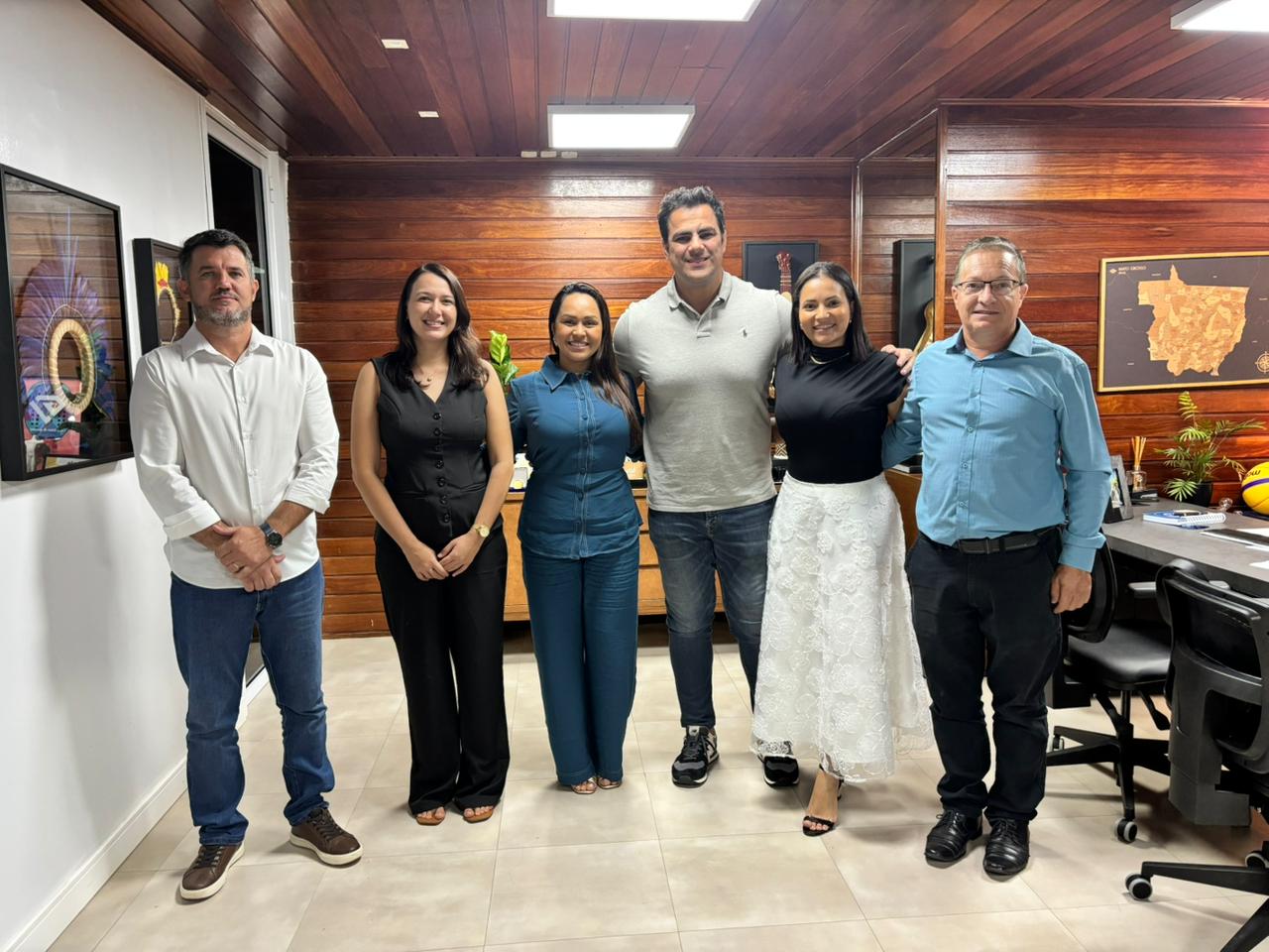 Seguindo agenda institucional em Cuiabá, na tarde desta terça-feira (03), o Prefeito Municipal de Nova Ubiratã, Edegar José Bernardi, acompanhado do Secretário Municipal de Agricultura, Assis Junior Guollo, da Secretária Municipal de Esporte e Lazer, Amanda Batista, da Secretária Adjunta de Indústria, Comércio, Turismo e Cultura, Ellen Bruna Triburtini, e da Médica Veterinária, Maria Eduarda Barbosa, estiveram cumprindo uma série de compromissos voltados ao fortalecimento das políticas públicas do município.