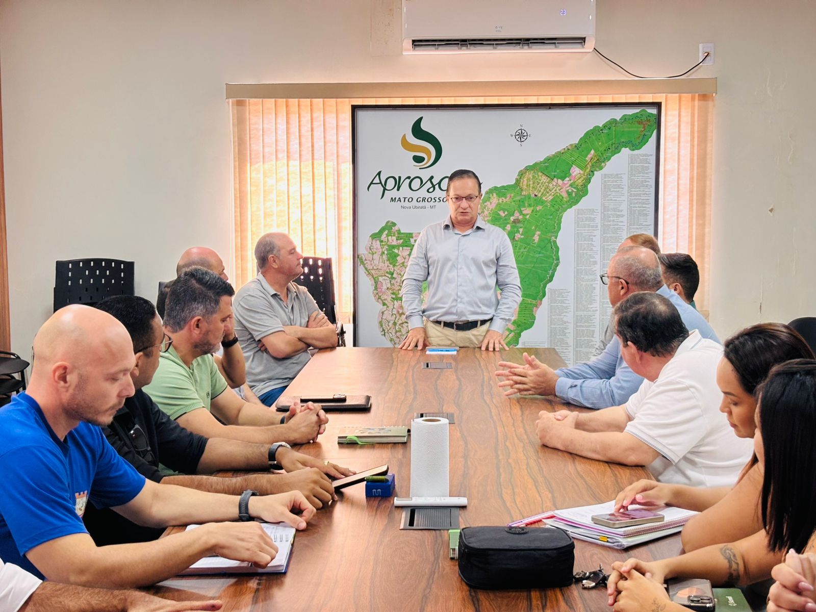 Durante a reunião, foi apresentado um panorama de Nova Ubiratã, destacando suas potencialidades, estrutura produtiva e localização estratégica, evidenciando oportunidades para novos investimentos e parcerias.