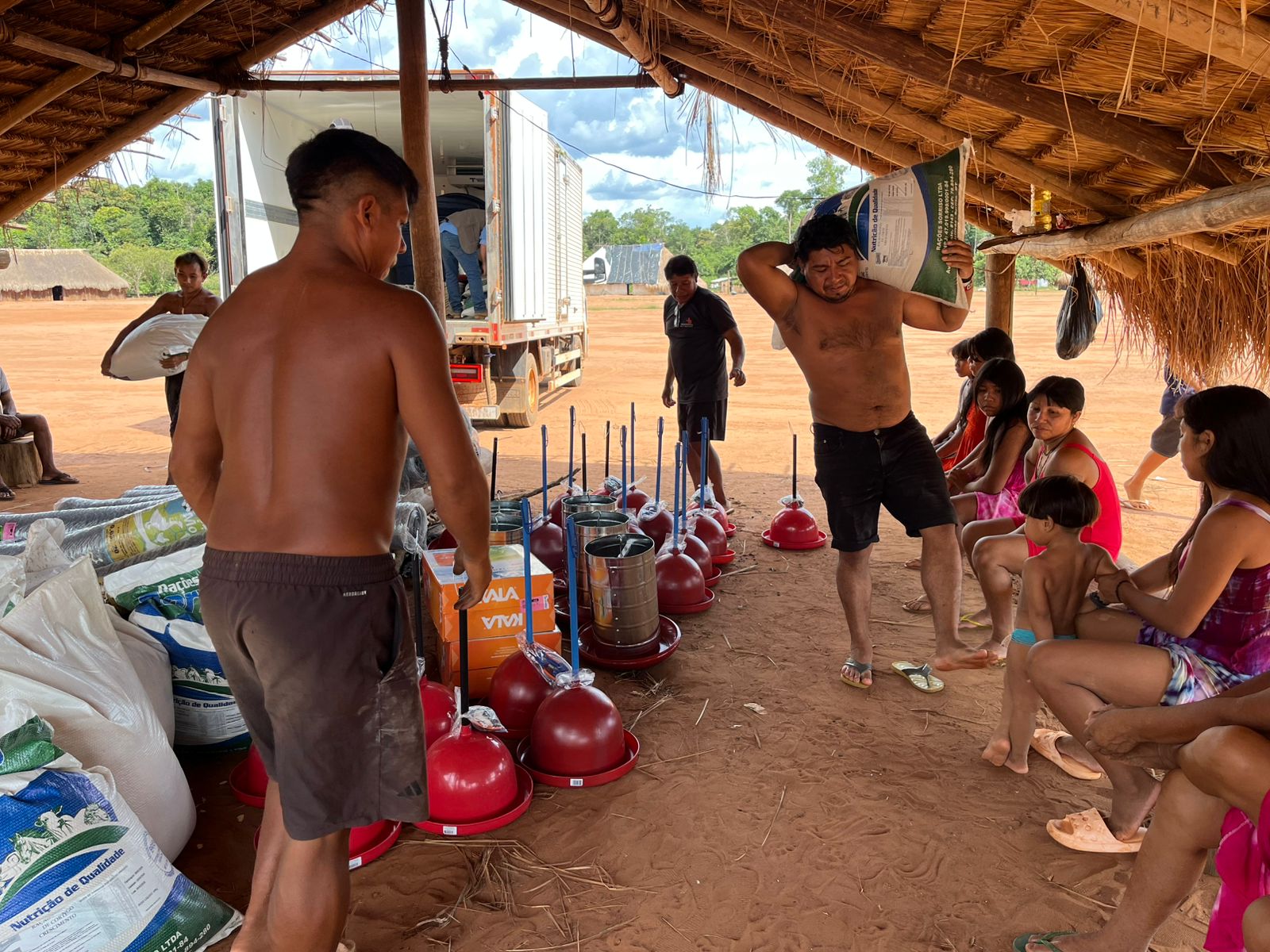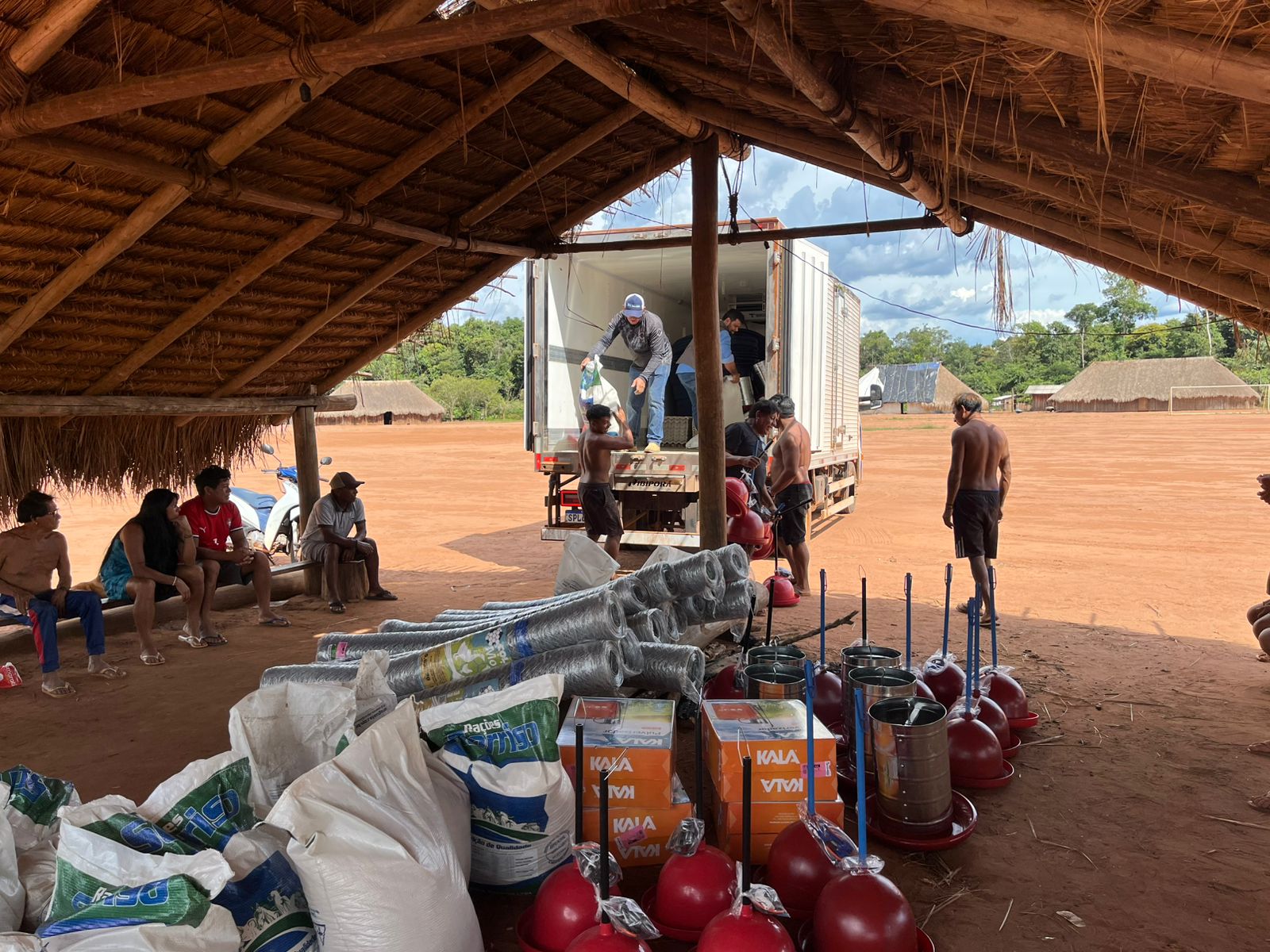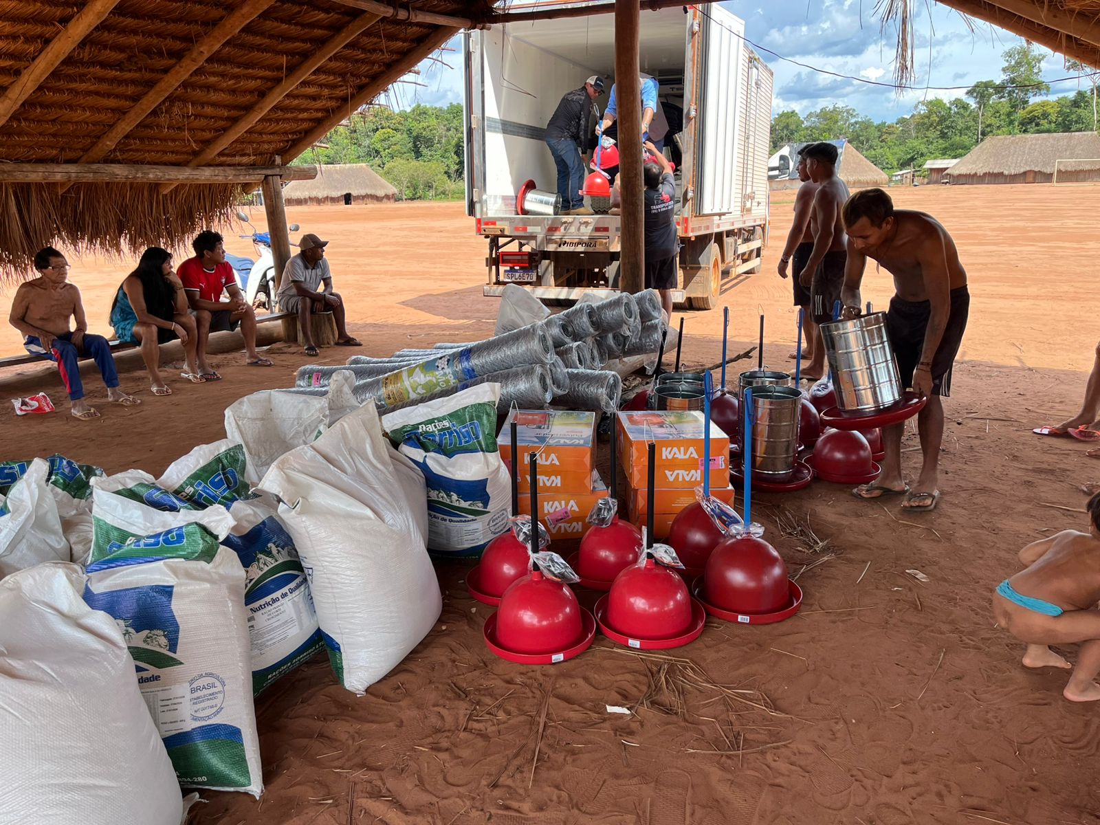 Na quinta-feira (19), a Prefeitura Municipal de Nova Ubiratã, por meio da Secretaria Municipal de Agricultura, em parceria com a Empresa Mato-grossense de Pesquisa, Assistência e Extensão Rural (EMPAER), realizou a entrega de materiais e pintainhos do Projeto FUNDAF na aldeia indígena do município. O FUNDAF é um projeto desenvolvido pelo Governo do Estado de Mato Grosso, que tem como objetivo fortalecer a produção de alimentos e promover o desenvolvimento sustentável das famílias atendidas.