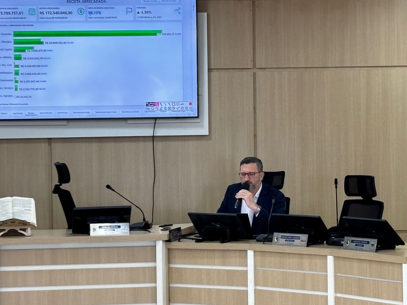 Durante a apresentação, foram detalhados dados sobre receitas, despesas, investimentos e resultados fiscais do período. A equipe técnica da administração municipal destacou os principais indicadores econômicos, evidenciando o equilíbrio das contas públicas e o compromisso com a responsabilidade fiscal.