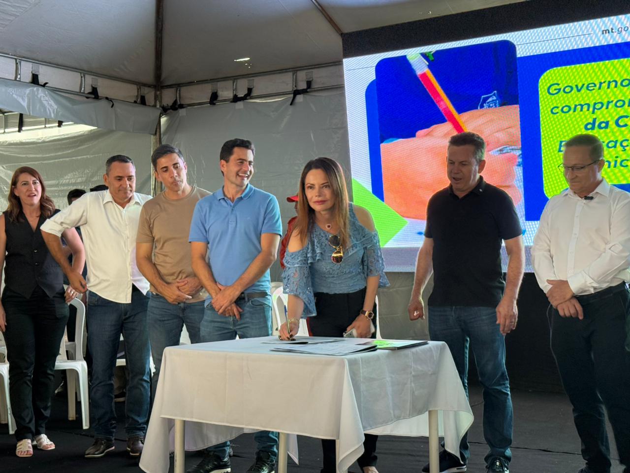 A comitiva estadual e federal contou ainda com a presença da Primeira-dama do Estado, Virginia Mendes, do Deputado Estadual Dilmar Dal Bosco, do Secretário-Chefe da Casa Civil e Deputado Federal Fábio Garcia, do Secretário de Estado de Educação (SEDUC), Alan Porto, do presidente do MT Par, Wener Kesley, e do Secretário de Estado de Segurança Pública, Coronel Roveri, além de demais autoridades estaduais.
