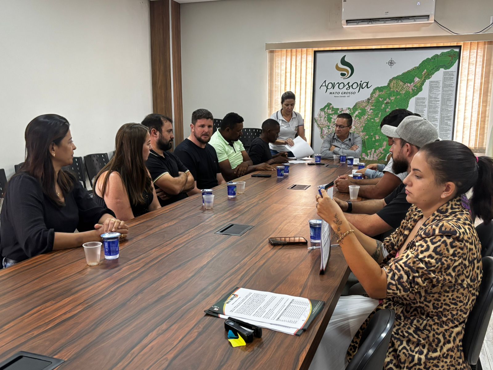 Durante o encontro, foram oficializados dois termos de fomento, que garantem o repasse de recursos financeiros para apoiar iniciativas que beneficiam diretamente estudantes e jovens atletas de Nova Ubiratã.