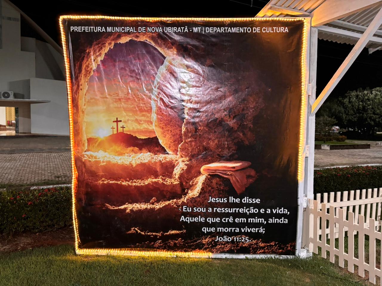 Na noite desta segunda-feira (16), a Prefeitura Municipal de Nova Ubiratã, por meio do Departamento de Cultura, realizou a inauguração da decoração de Páscoa na Praça da Fé.
