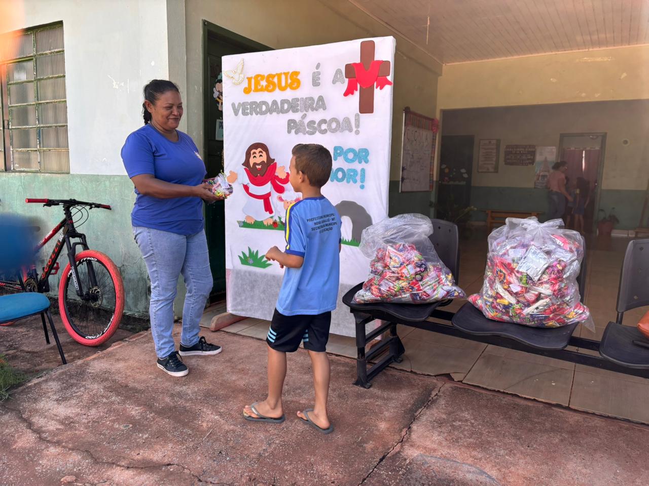 A iniciativa teve como objetivo proporcionar um momento de alegria e celebração às crianças e famílias atendidas, reforçando o espírito de união e solidariedade que marca o período pascal. Durante as entregas, a equipe da secretaria estiveram presentes nos distritos, promovendo um ambiente acolhedor e festivo.