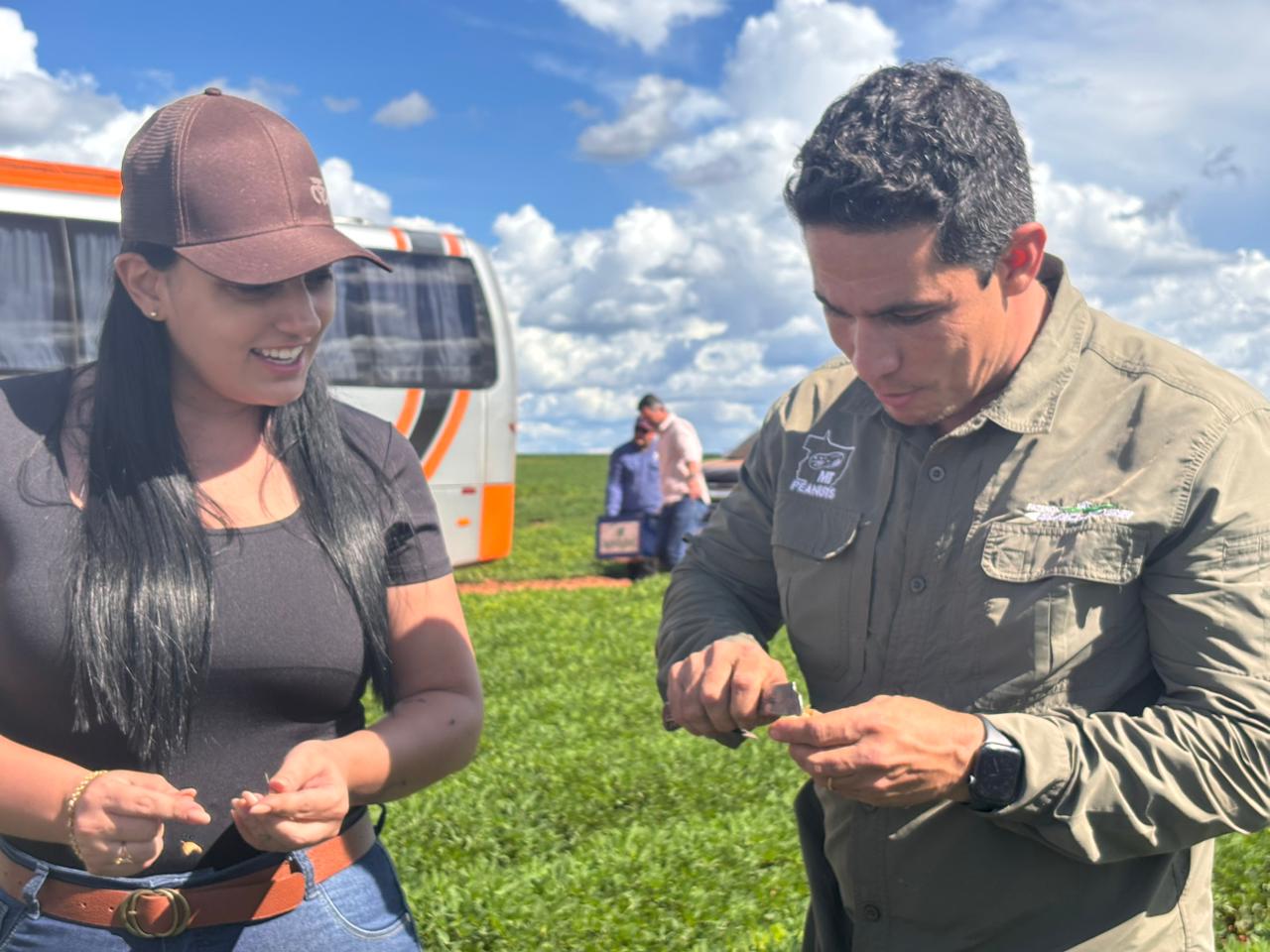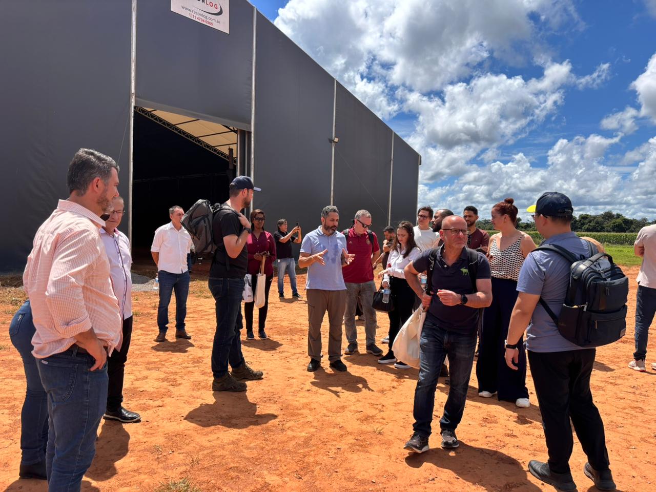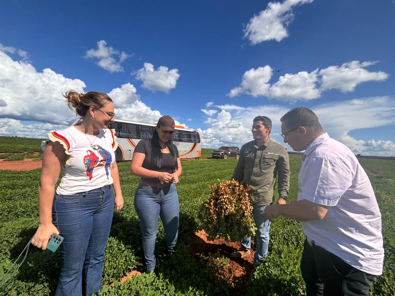 A programação teve início na unidade da empresa, com a apresentação do armazém, e seguiu até a área de plantio, onde os participantes puderam acompanhar de perto o desenvolvimento da cultura do amendoim.