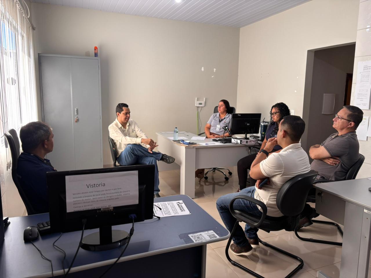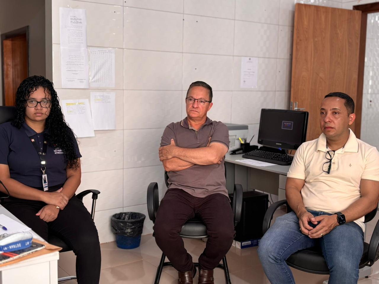 Durante a reunião, foram discutidos temas importantes para o fortalecimento da gestão do trânsito no município, com destaque para o planejamento da municipalização do trânsito, a possibilidade de terceirização do pátio de veículos e a viabilidade de um convênio com o Detran-MT, visando a padronização de uma agência local com estrutura adequada e mais ampla, garantindo melhoria no atendimento aos munícipes.