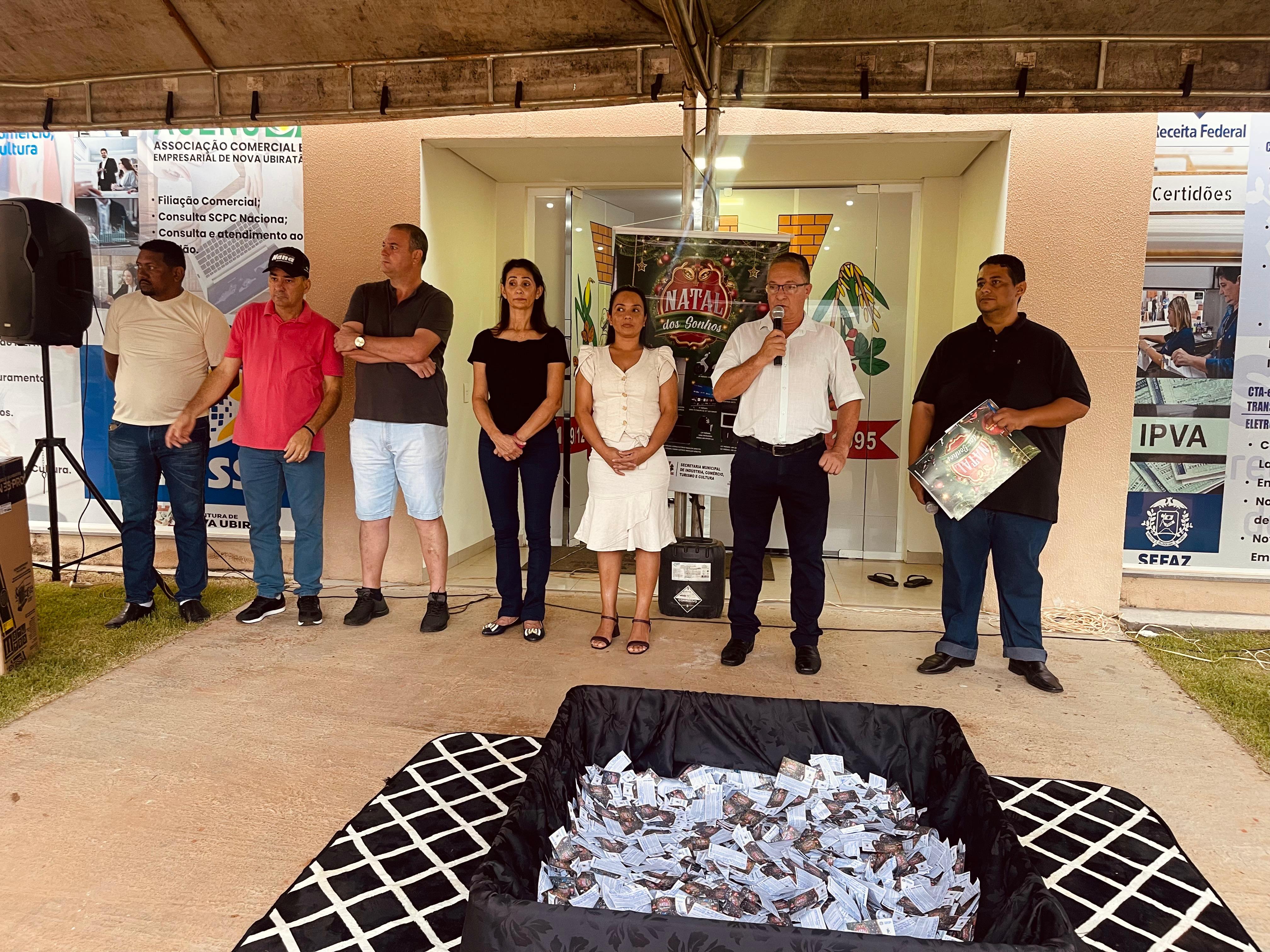 Na tarde deste sábado (15), a Associação Comercial e Empresarial de Nova Ubiratã, em parceria com a Prefeitura Municipal de Nova Ubiratã, através da Secretaria de Indústria, Comércio, Turismo e Cultura e Câmara de Vereadores, realizaram o grande sorteio das premiações da campanha Natal dos Sonhos.