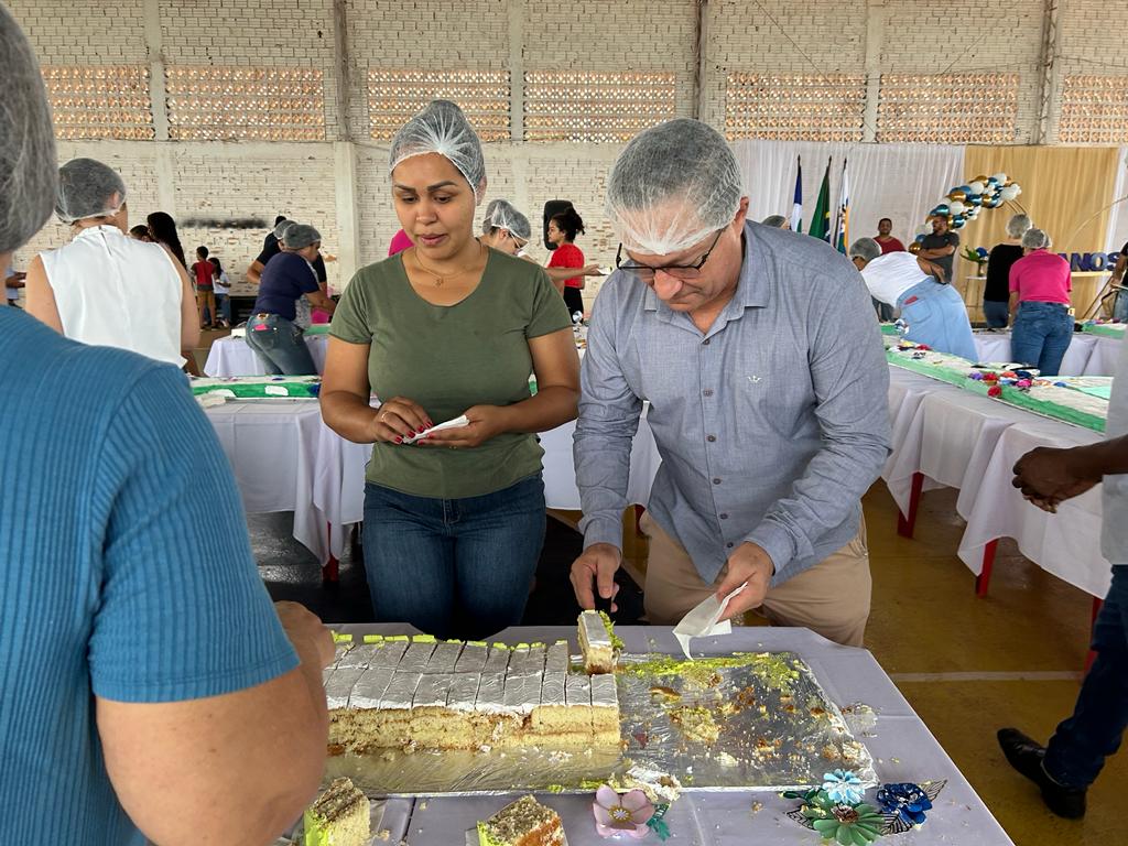 Durante a festividade foi realizado o tradicional corte do bolo de 28 metros