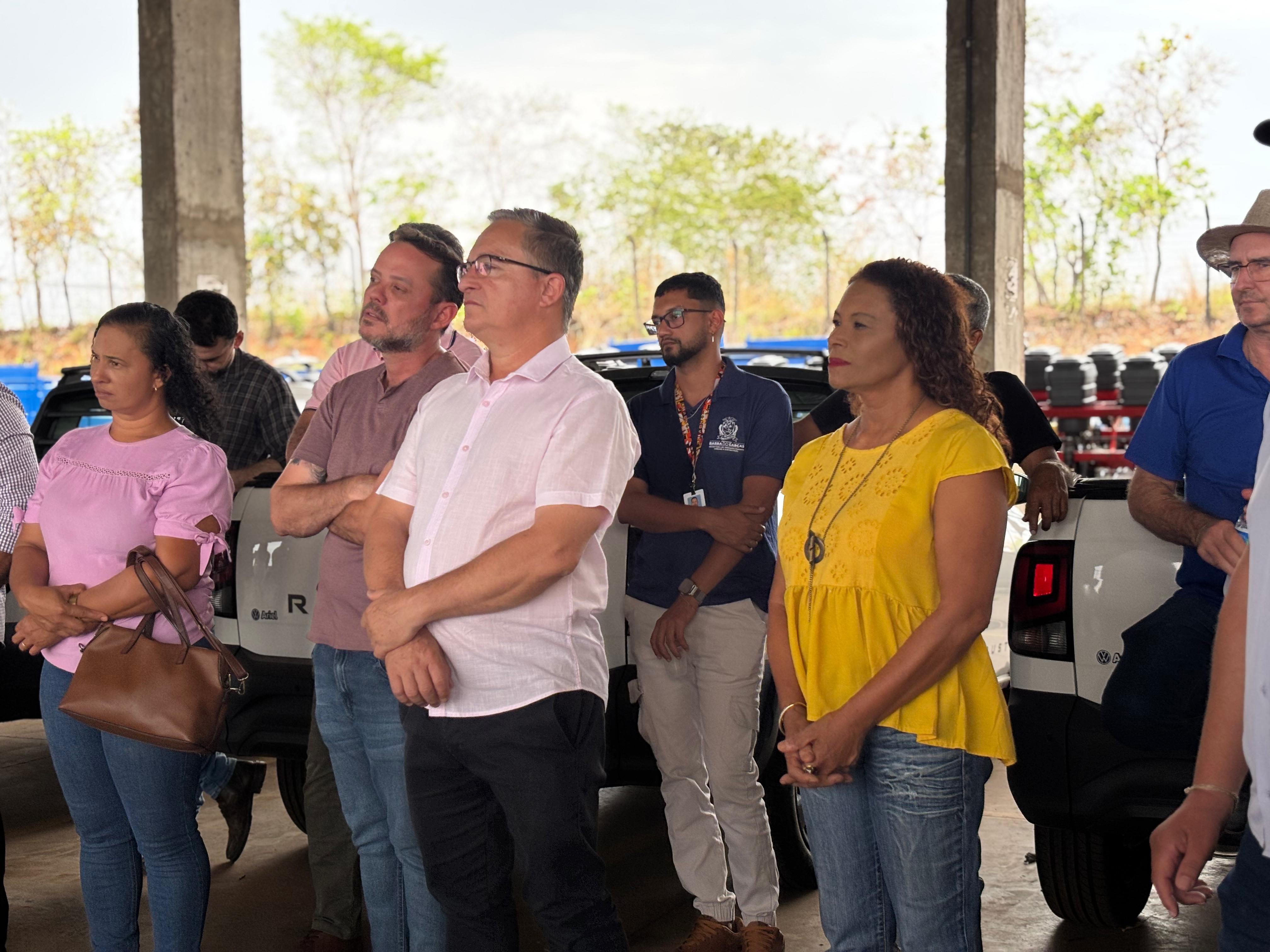 Na manhã desta sexta-feira (19), o Prefeito Municipal de Nova Ubiratã, Edegar José Bernardi, juntamente o Secretário Municipal de Agricultura, Assis Junior Guollo, o Secretário de Meio Ambiente, Josafá Oliveira, o Coordenador do Núcleo Municipal de Regularização Fundiária, Rogério Rabuske e a professora Verônica, participaram da solenidade de entrega de veículos e equipamentos para municípios do estado de Mato Grosso.