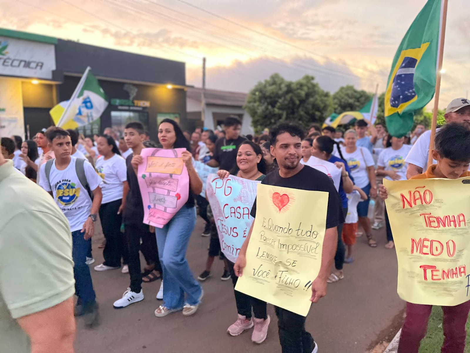 A caminhada teve início às 17h30, percorrendo a Avenida Getúlio Vargas e a Avenida Juscelino Kubitschek até a Praça da Fé. Durante o trajeto, pastores conduziram momentos de louvores, levando a palavra de Deus às ruas e reunindo centenas de fiéis em um clima de fé e comunhão.