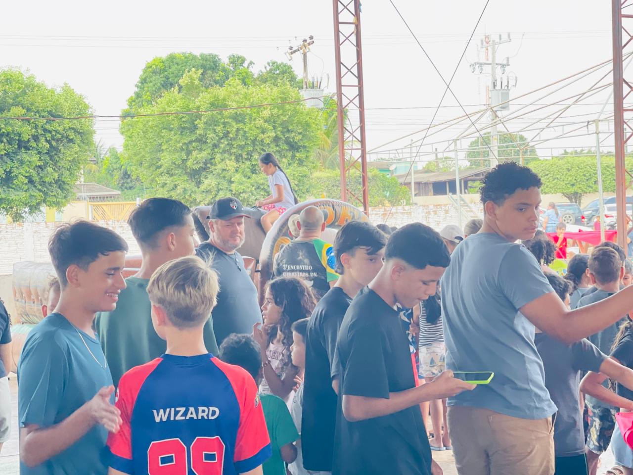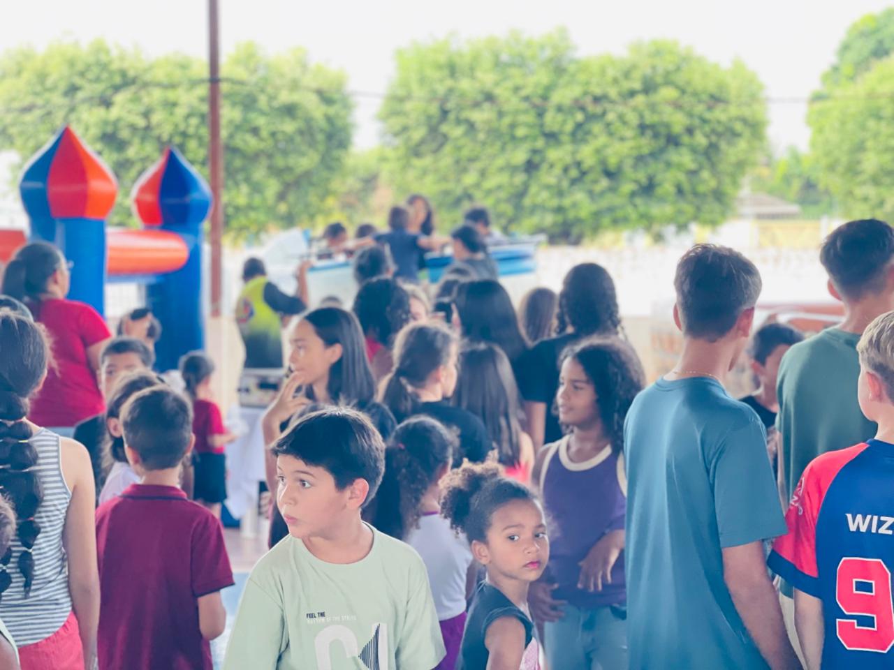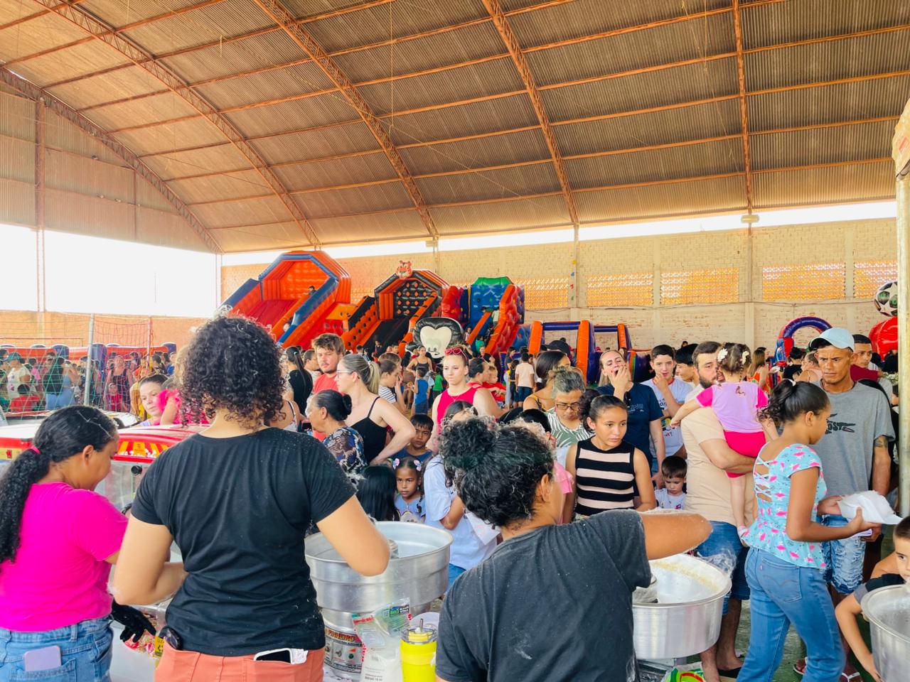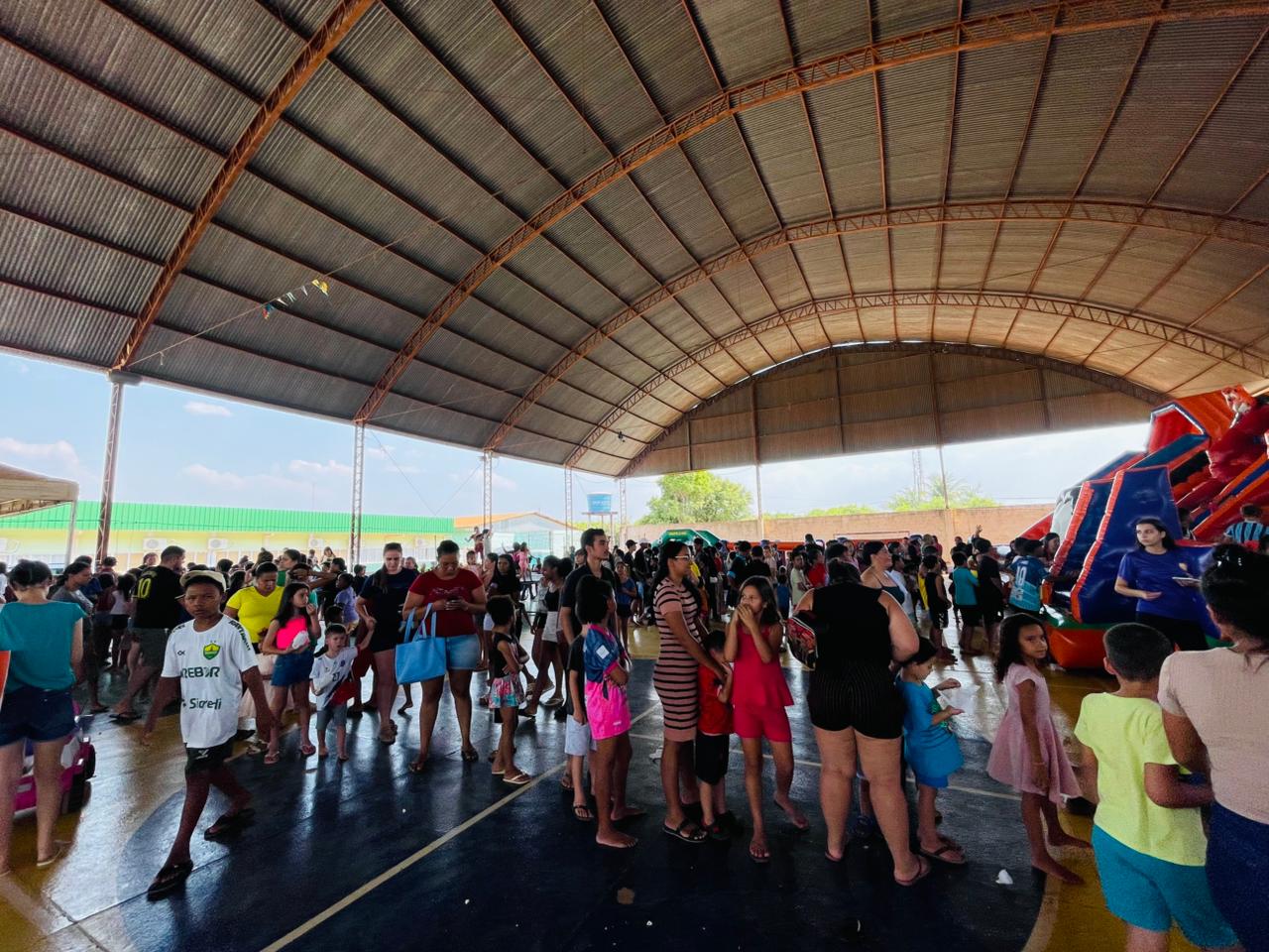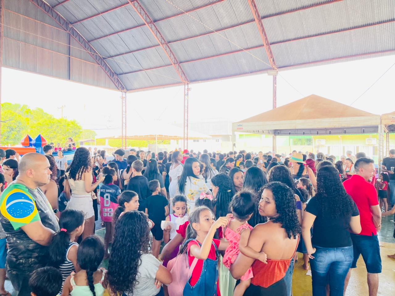 A festividade aconteceu na quadra da Escola Municipal Tancredo Neves reunindo várias crianças, pais e familiares