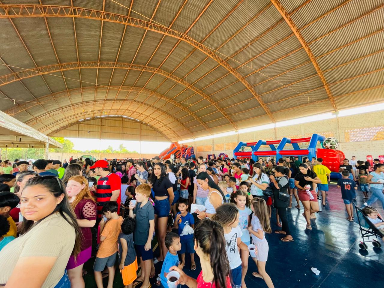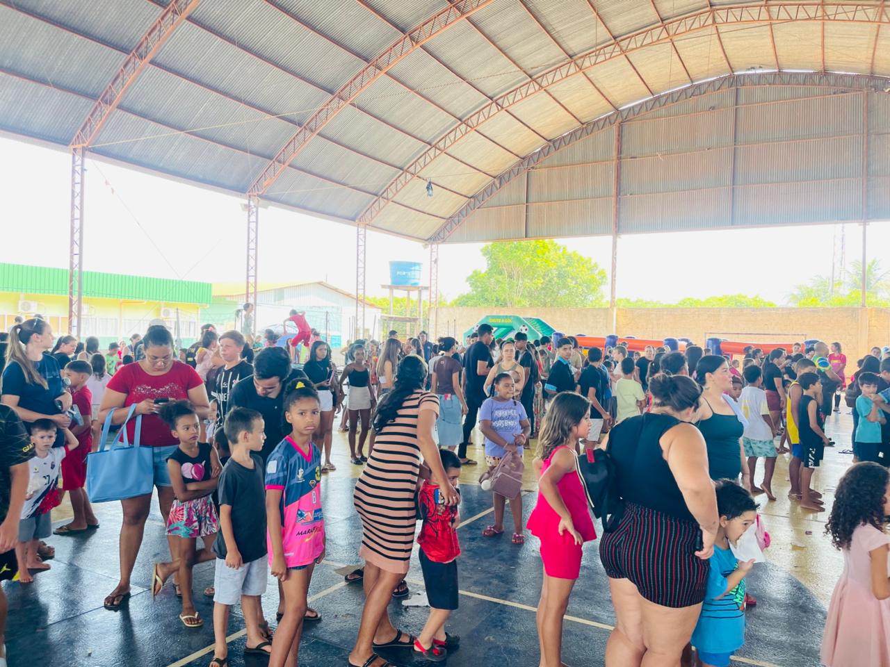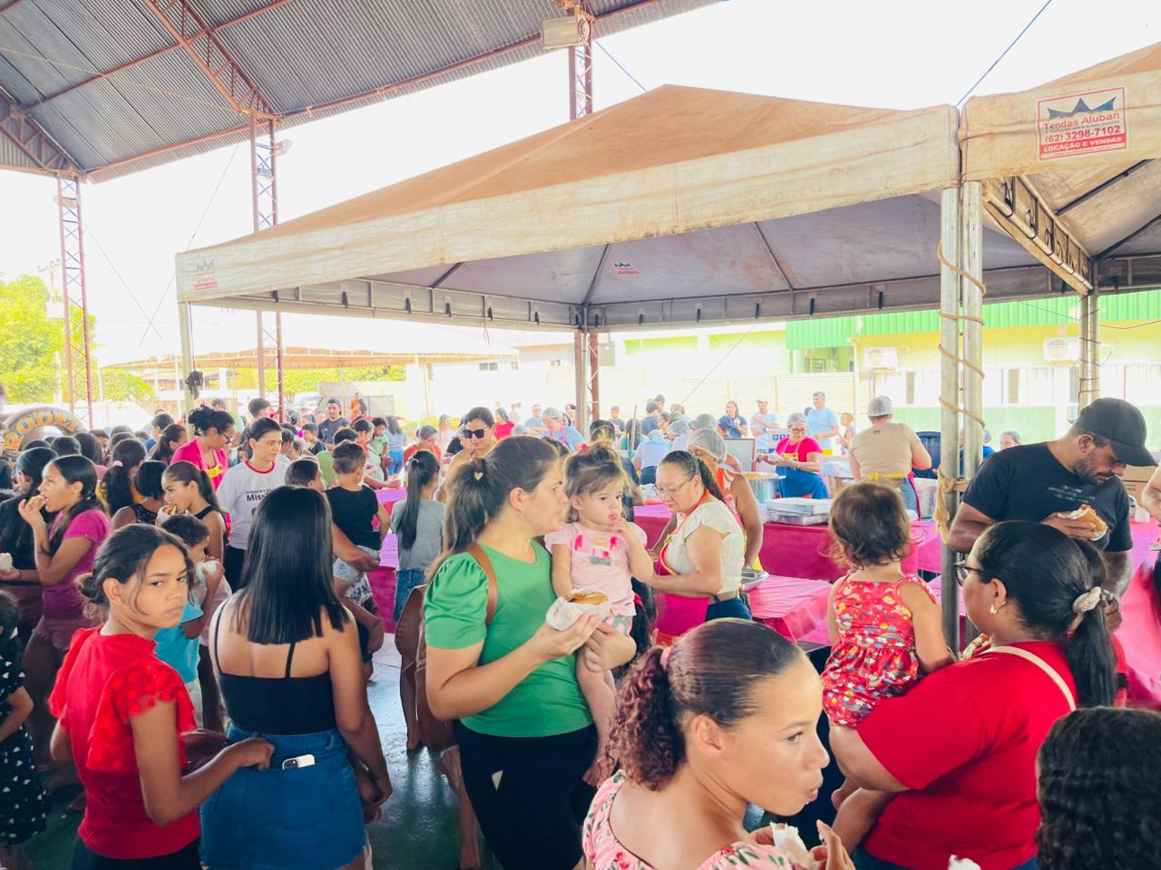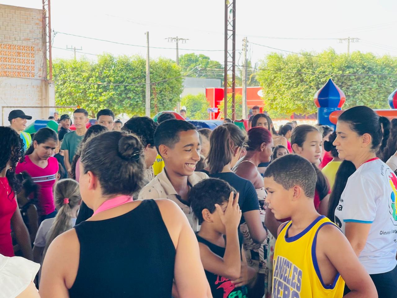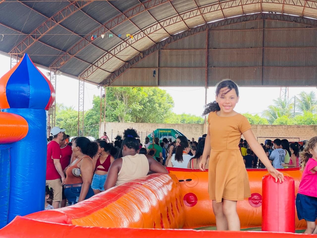A festividade aconteceu na quadra da Escola Municipal Tancredo Neves reunindo várias crianças, pais e familiares