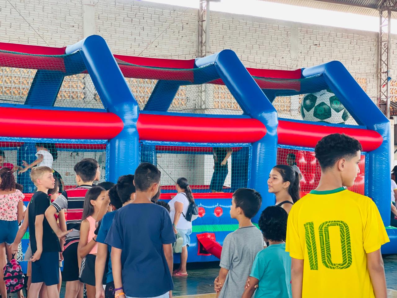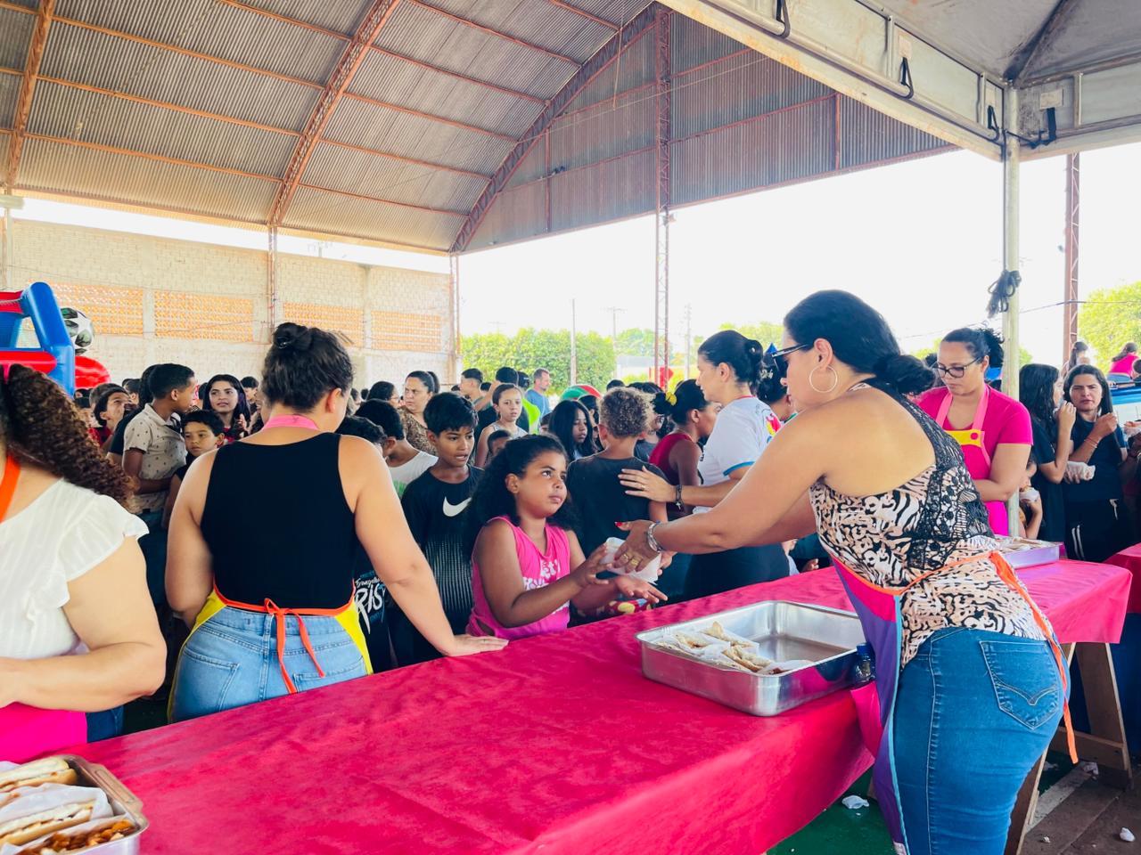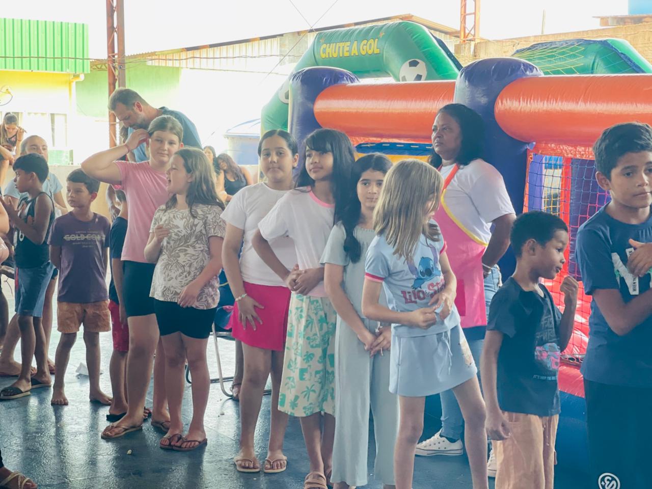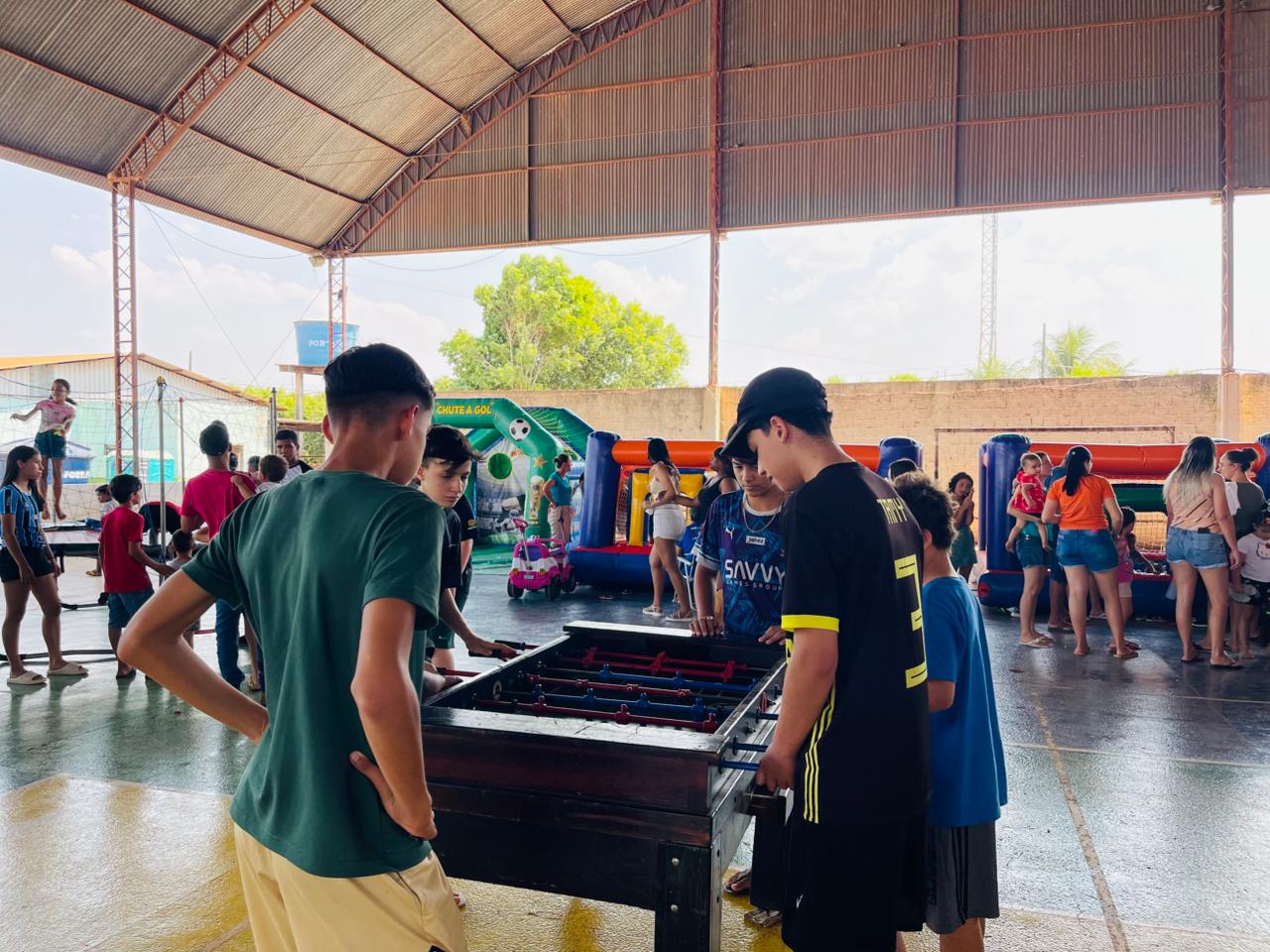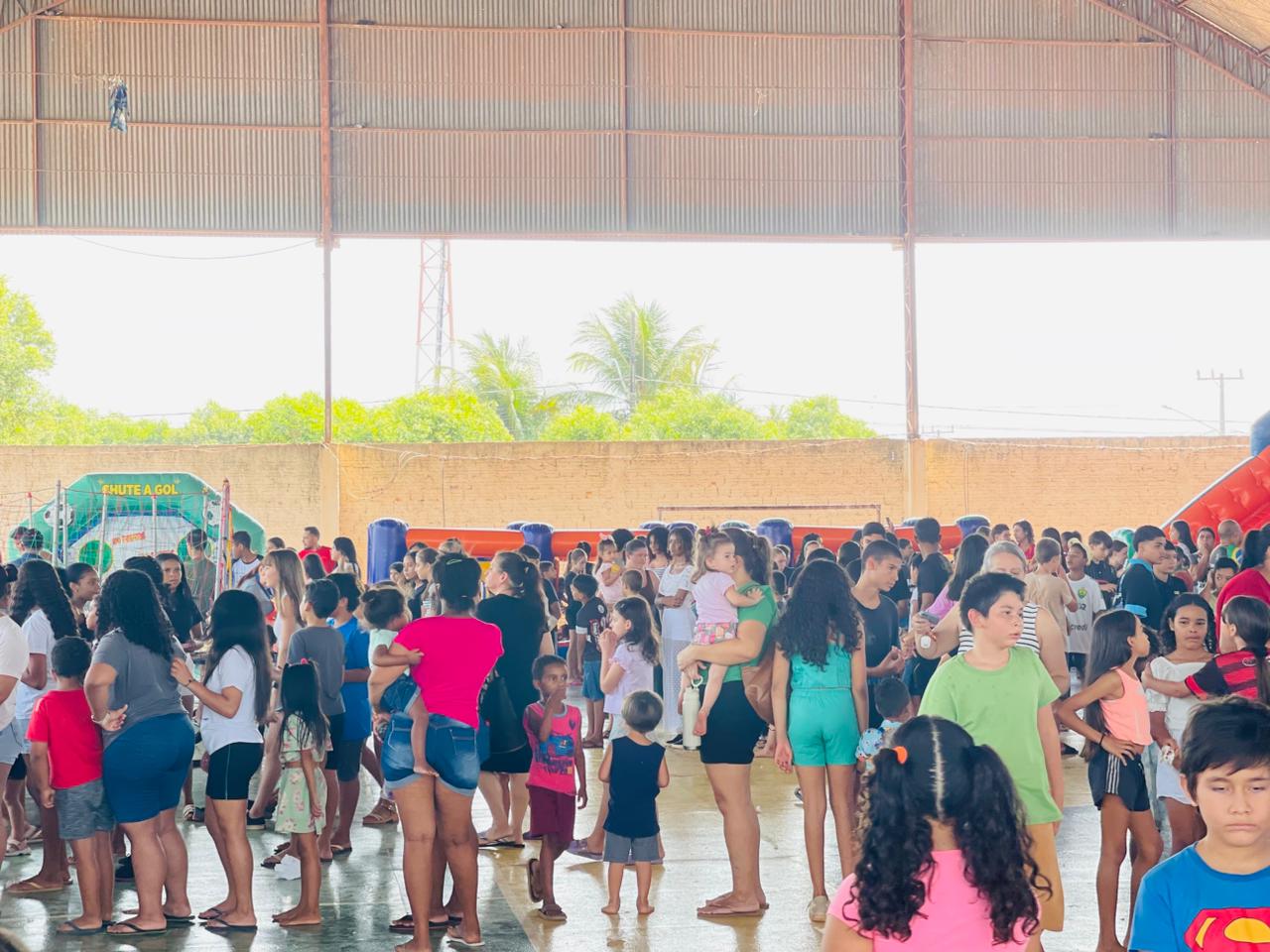 A festividade aconteceu na quadra da Escola Municipal Tancredo Neves reunindo várias crianças, pais e familiares