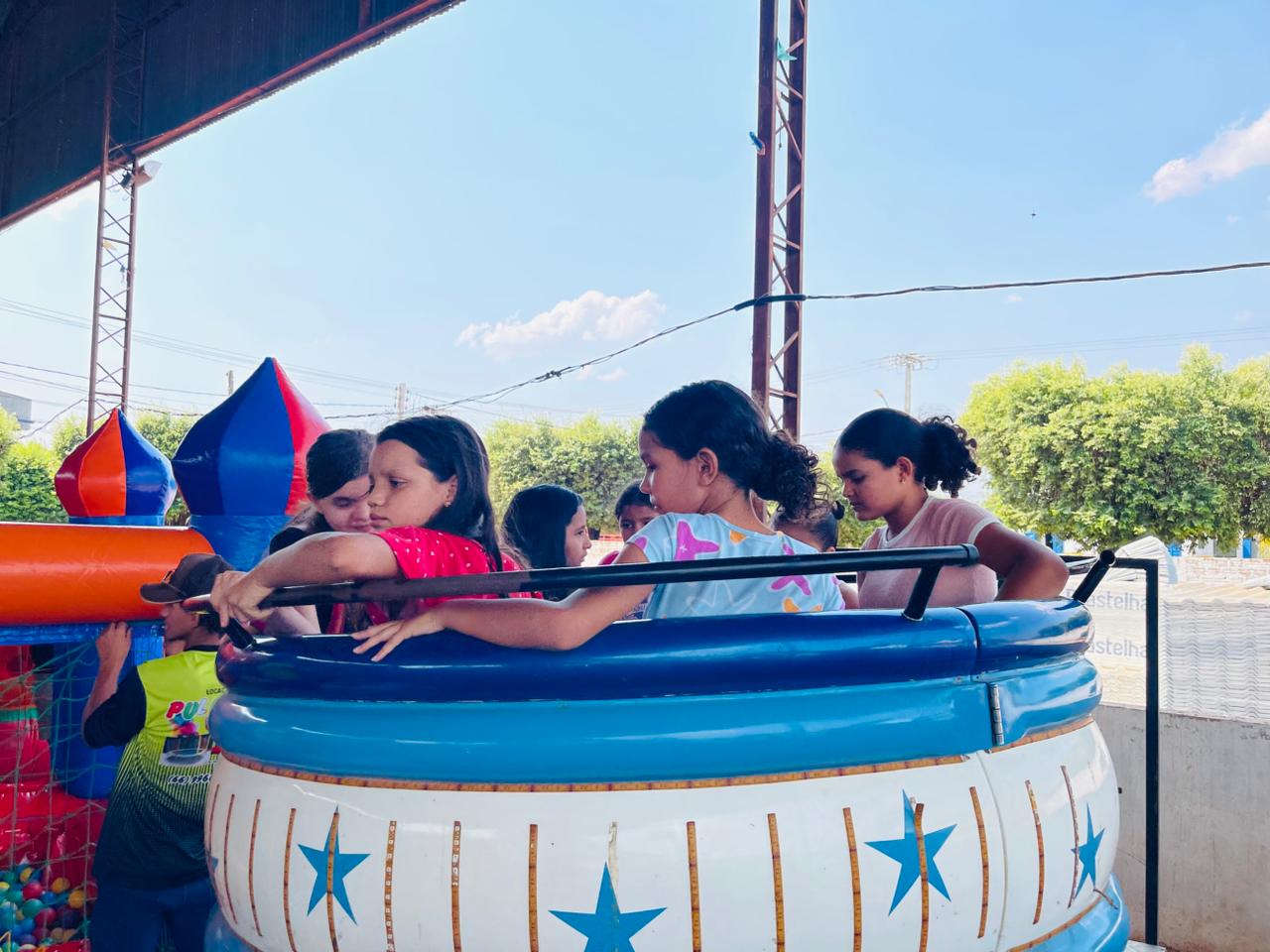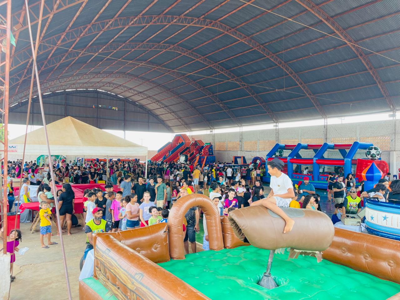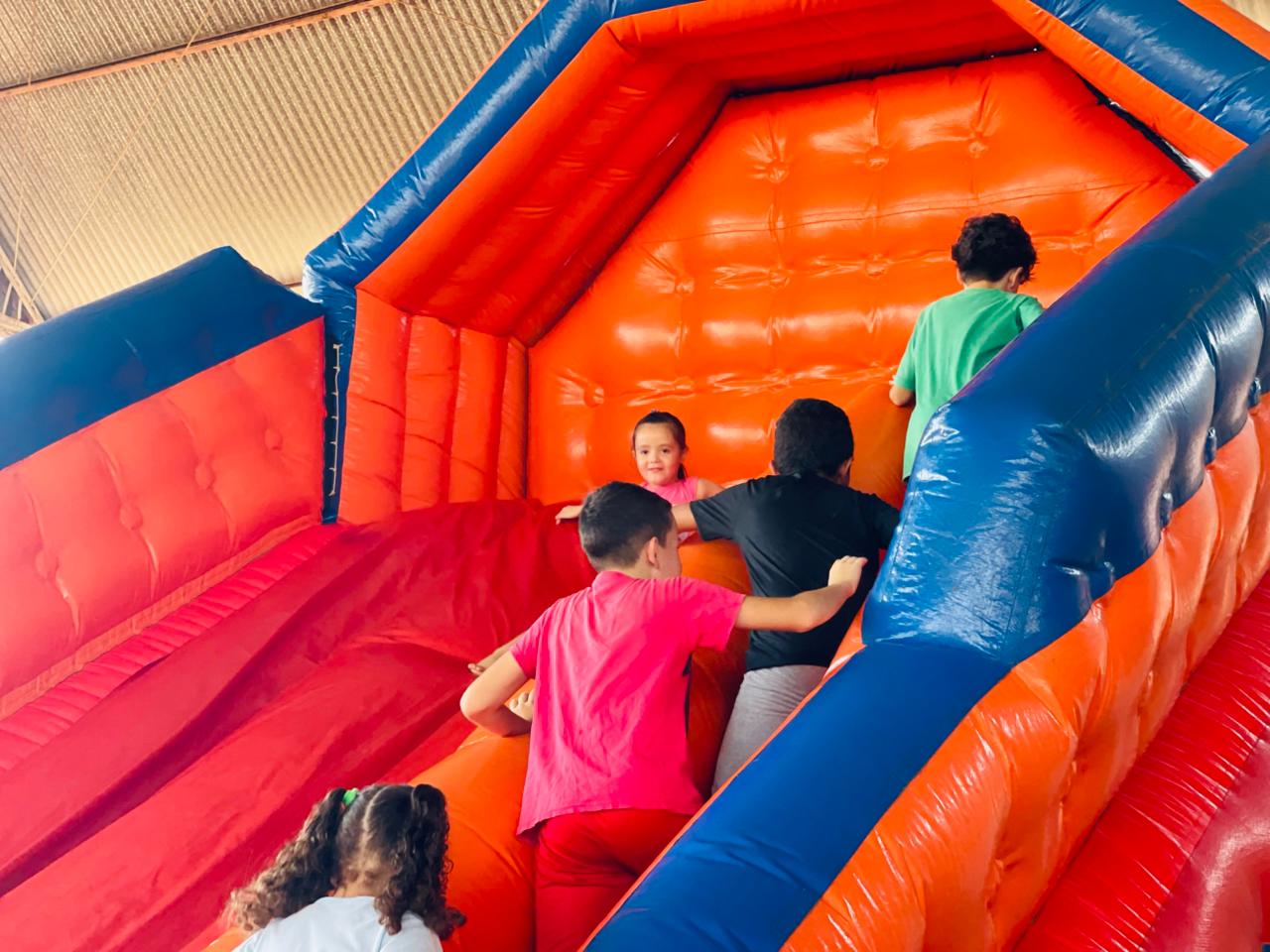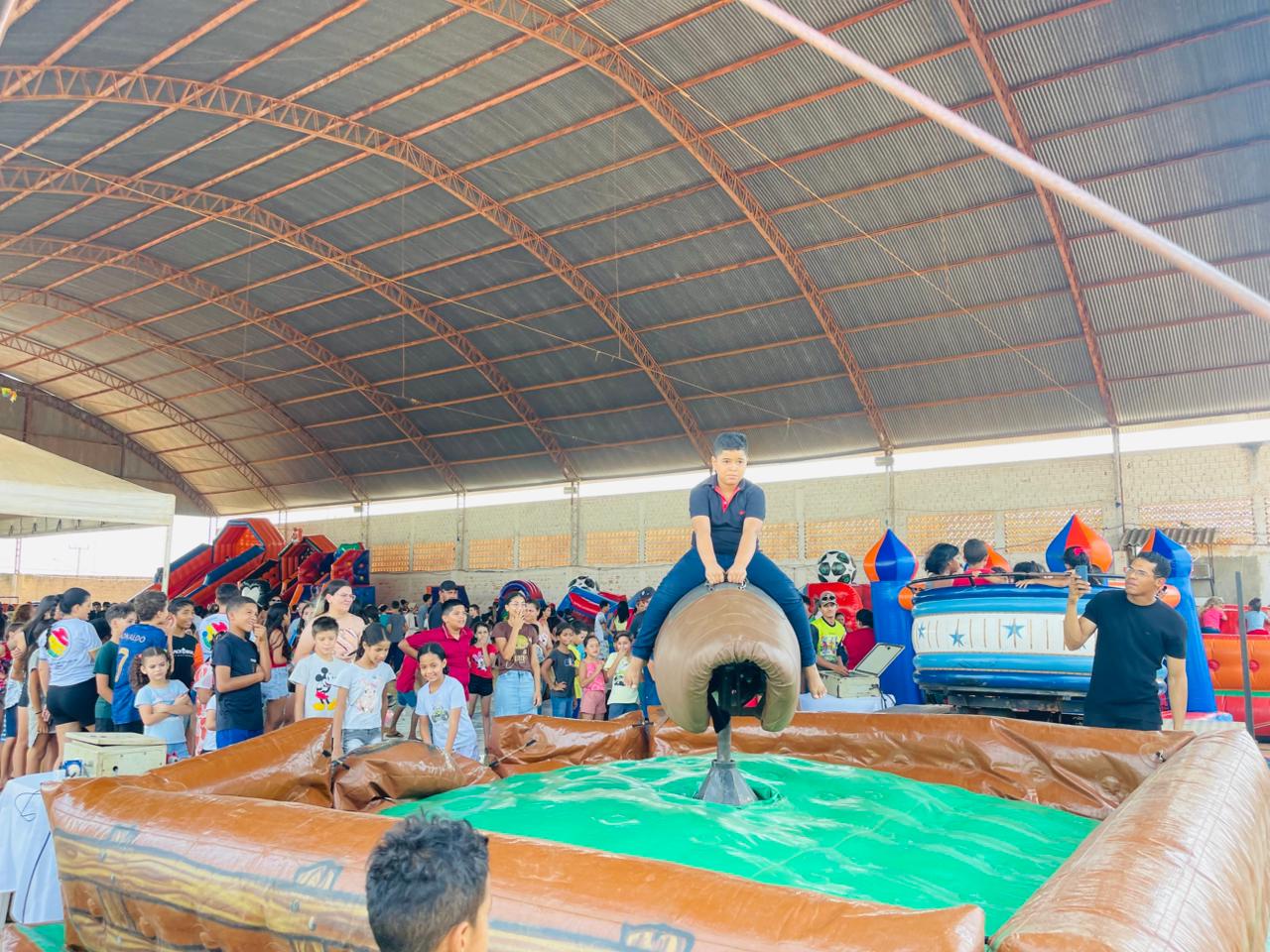 A festividade contou com vários brinquedos infláveis, algodão-doce, pipoca, cachorro-quente, refrigerante e distribuição de doces, garantindo momentos de alegria e confraternização entre as crianças presentes. O evento foi um verdadeiro sucesso, proporcionando uma tarde de muita animação e sorrisos.