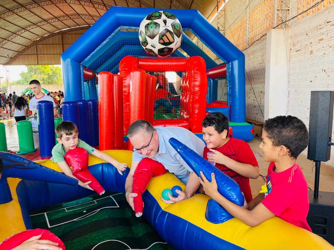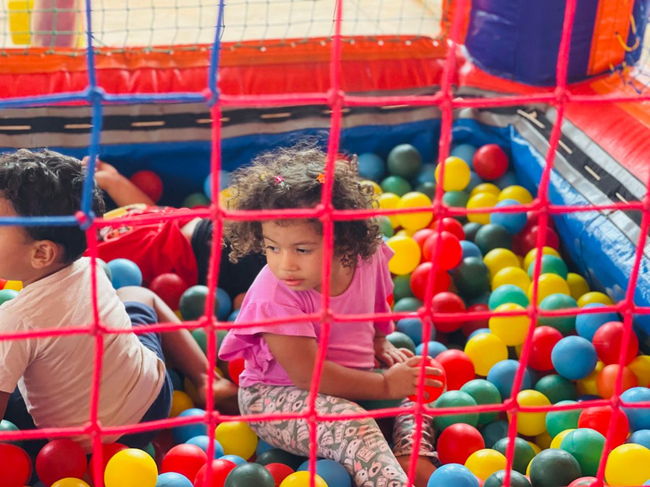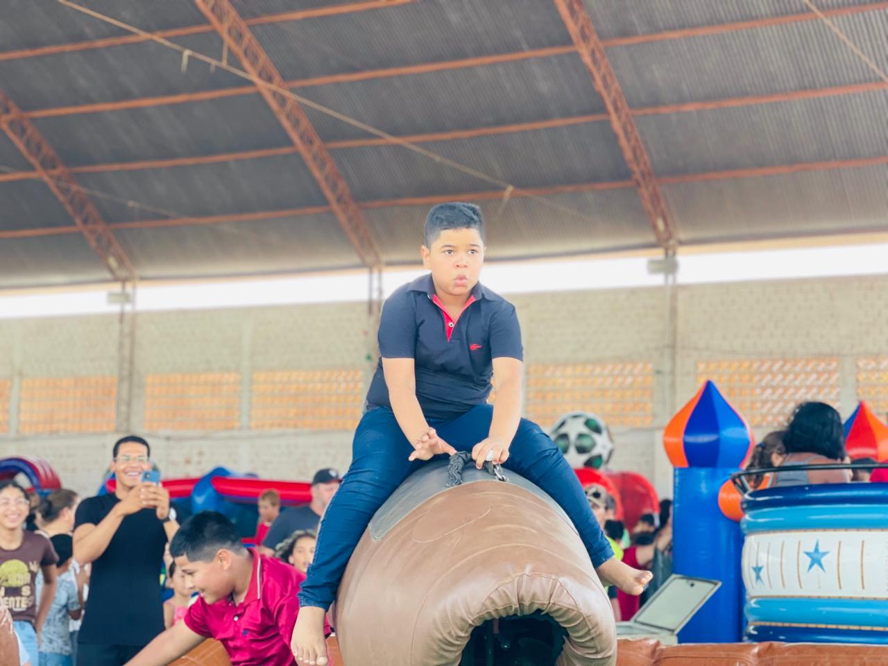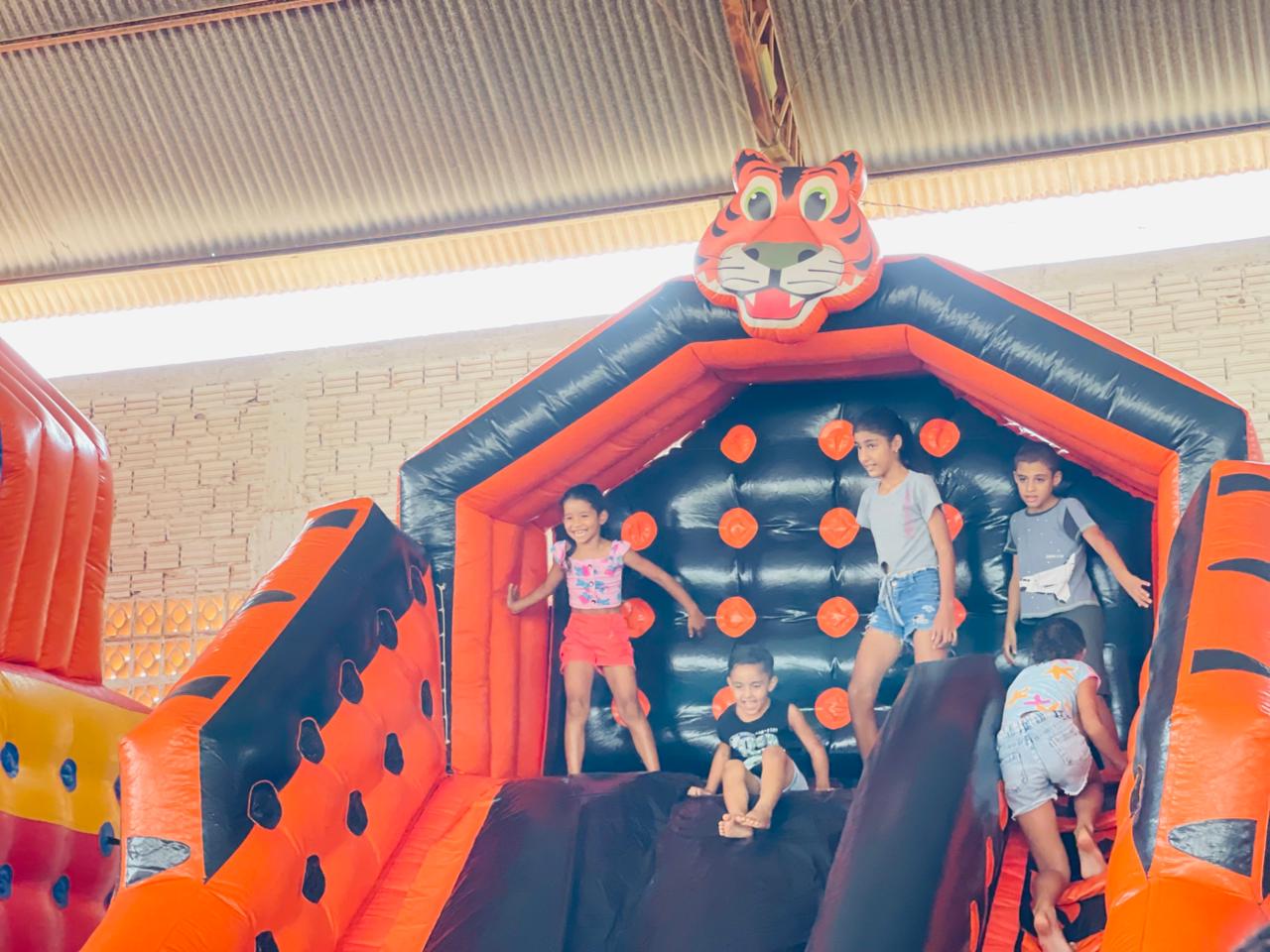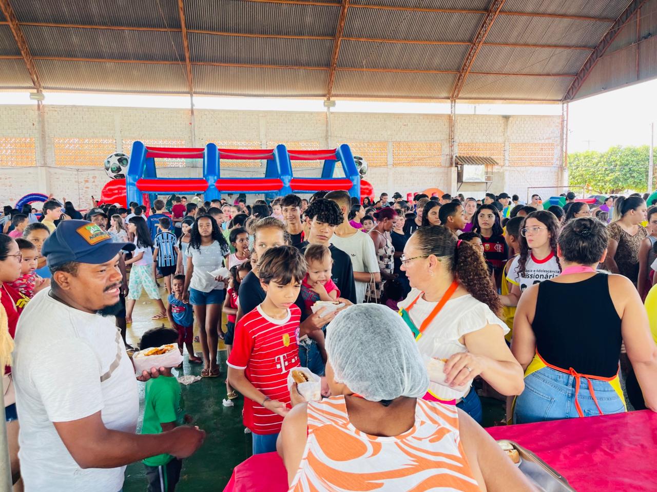 A festividade contou com vários brinquedos infláveis, algodão-doce, pipoca, cachorro-quente, refrigerante e distribuição de doces, garantindo momentos de alegria e confraternização entre as crianças presentes. O evento foi um verdadeiro sucesso, proporcionando uma tarde de muita animação e sorrisos.