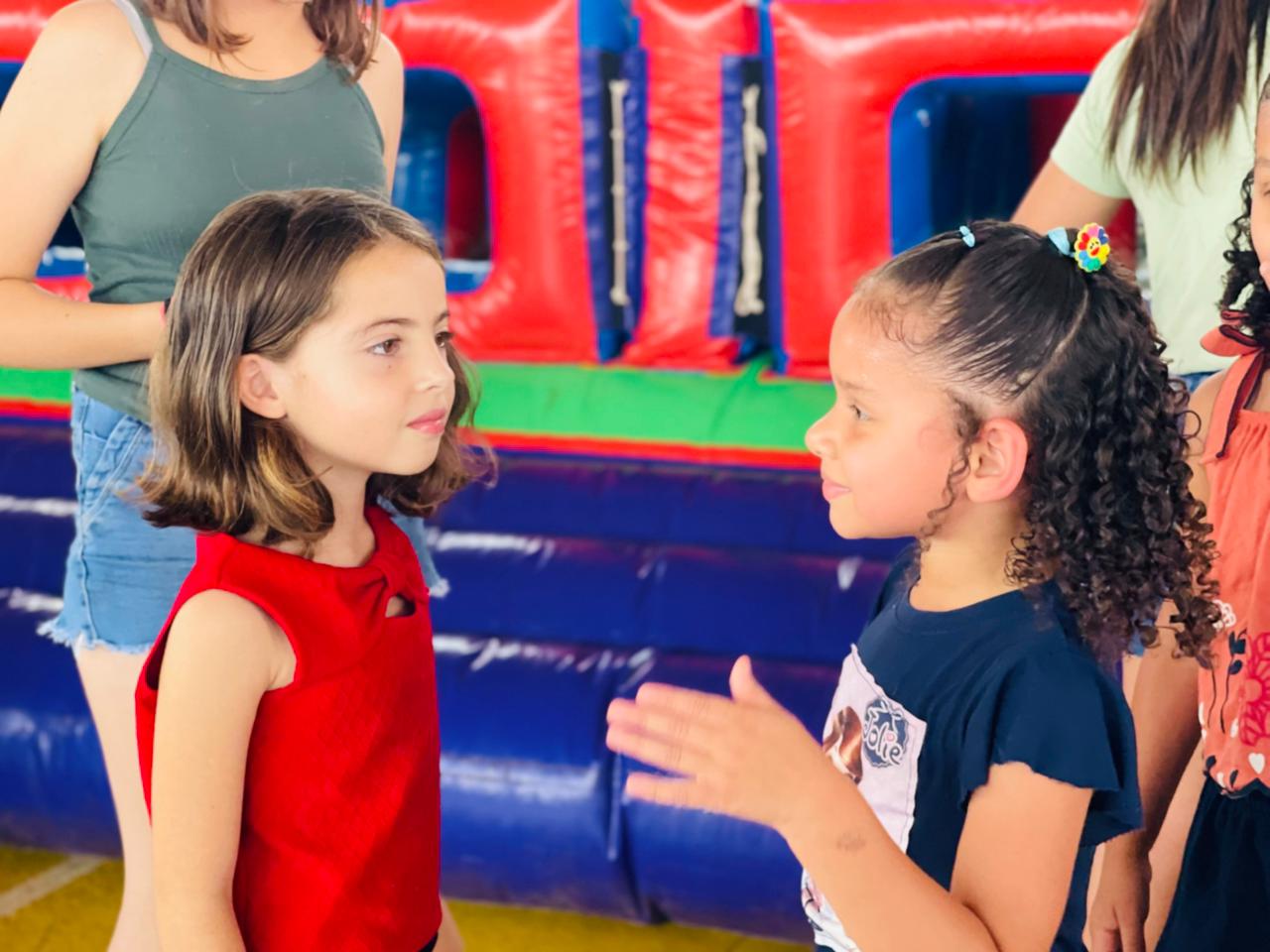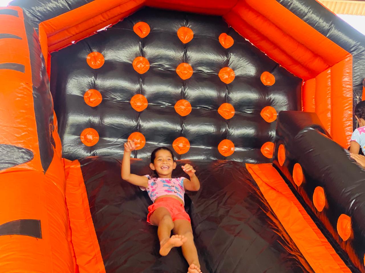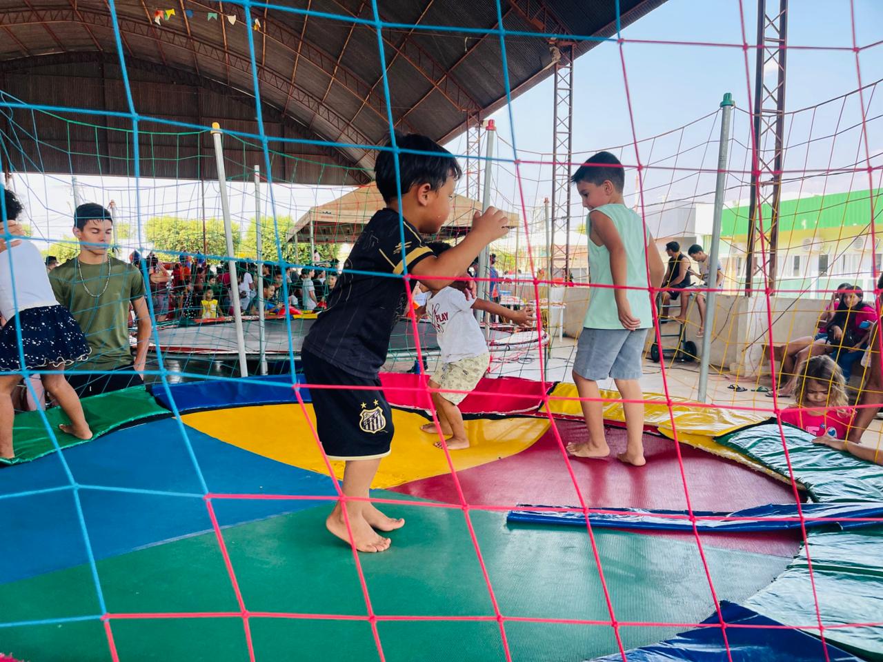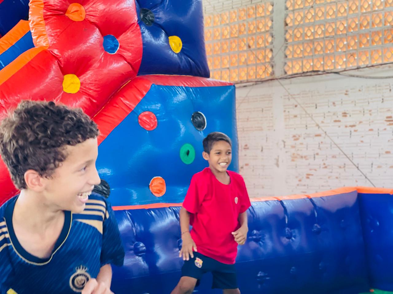 A festividade contou com vários brinquedos infláveis, algodão-doce, pipoca, cachorro-quente, refrigerante e distribuição de doces, garantindo momentos de alegria e confraternização entre as crianças presentes. O evento foi um verdadeiro sucesso, proporcionando uma tarde de muita animação e sorrisos.