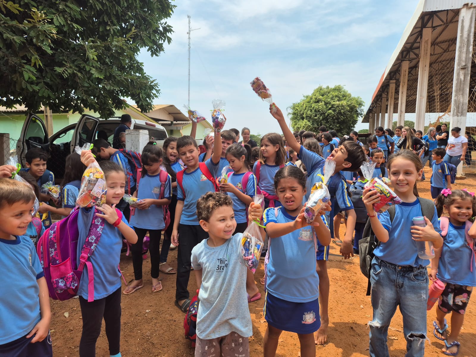 Além da celebração na sede, a Secretaria de Assistência Social realizou, ao longo da semana, a entrega de pacotes de doces nos distritos de Santo Antônio do Rio Bonito, Novo Mato Grosso, Santa Terezinha do Rio Ferro, ST Madeiras, Entre Rios, Comunidade de Sinopão e Assentamento Cedro Rosa, levando alegria e carinho a todas as crianças do município.