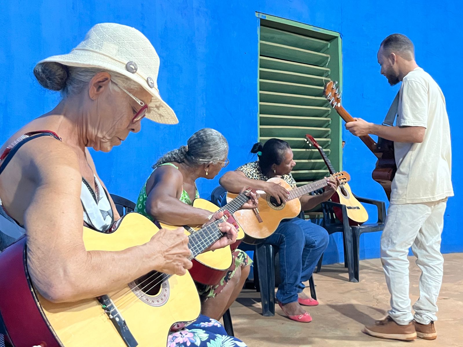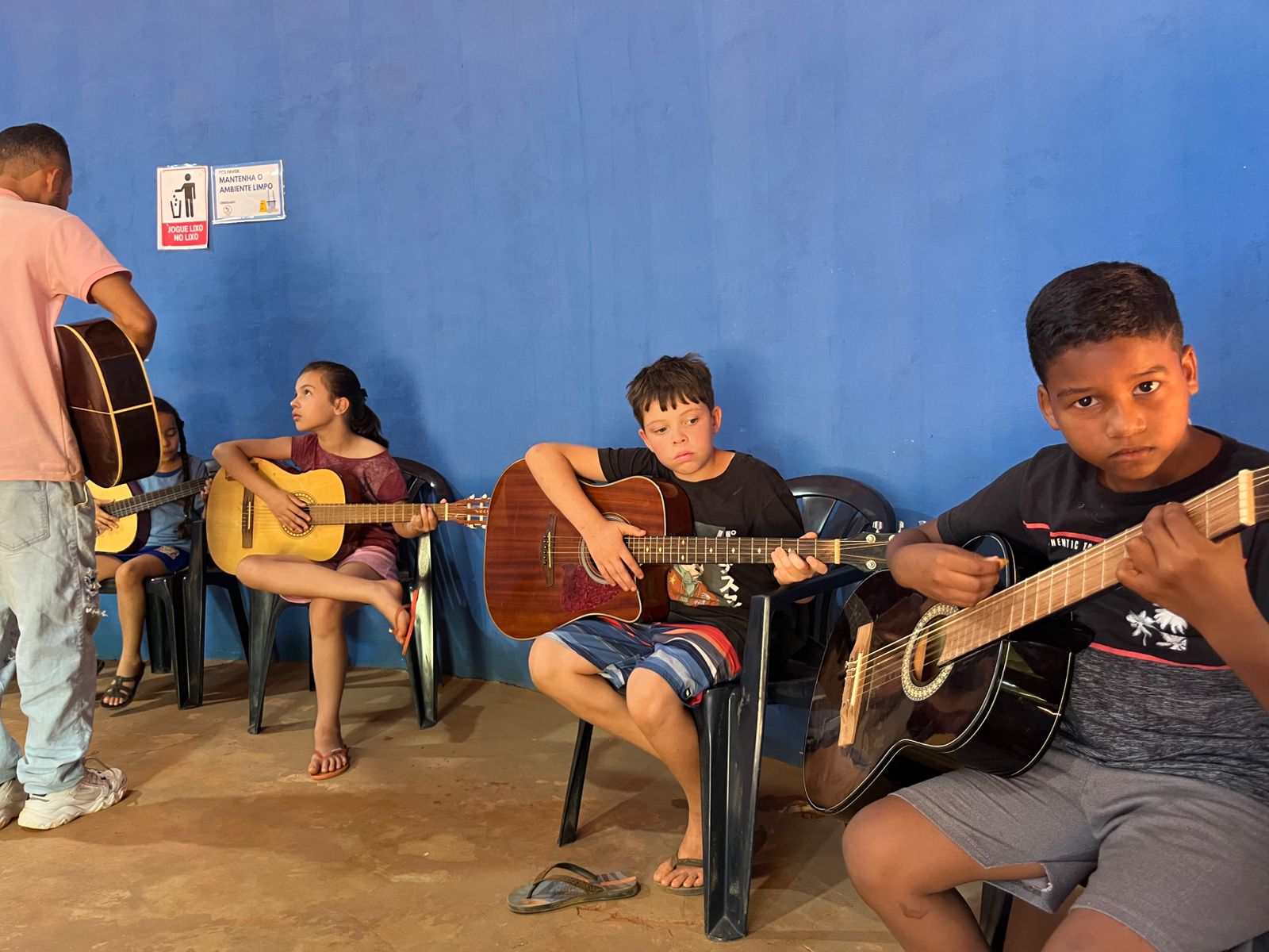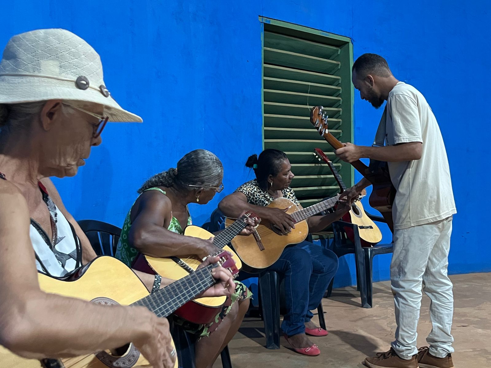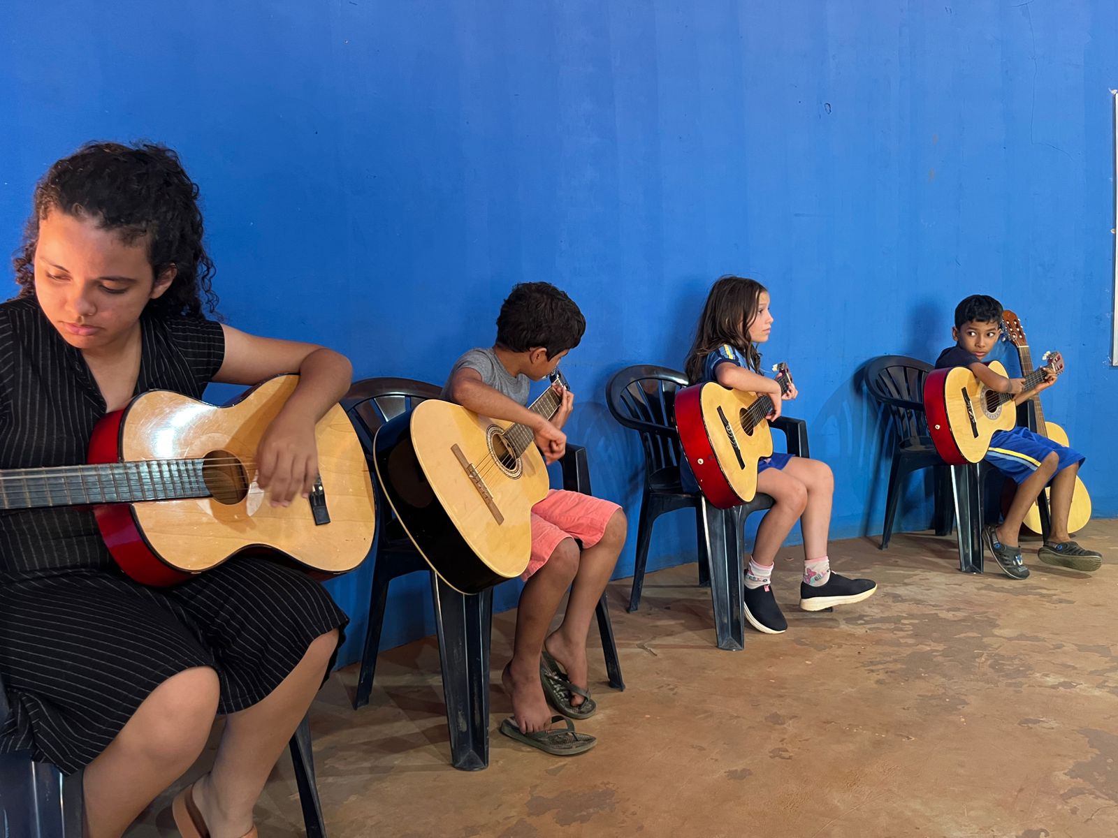 As aulas de violão, são administradas pelo professor Marcos Kauan Barbosa, que atende crianças, adolescentes e idosos, com cerca de 30 participantes, e são realizadas três vezes por semana. O projeto também oferece aulas de fanfarra nos distritos de Entre Rios e Santa Terezinha do Rio Ferro, ampliando o acesso à música e fortalecendo a participação cultural nas comunidades.