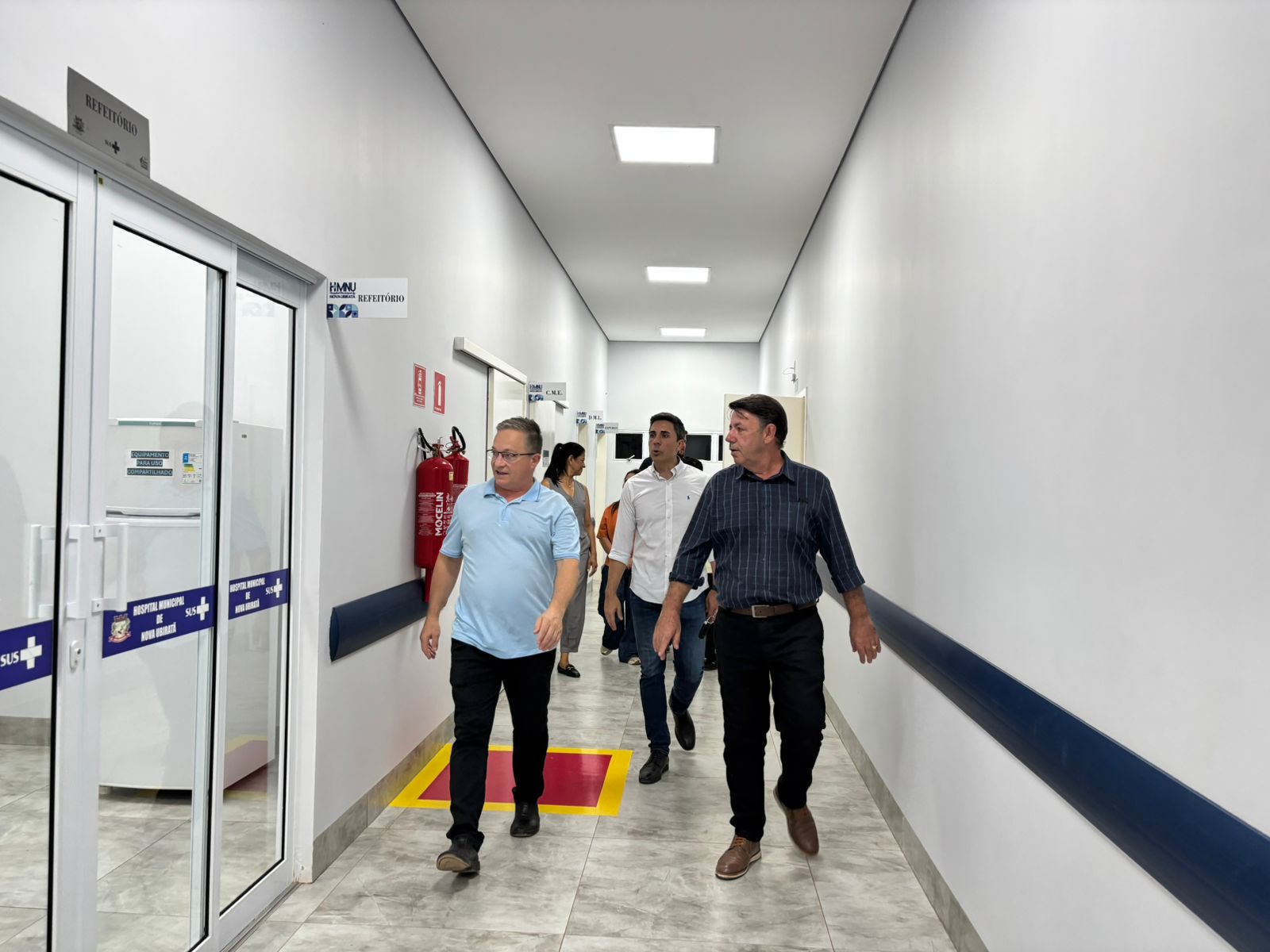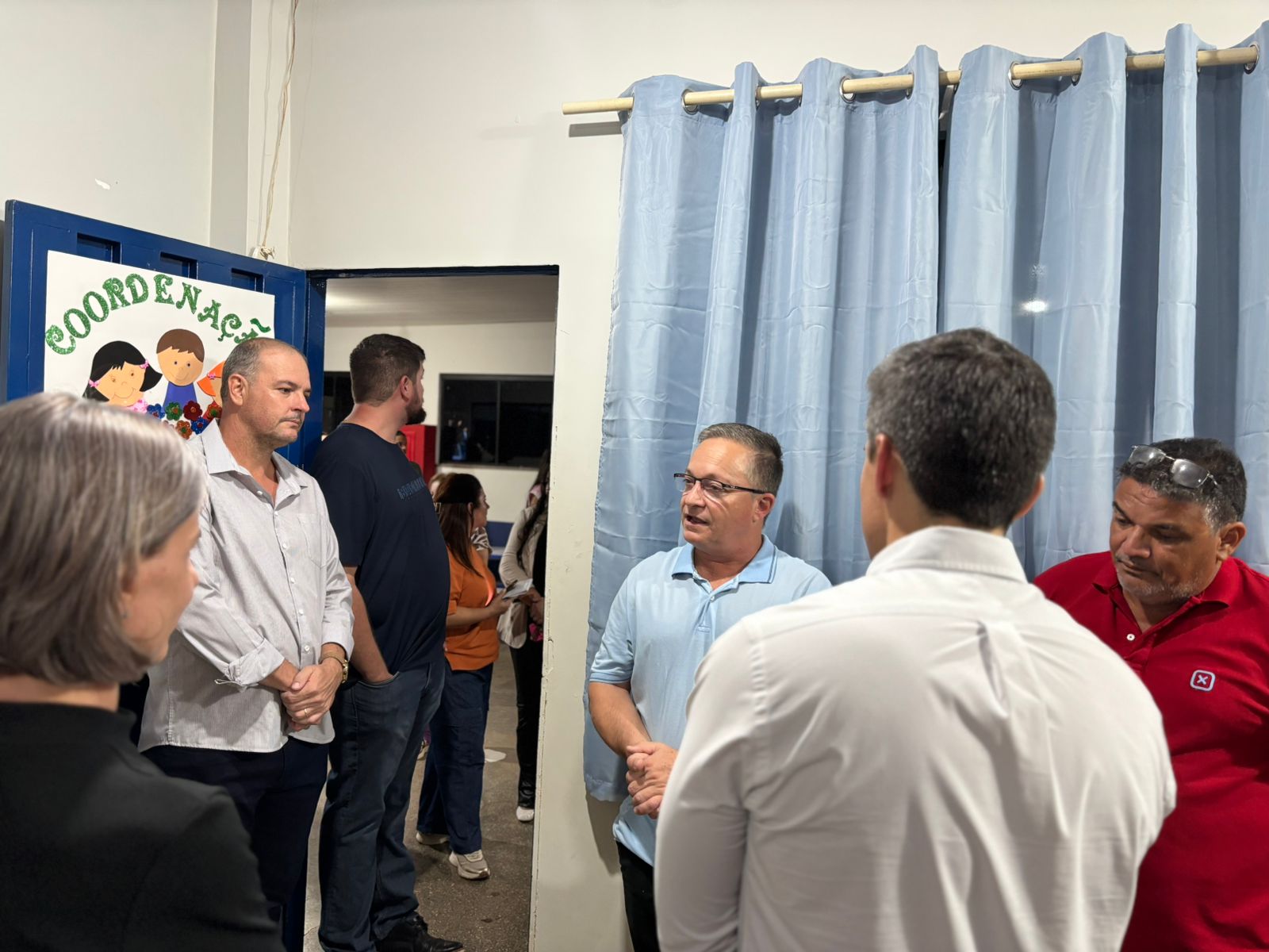 Durante a programação, as autoridades realizaram uma visita técnica à Escola Estadual 19 de Dezembro, onde foram apresentadas as principais demandas da comunidade escolar. Em seguida, a comitiva acompanhou o andamento das obras na Escola Estadual Sílvio Antônio Fávero e visitaram também o Hospital Municipal, conhecendo de perto os investimentos e melhorias em andamento.