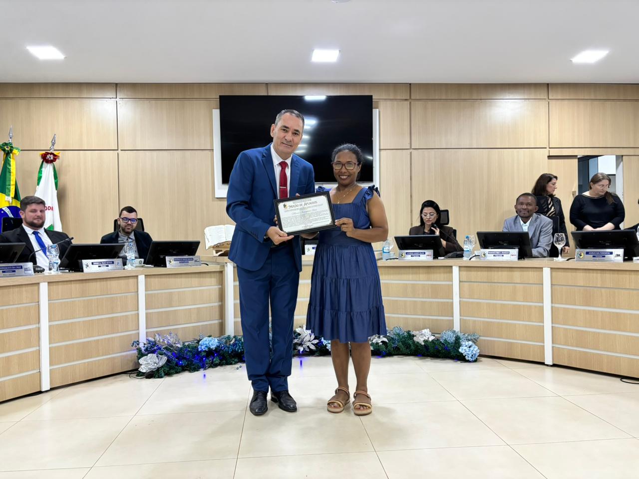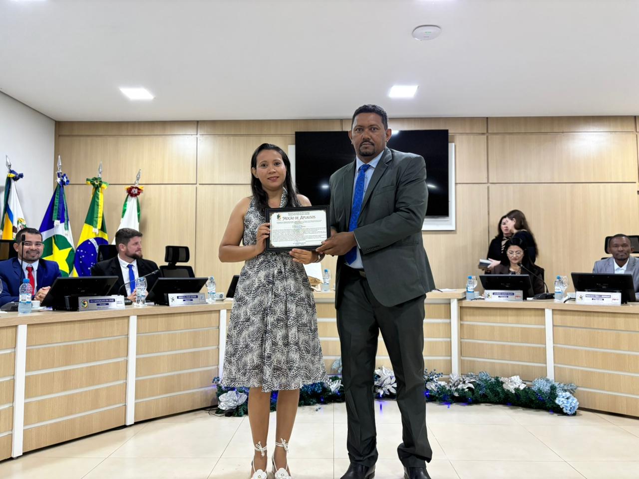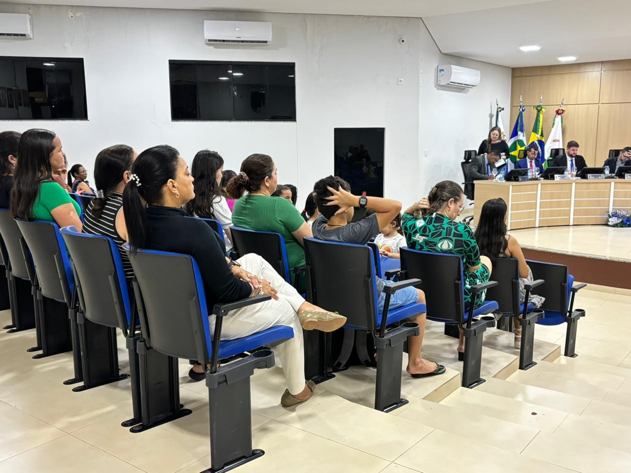 Durante a sessão, foi entregue uma Moção de Aplausos às merendeiras da sede, dos distritos e das comunidades de Nova Ubiratã, em reconhecimento aos relevantes serviços prestados ao município. Na ocasião, a nutricionista Amanda Cristina Lima de Oliveira também foi homenageada, recebendo reconhecimento pelo trabalho técnico e pelo apoio indispensável às equipes de merenda.