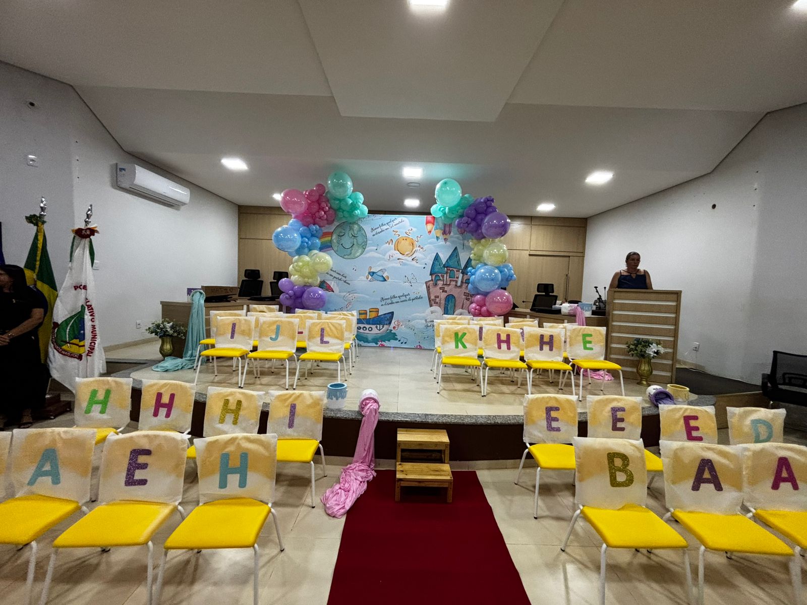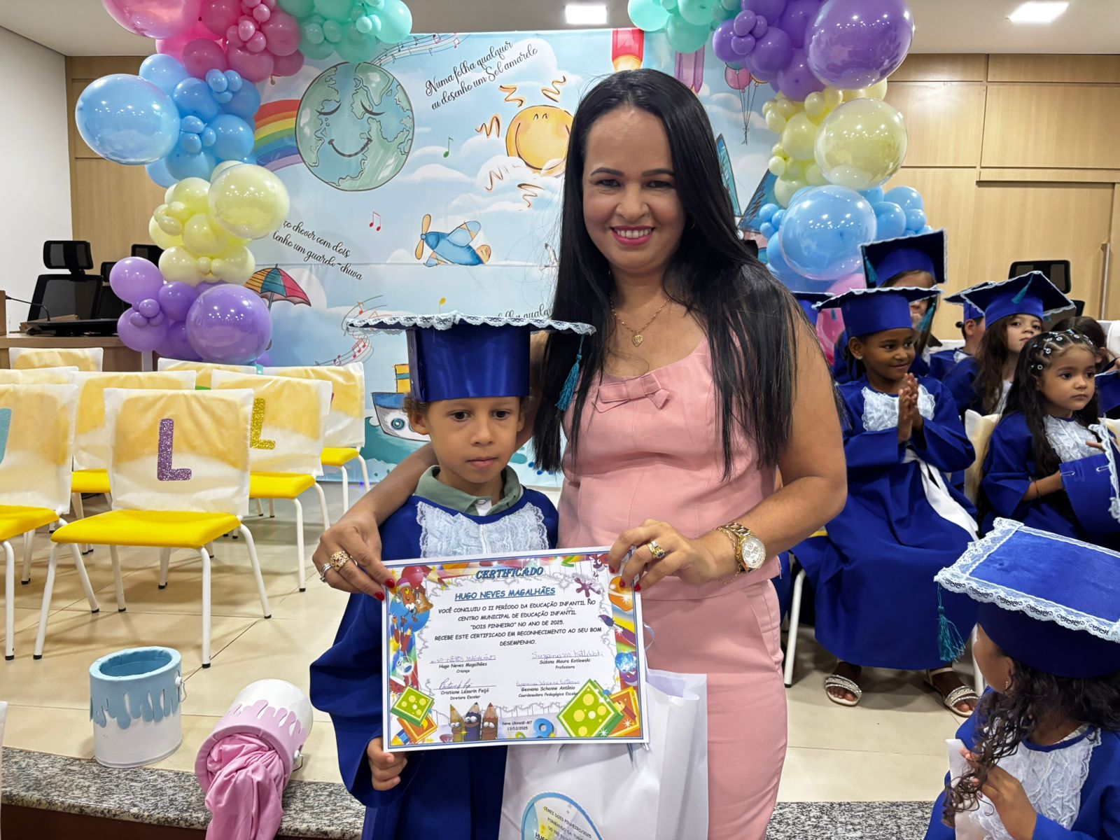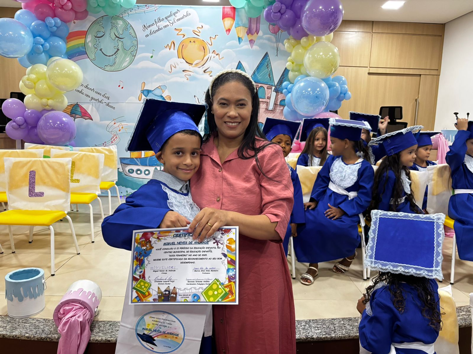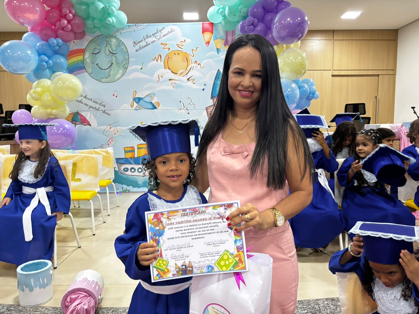 A primeira cerimônia aconteceu às 17h, e representaram a Secretaria de Educação a senhora Dilma Aparecida das Neves e a coordenadora de Educação Infantil, Brenda Fernandes. A solenidade contou com a dedicação das professoras responsáveis pelas turmas, que acompanharam o desenvolvimento dos alunos ao longo do ano letivo, além do apoio das auxiliares de sala, que contribuíram diretamente para o aprendizado e o cuidado diário das crianças. A formatura simbolizou o encerramento de um ciclo fundamental na vida escolar dos formandos.