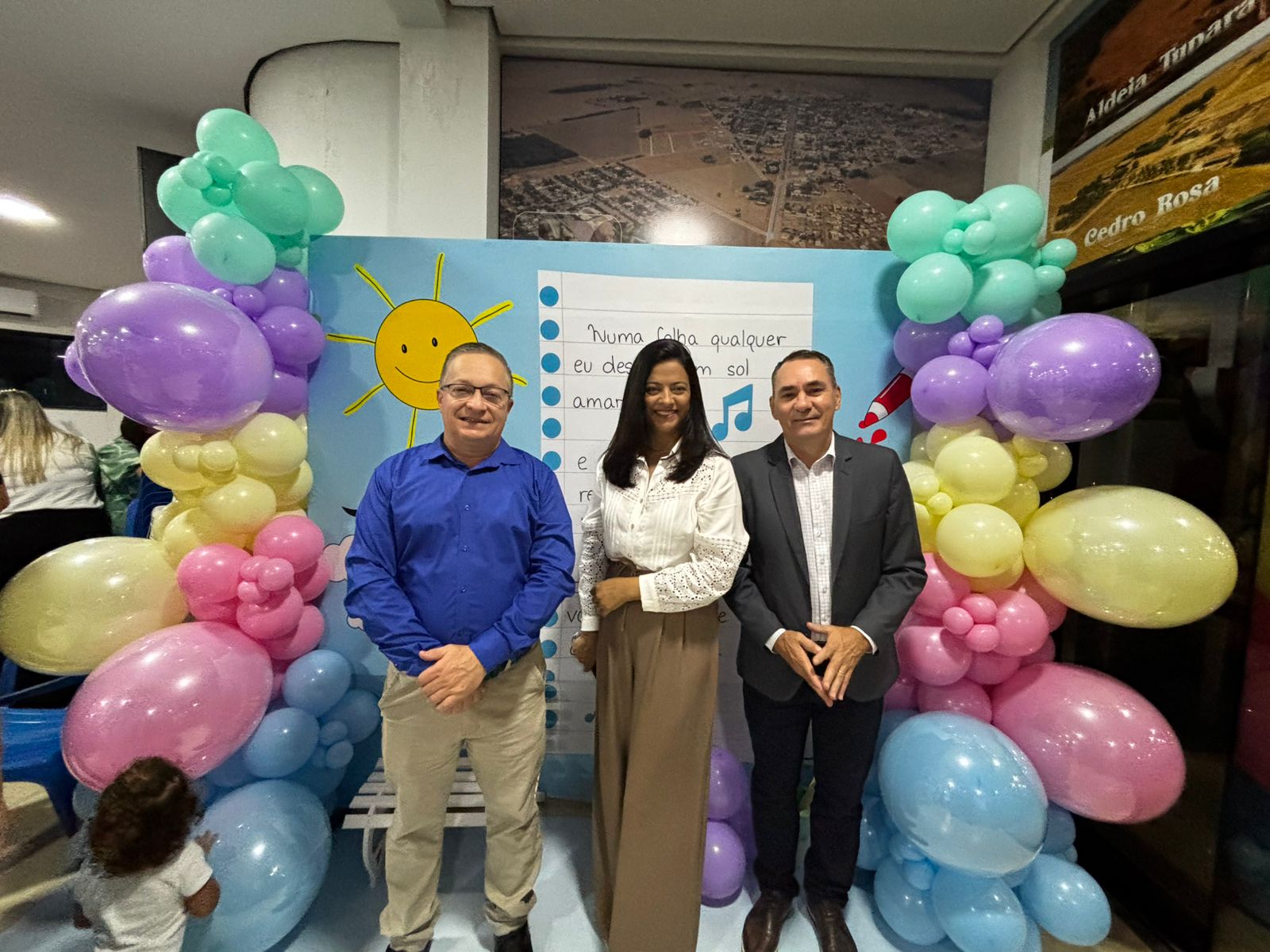 O cerimonial foi conduzido pela diretora do Cemei Dois Pinheiro, Cristiane Feijó, que destacou a relevância da educação infantil e o trabalho desenvolvido pela equipe pedagógica do município, encerrando a solenidade com agradecimentos às famílias, profissionais da educação e autoridades presentes.