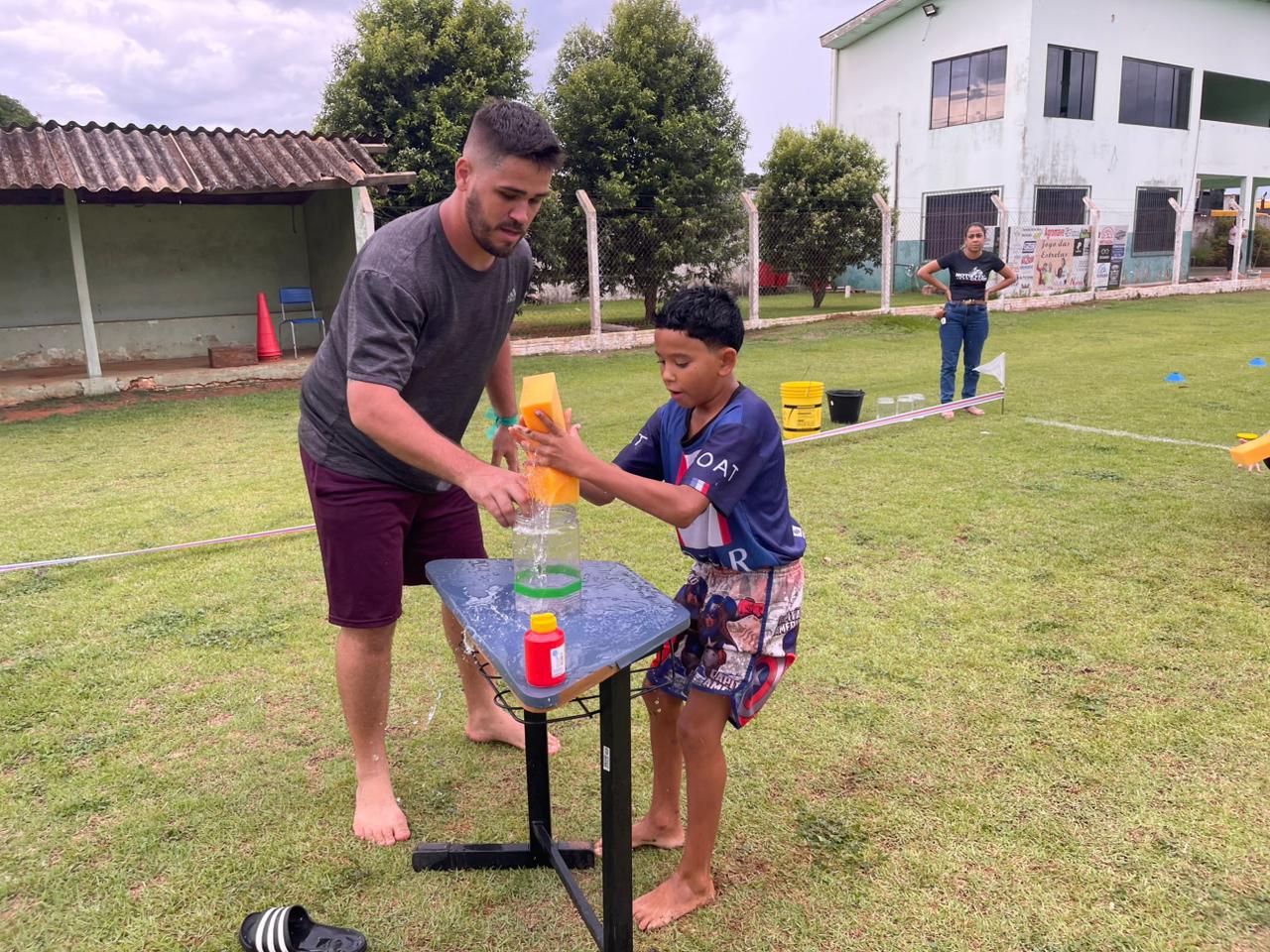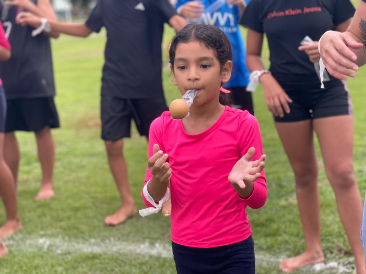 Durante a gincana, as crianças participaram de diversas atividades recreativas, como corrida de saco, pula-corda, ovo na colher, chute no gol, basquete maluco, escorregador com sabão e o animado desafio do copo, garantindo diversão e interação entre todos. Ao todo, foram formadas quatro equipes, compostas por professores e alunos, identificadas pelas cores verde, laranja, branco e azul. A equipe verde foi a grande vencedora da gincana, após concluir todo o circuito de provas no menor tempo.