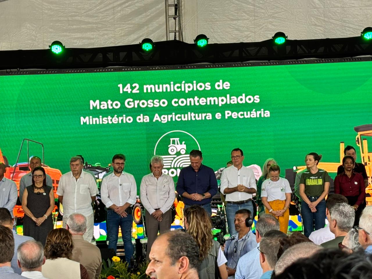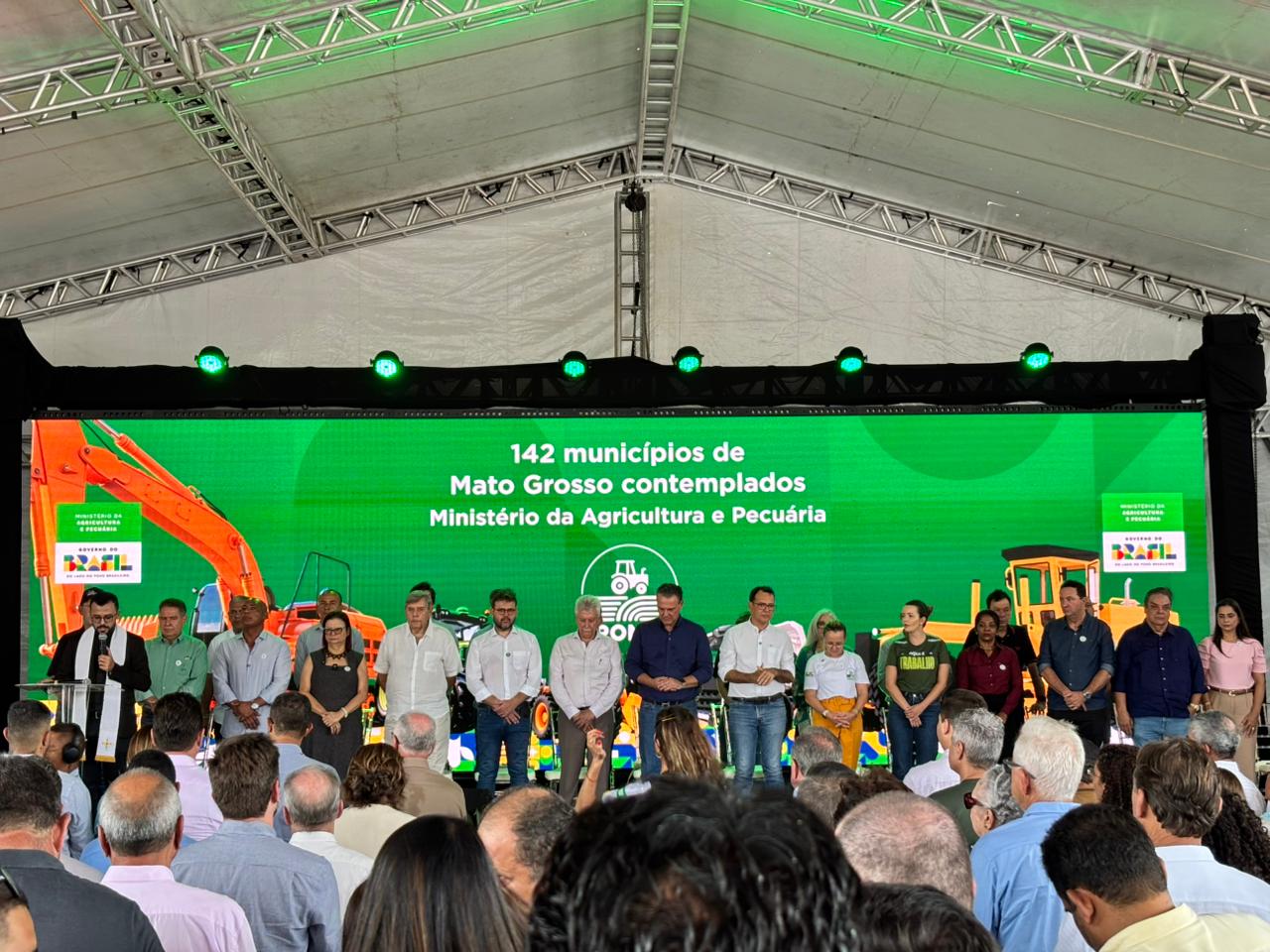 A solenidade aconteceu em Cuiabá, e reuniu diversas autoridades estaduais, federais e municipais. Ao todo, mais de 300 máquinas foram entregues às 142 prefeituras de Mato Grosso, fortalecendo o apoio ao setor produtivo e aos serviços públicos municipais.