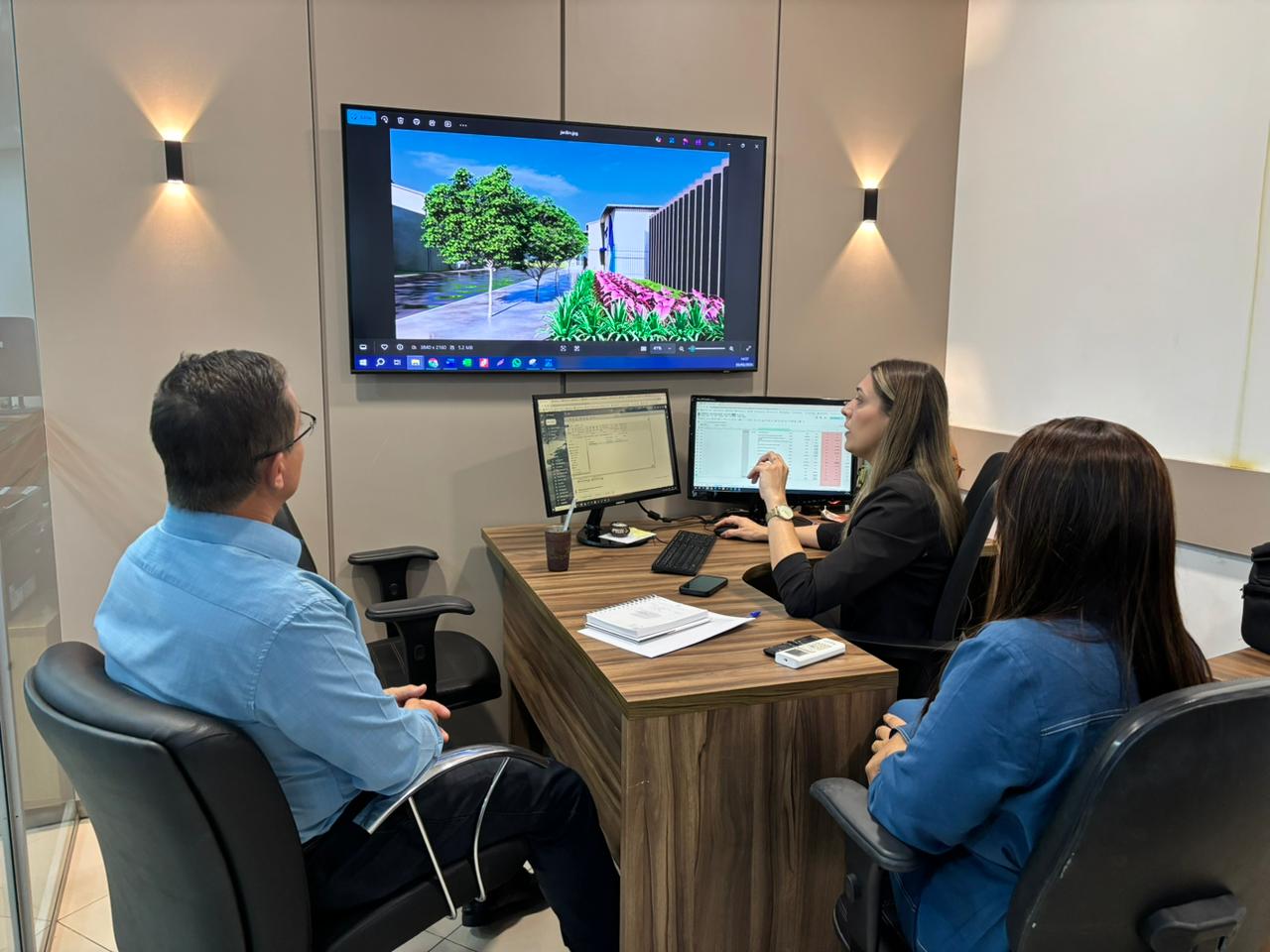 Na sequência, o Prefeito, acompanhado da Secretária Adjunta de Indústria, Comércio, Turismo e Cultura, acompanhou de perto a elaboração de projetos técnicos na AMM, que posteriormente serão implantados no município, reforçando o planejamento estratégico da gestão.