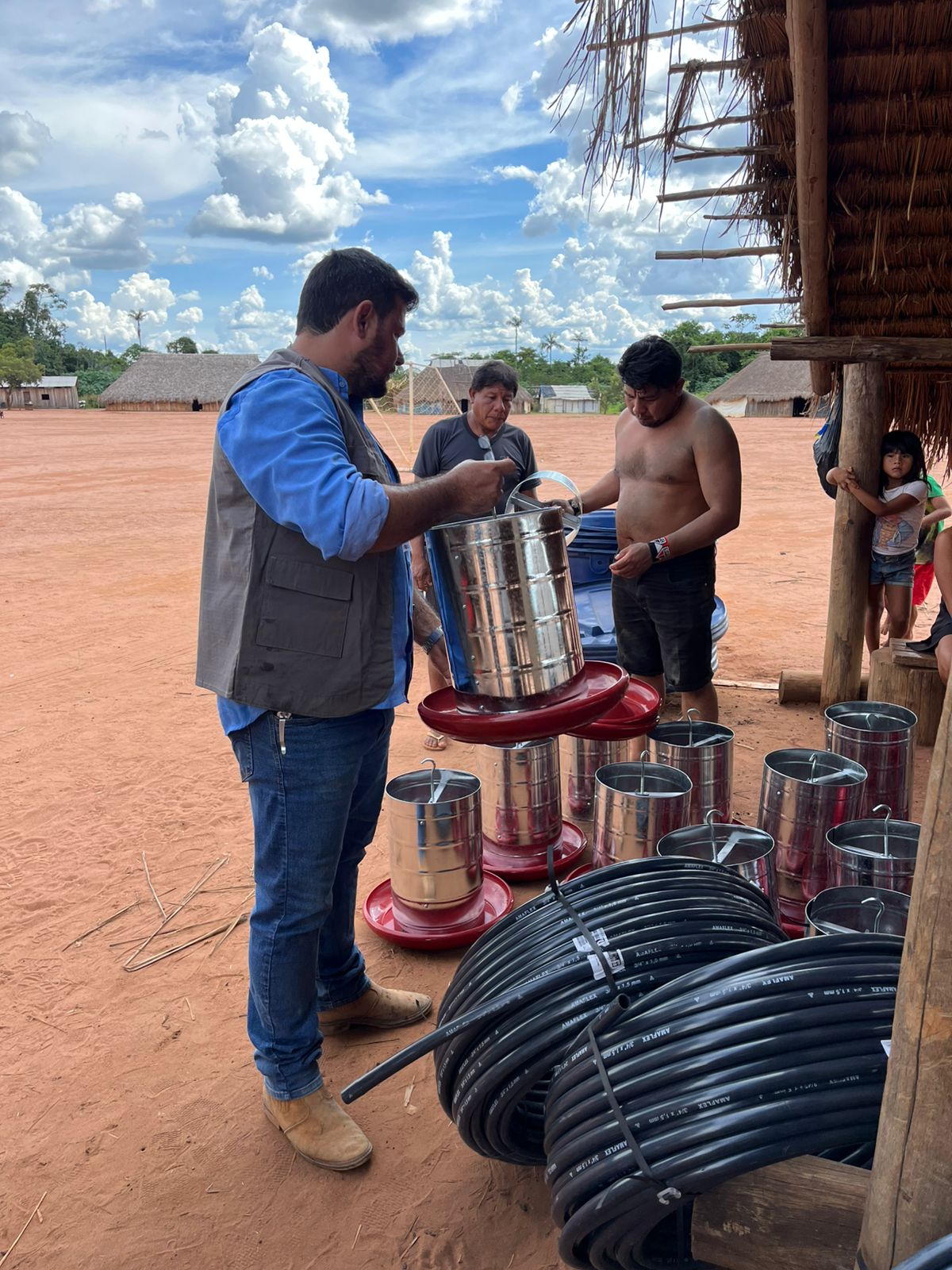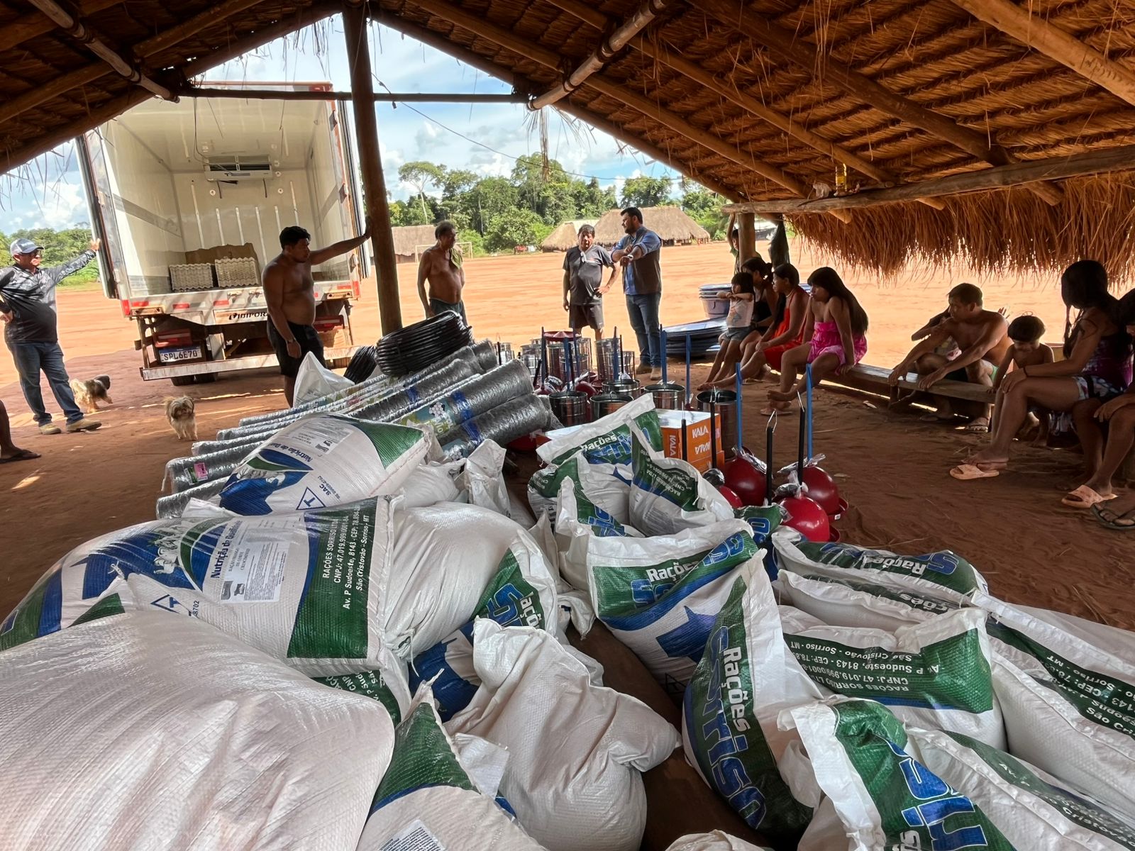 Na quinta-feira (19), a Prefeitura Municipal de Nova Ubiratã, por meio da Secretaria Municipal de Agricultura, em parceria com a Empresa Mato-grossense de Pesquisa, Assistência e Extensão Rural (EMPAER), realizou a entrega de materiais e pintainhos do Projeto FUNDAF na aldeia indígena do município. O FUNDAF é um projeto desenvolvido pelo Governo do Estado de Mato Grosso, que tem como objetivo fortalecer a produção de alimentos e promover o desenvolvimento sustentável das famílias atendidas.
