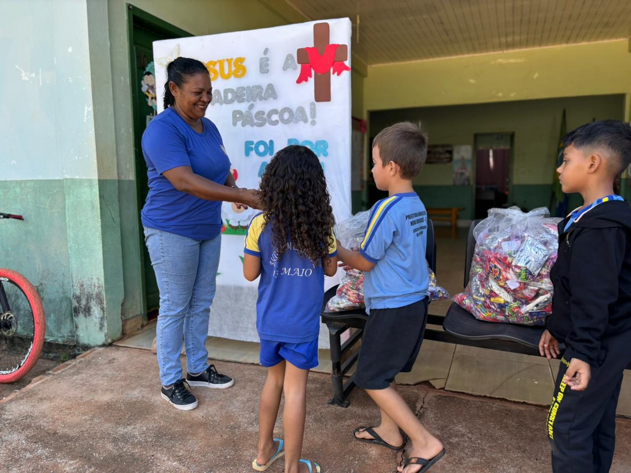 A iniciativa teve como objetivo proporcionar um momento de alegria e celebração às crianças e famílias atendidas, reforçando o espírito de união e solidariedade que marca o período pascal. Durante as entregas, a equipe da secretaria estiveram presentes nos distritos, promovendo um ambiente acolhedor e festivo.
