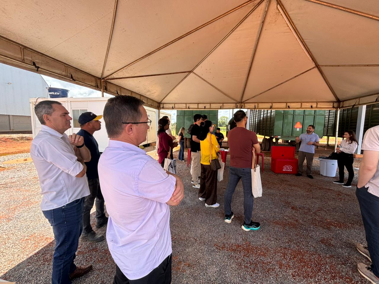 A programação teve início na unidade da empresa, com a apresentação do armazém, e seguiu até a área de plantio, onde os participantes puderam acompanhar de perto o desenvolvimento da cultura do amendoim.