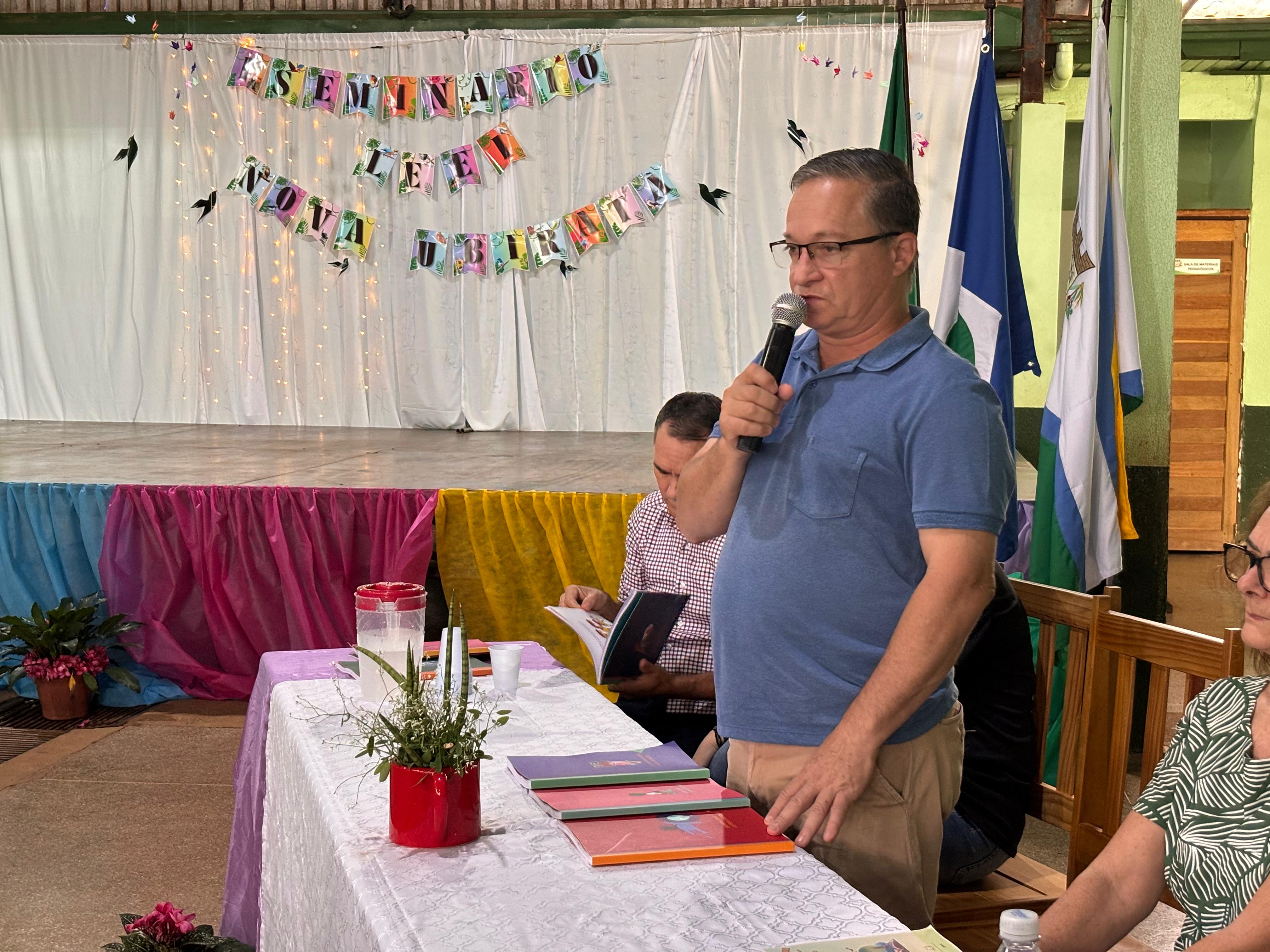 Na manhã deste sábado (19), a Prefeitura Municipal de Nova Ubiratã por meio da Secretaria de Educação, esteve realizando o 1º seminário do projeto de Leitura e Escrita na Educação Infantil - LEEI, onde contou com a presença de diversas autoridades municipais, bem como: o Prefeito Municipal, Edegar José Bernardi, os Vereadores, Leonildo Antonio e Cris Feijó, além de representantes da Secretaria de Educação e professores da rede municipal.