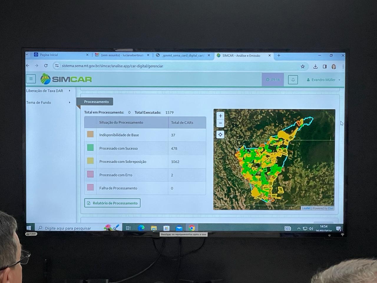 Na ocasião, as Autoridades puderam acompanhar o funcionamento do novo programa, onde Nova Ubiratã foi o primeiro município escolhido pelo Governo do Estado para a sua implantação. O SIMCAR é um sistema eletrônico de âmbito estadual, com base de dados integrada ao Sistema Nacional de Cadastro Ambiental Rural (SICAR), destinado à inscrição, consulta, acompanhamento e gerenciamento da situação ambiental dos imóveis rurais.